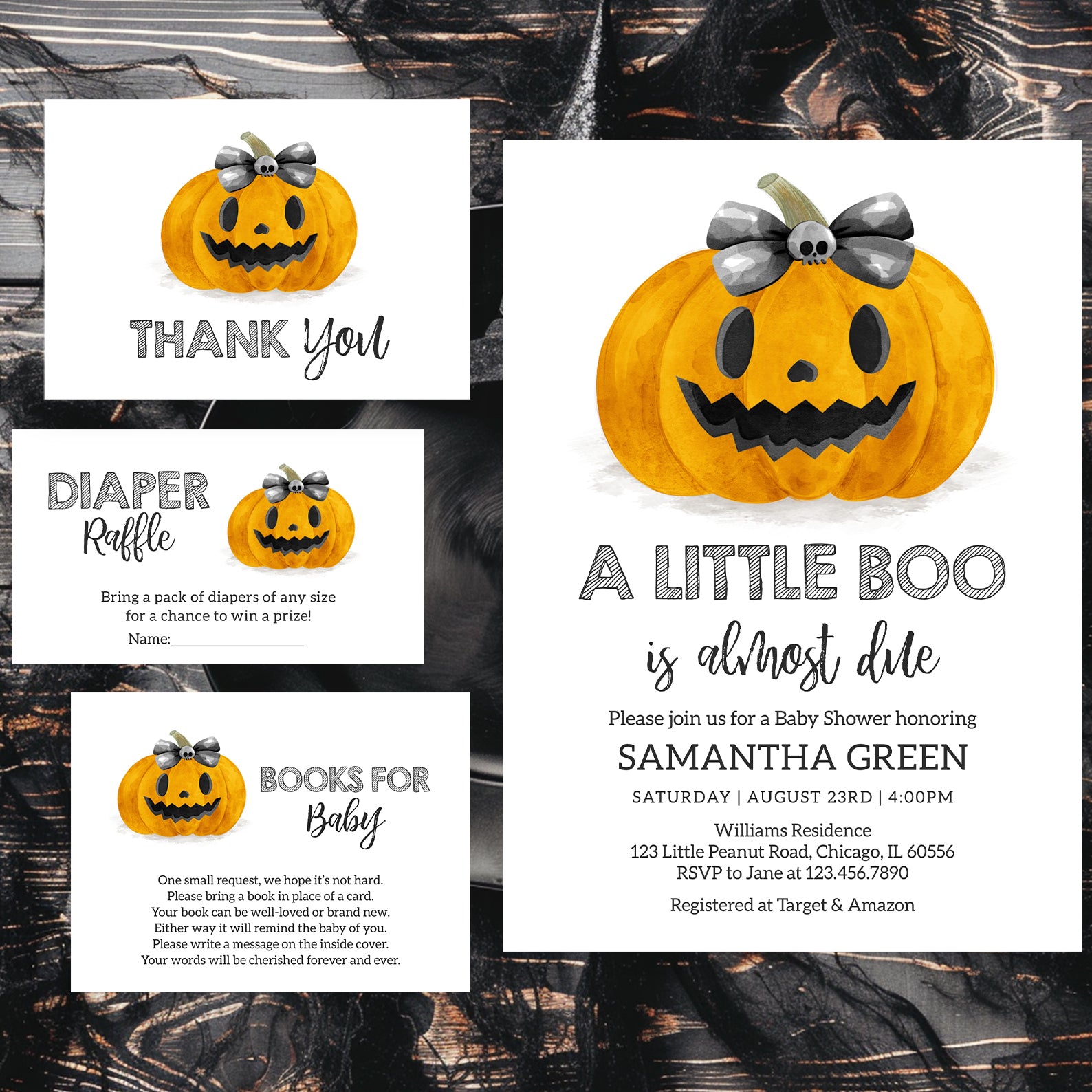 - Purchase this A Little Boo Is Almost Due: Halloween Pumpkin Baby Invite Bundle template