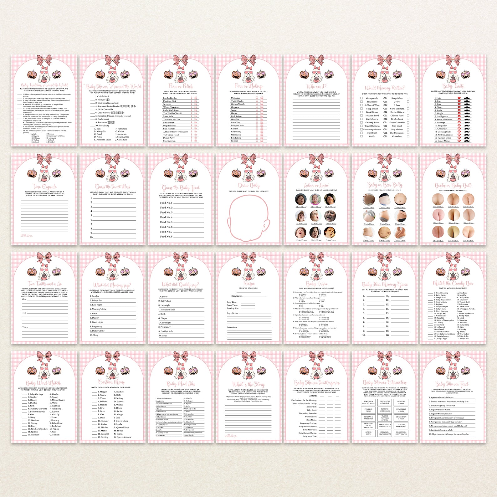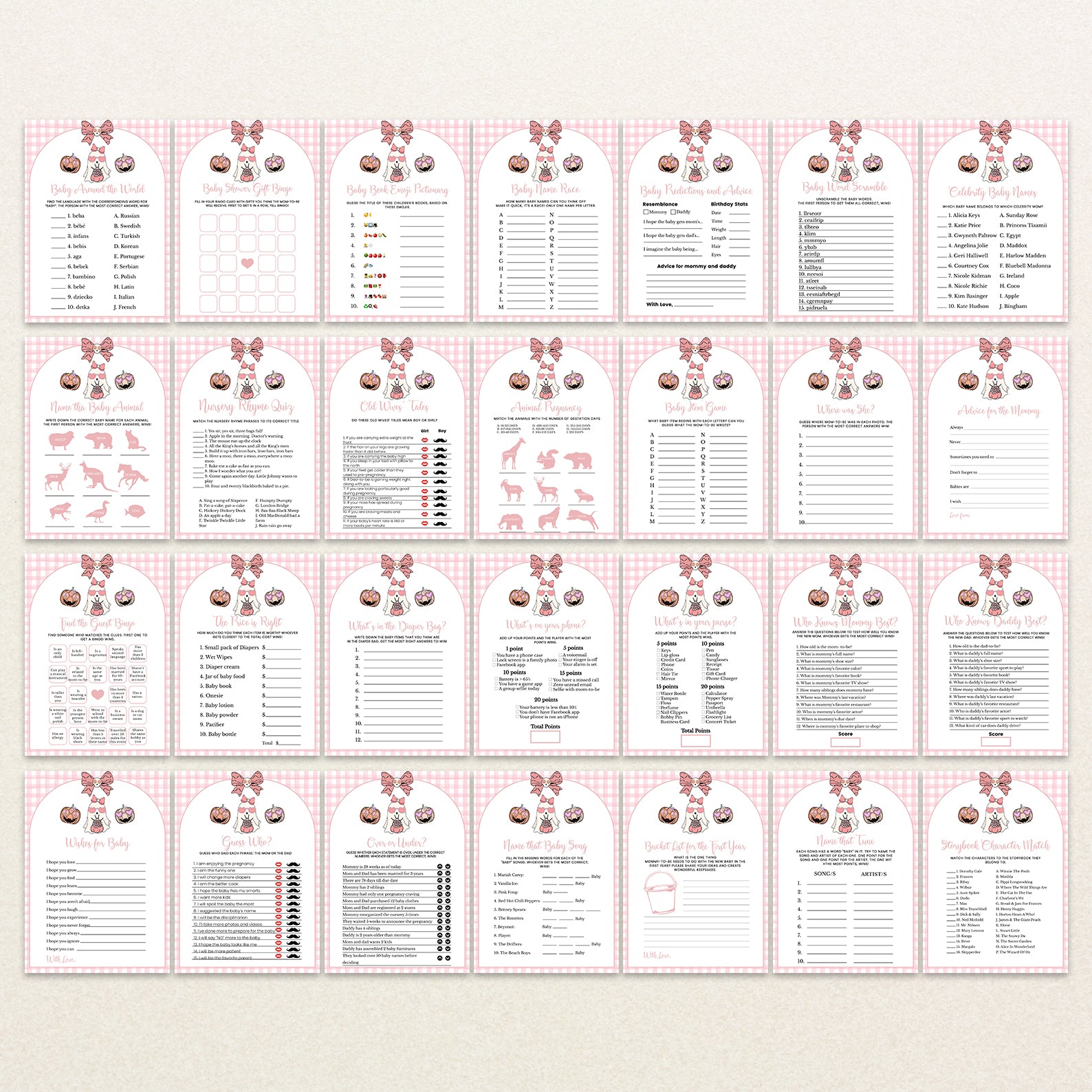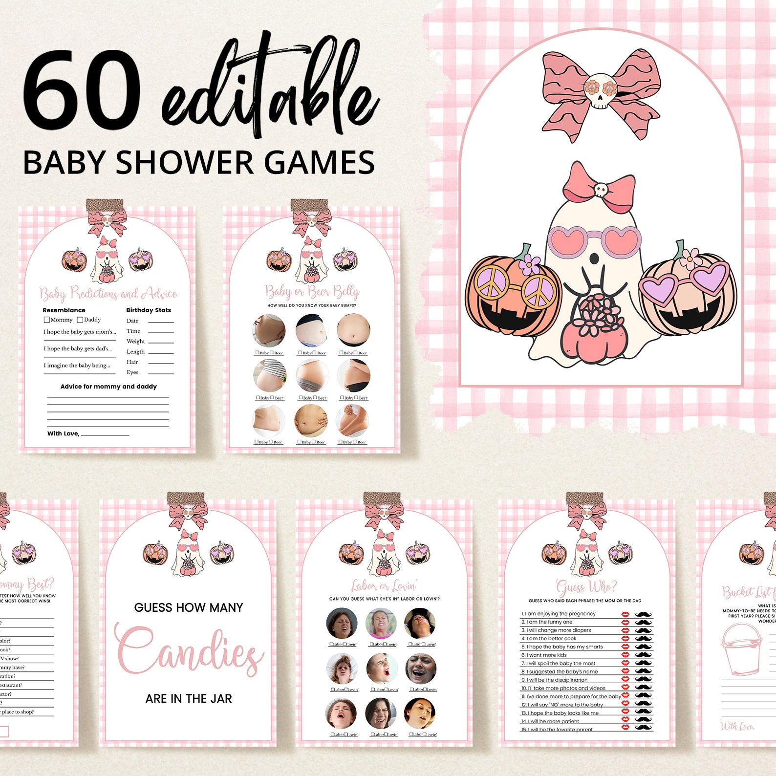 - Purchase this Pink Halloween Baby Shower Game Bundle with Cute Ghost & Pumpkins template