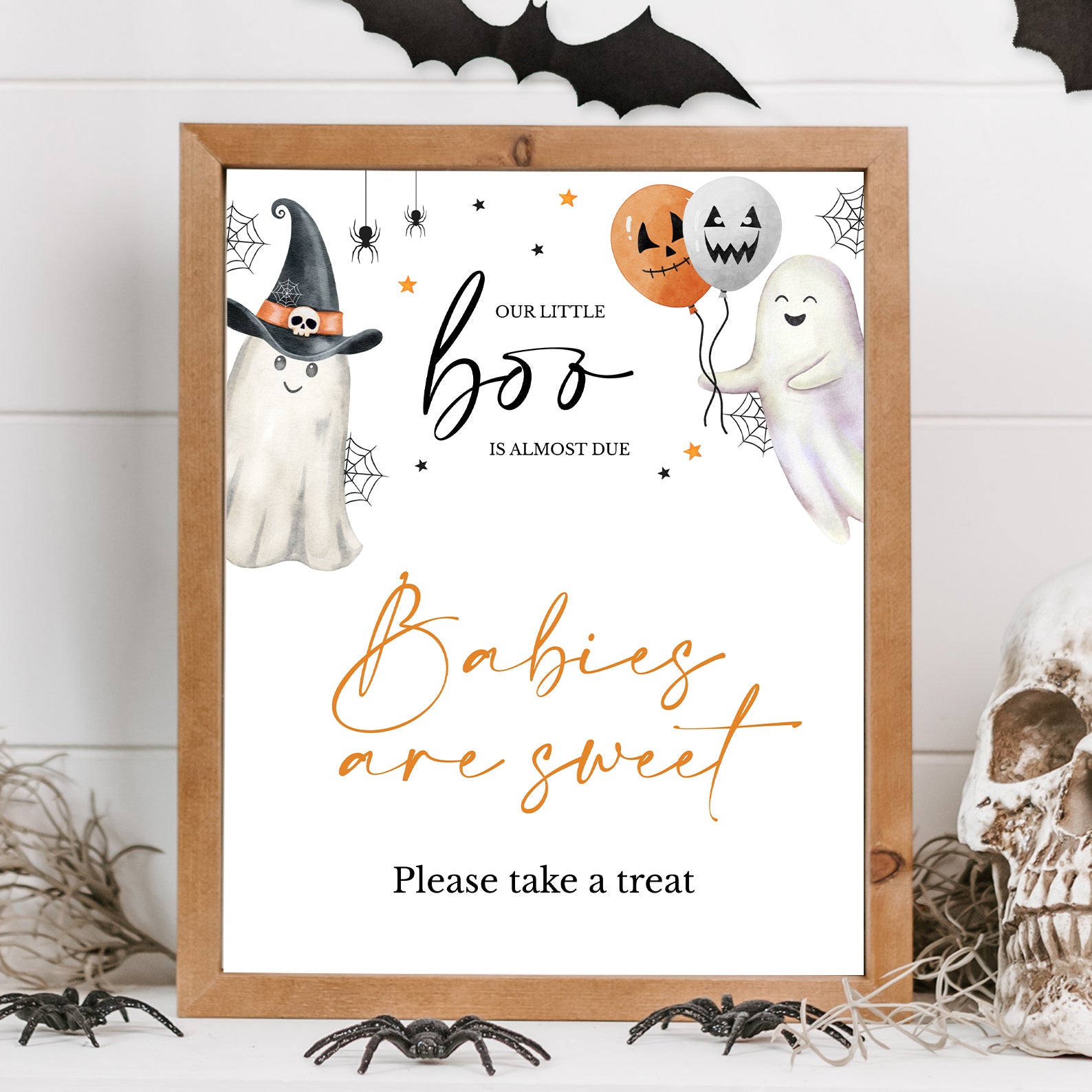 - Purchase this A Little Boo Is Due Halloween Ghost Baby Shower White Table Sign template