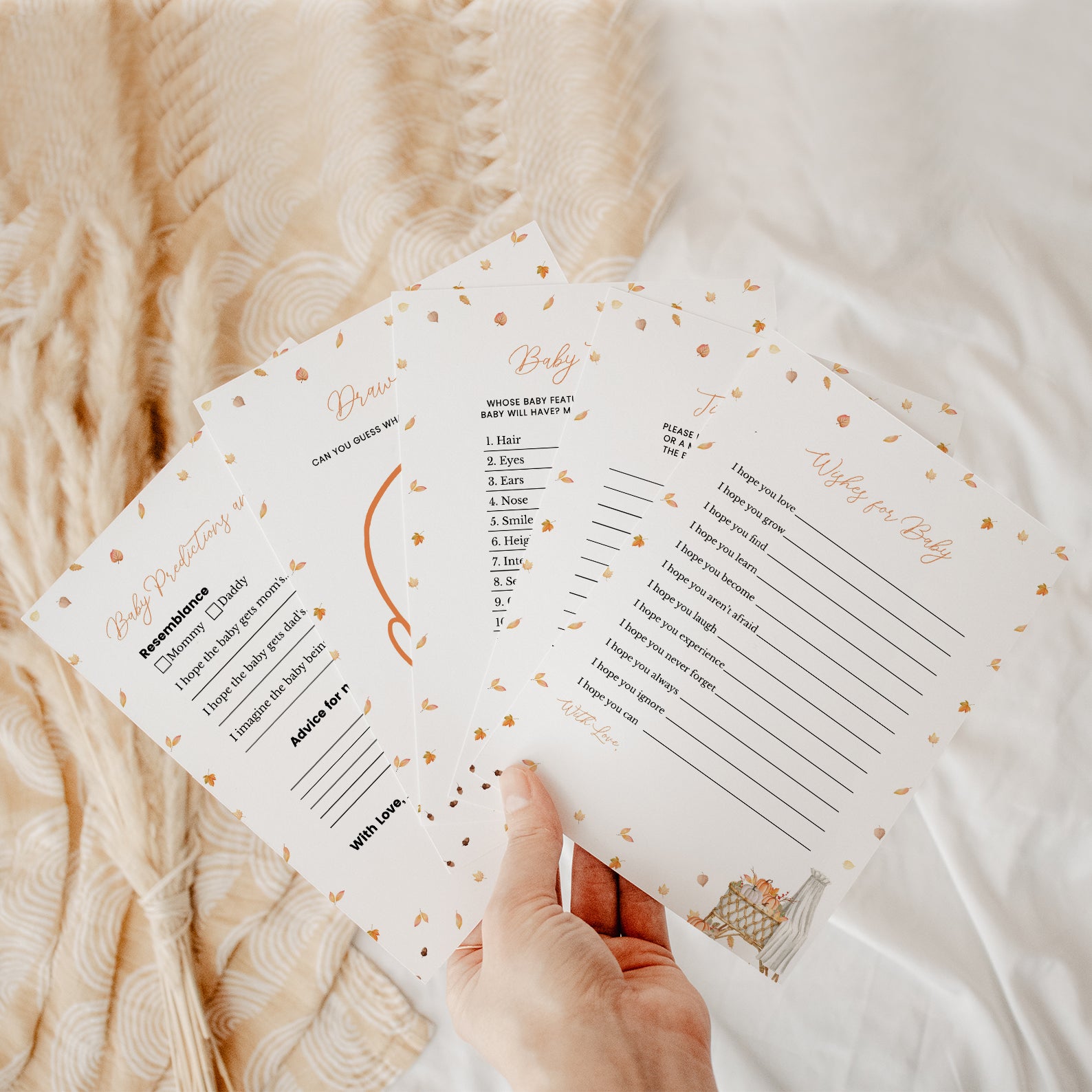 - Purchase this Fall Baby Shower Game Bundle: Pumpkin Crib & Canopy Curtain template