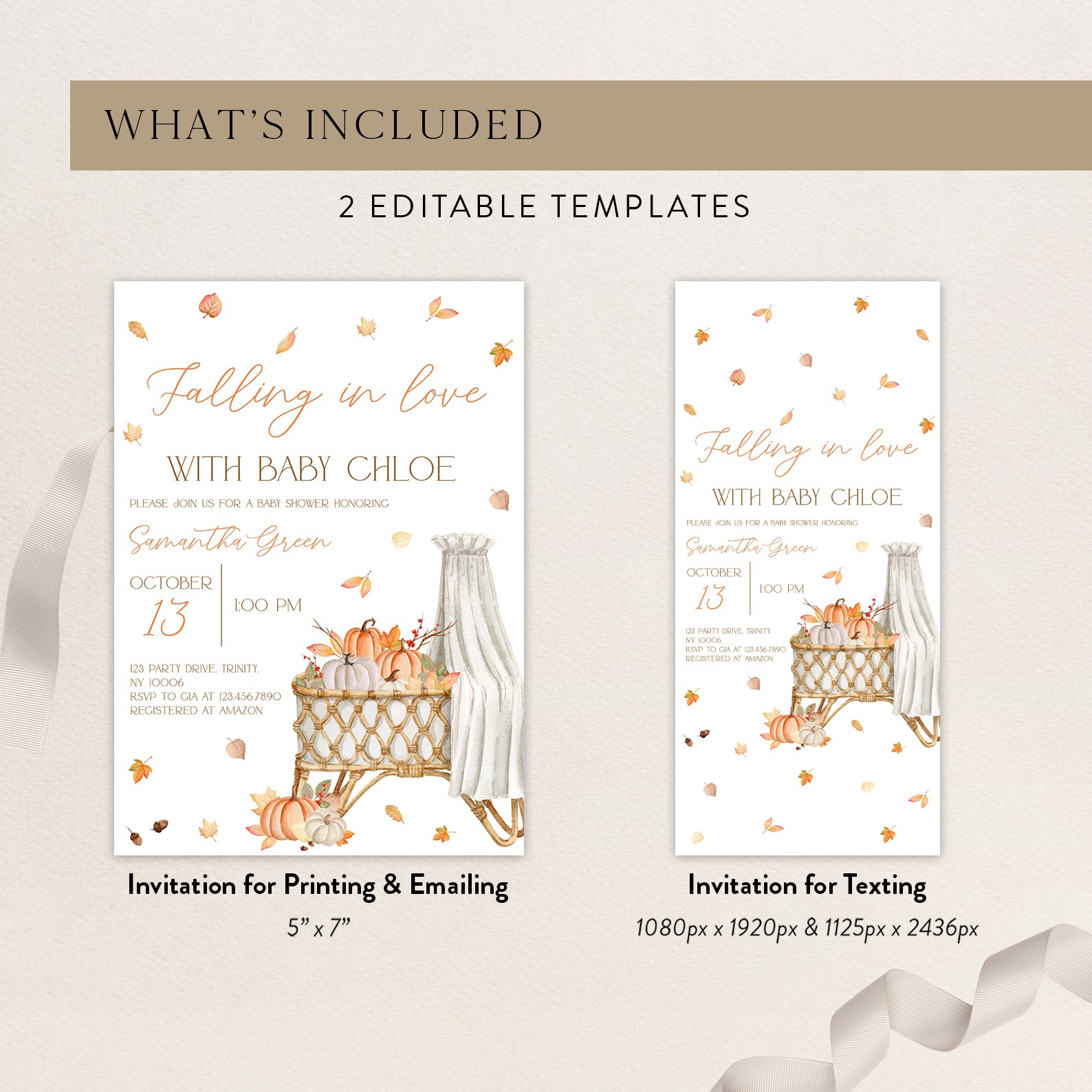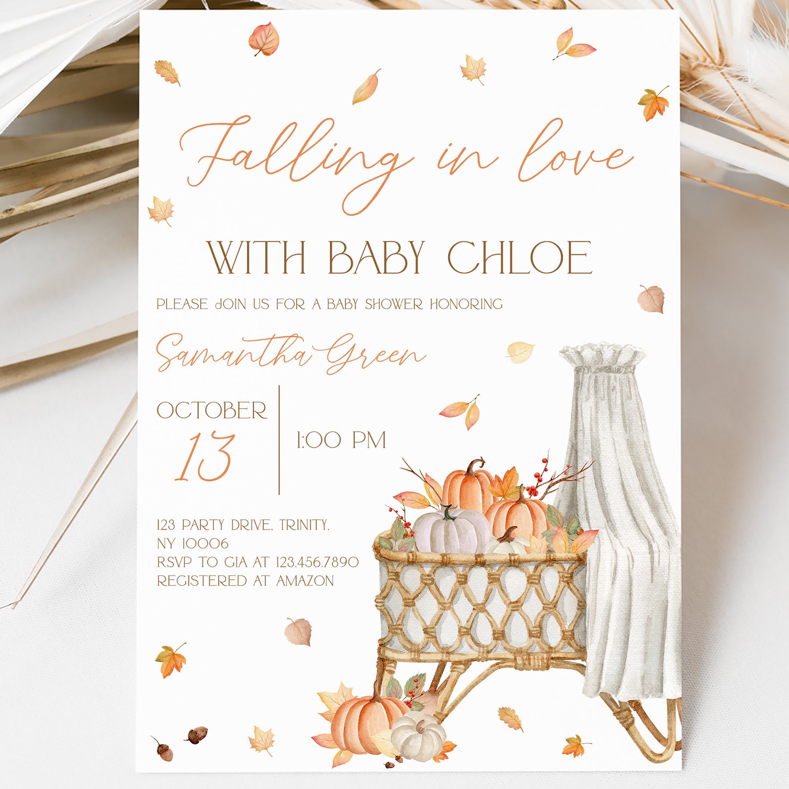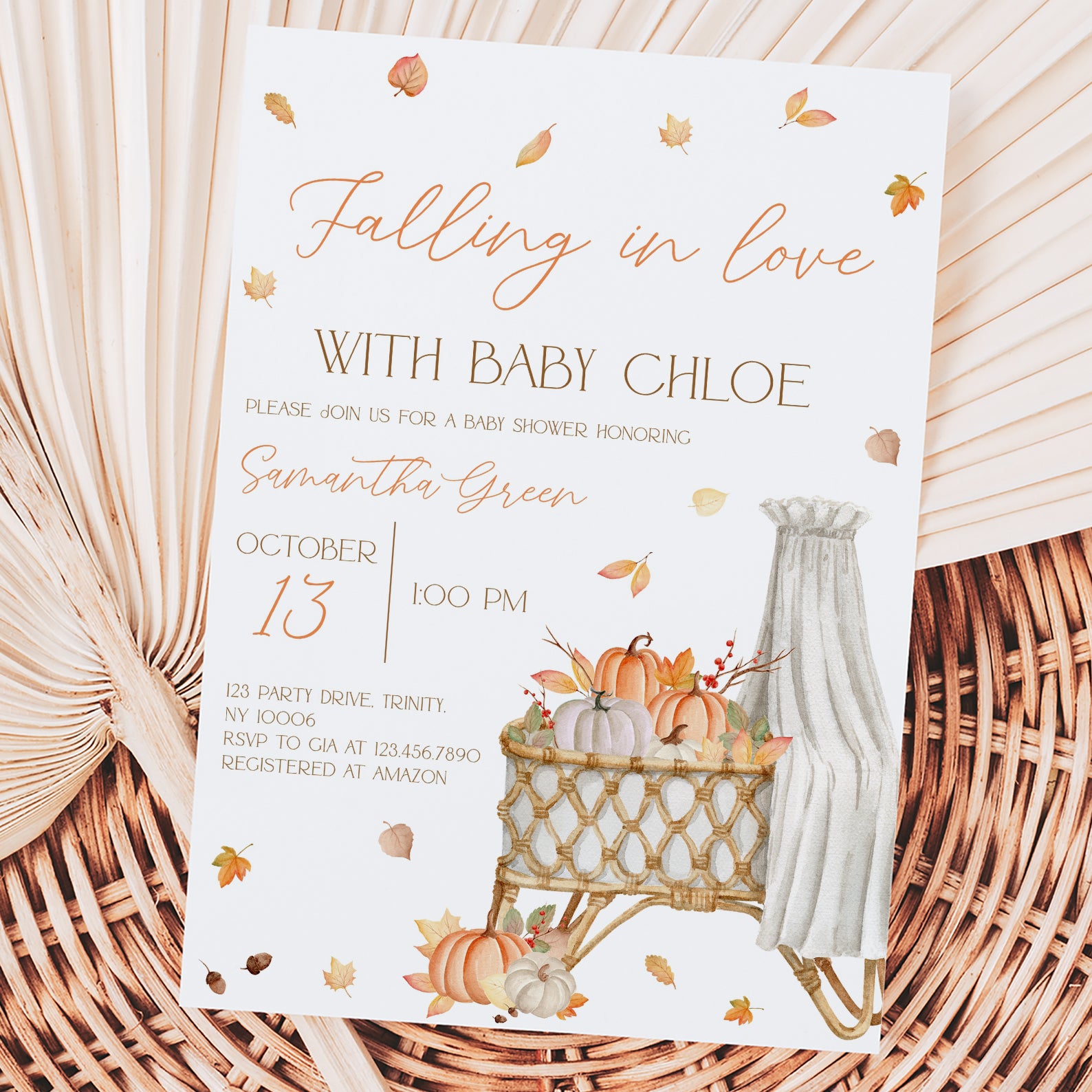 - Purchase this Fall Baby Shower Invite: Pumpkin Crib & Canopy Curtain template