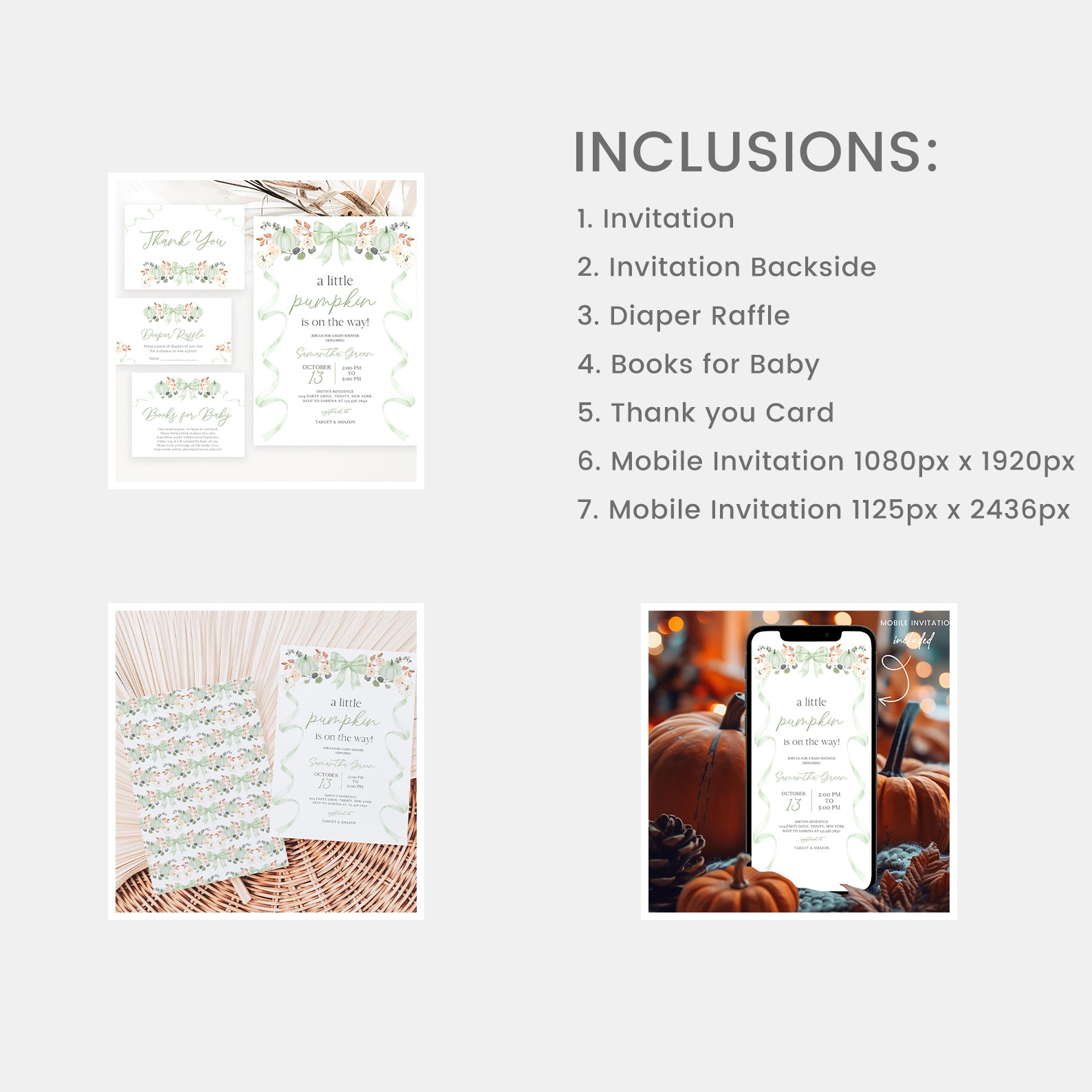 Fall Baby Shower Mega Bundle: Green Ribbon Frame with Pumpkin & Florals