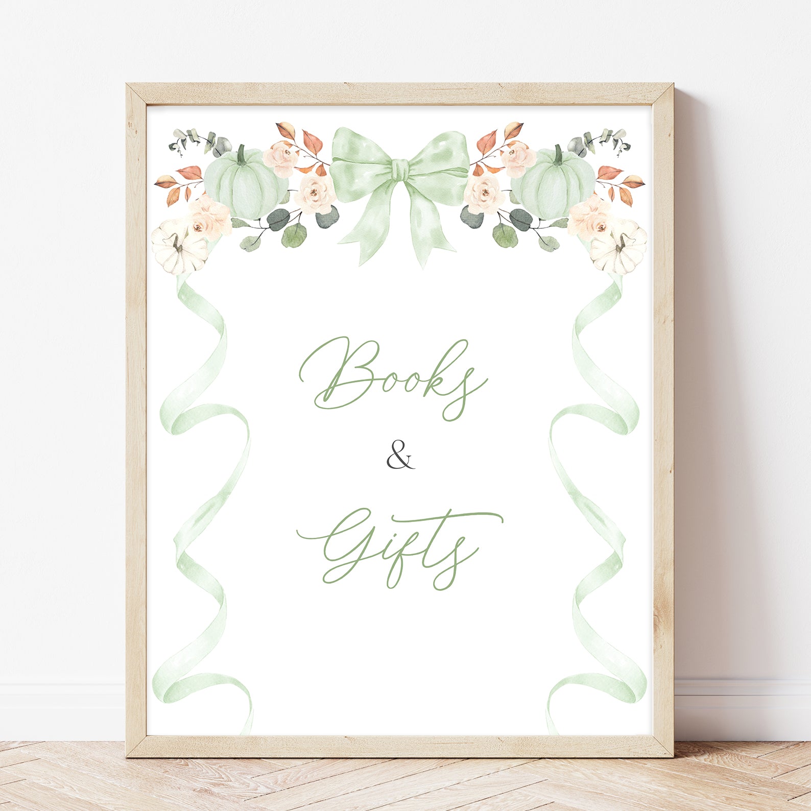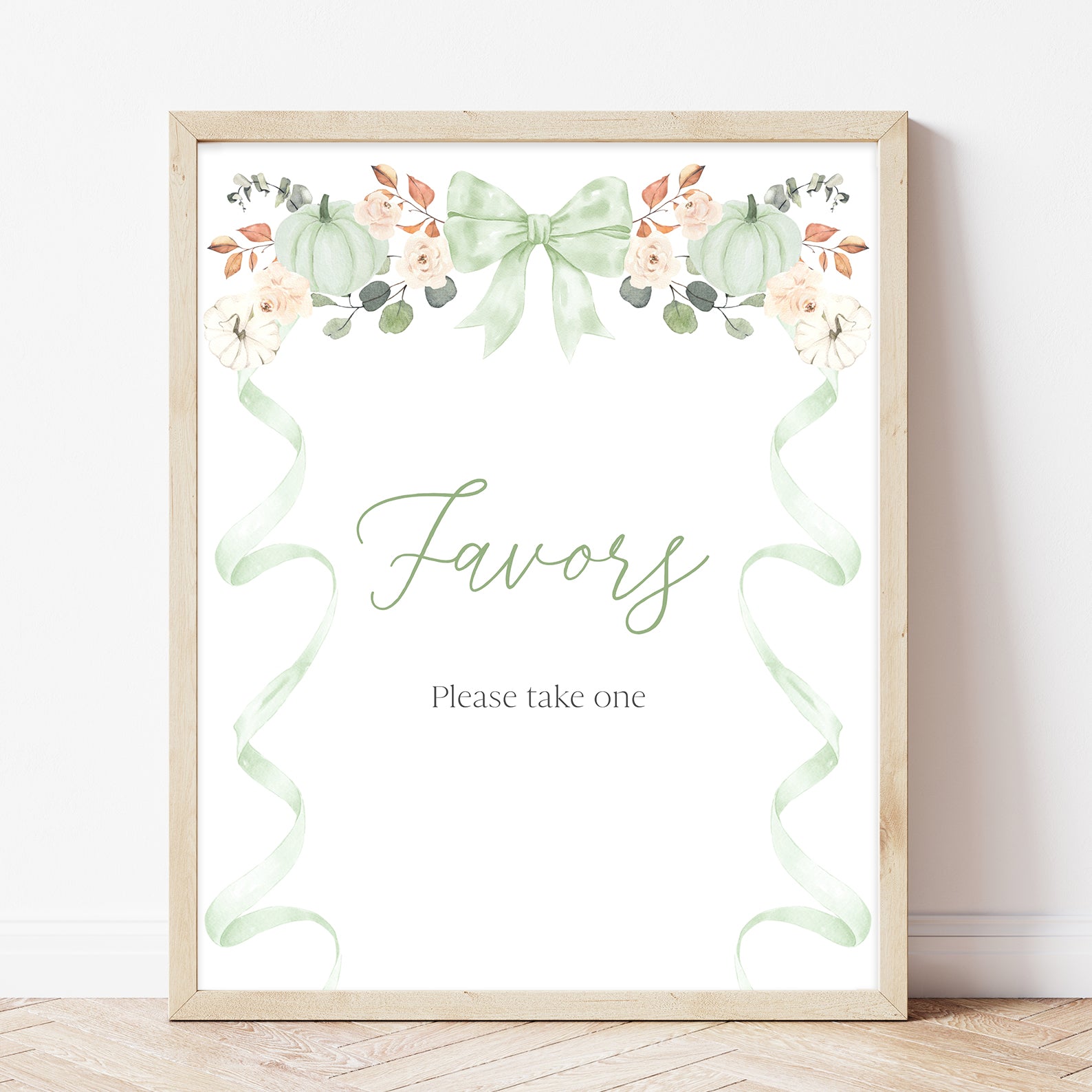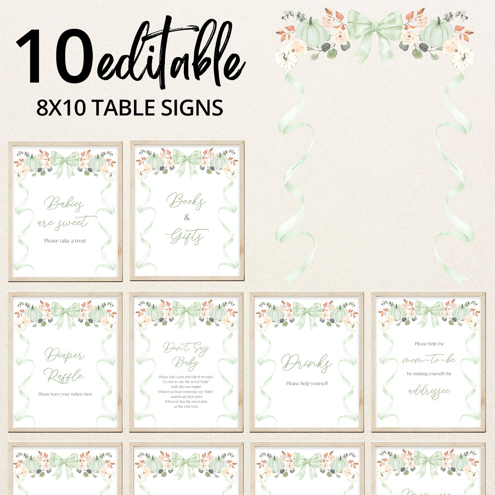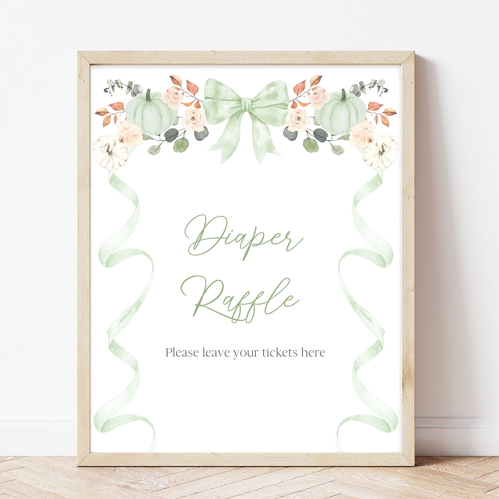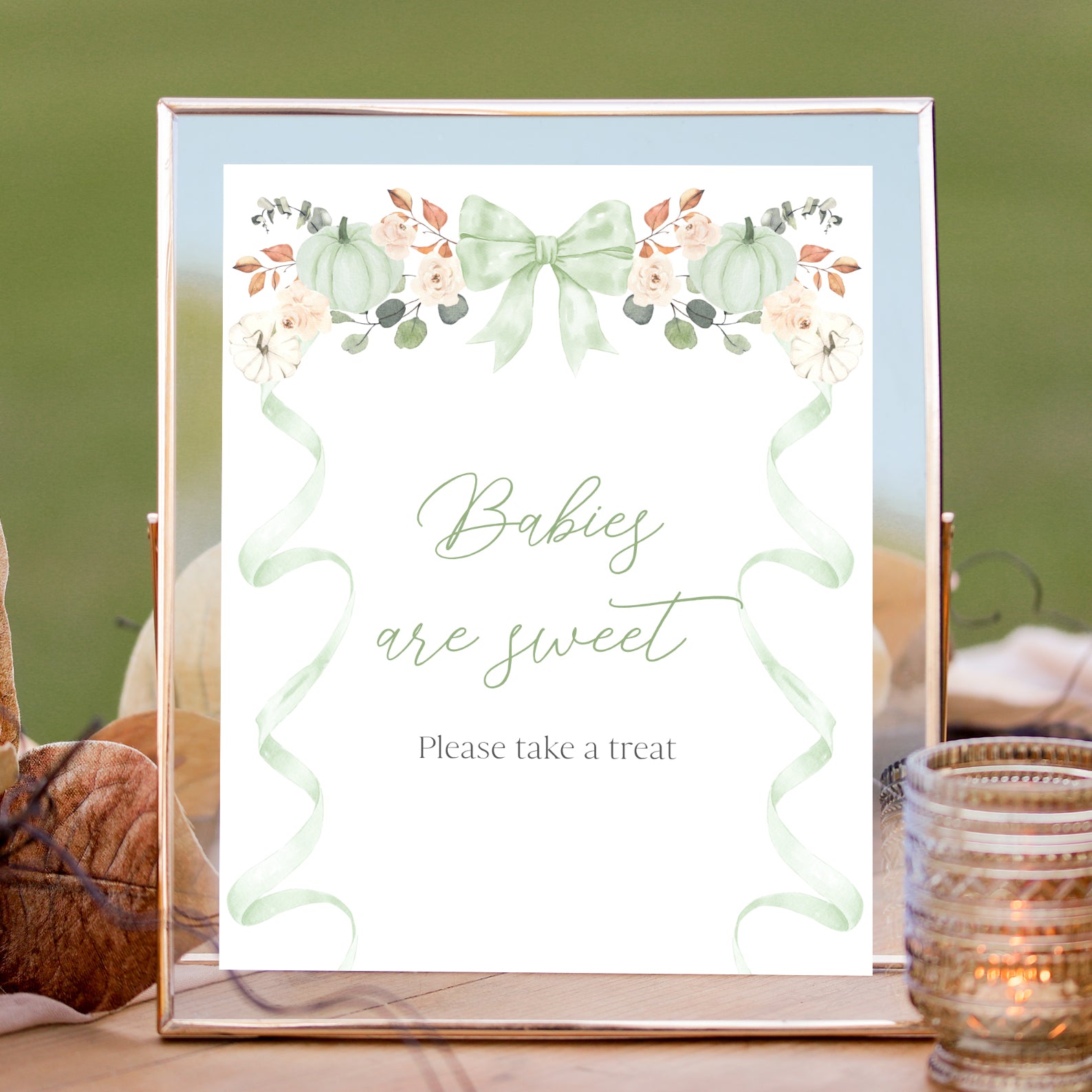 - Purchase this Fall Baby Shower Table Sign: Green Ribbon Frame with Pumpkin & Florals template