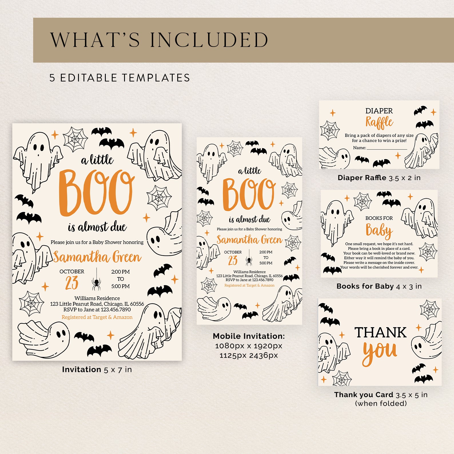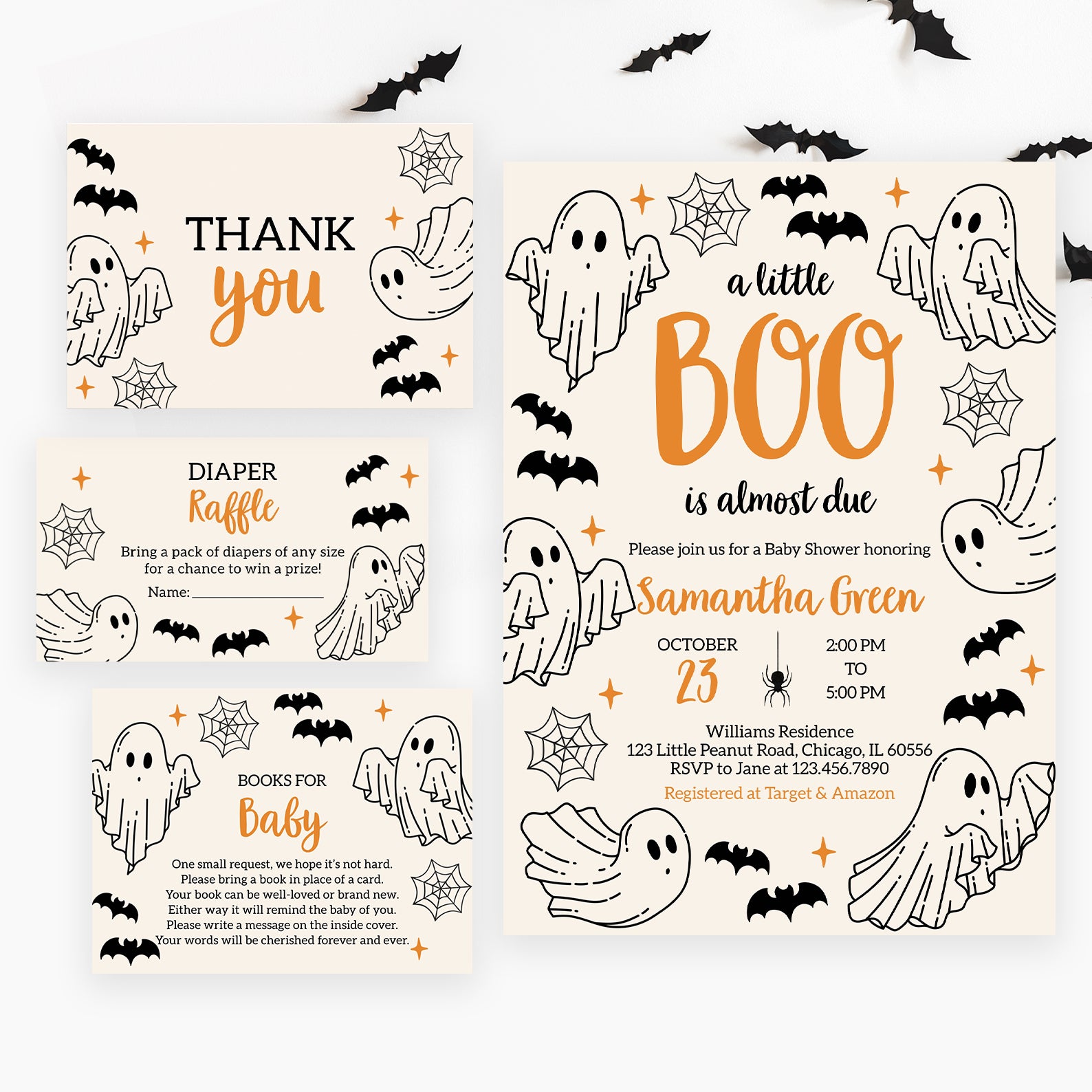 - Purchase this A Little Boo Is Almost Due: Ghost & Bats Baby Shower Invite Bundle template