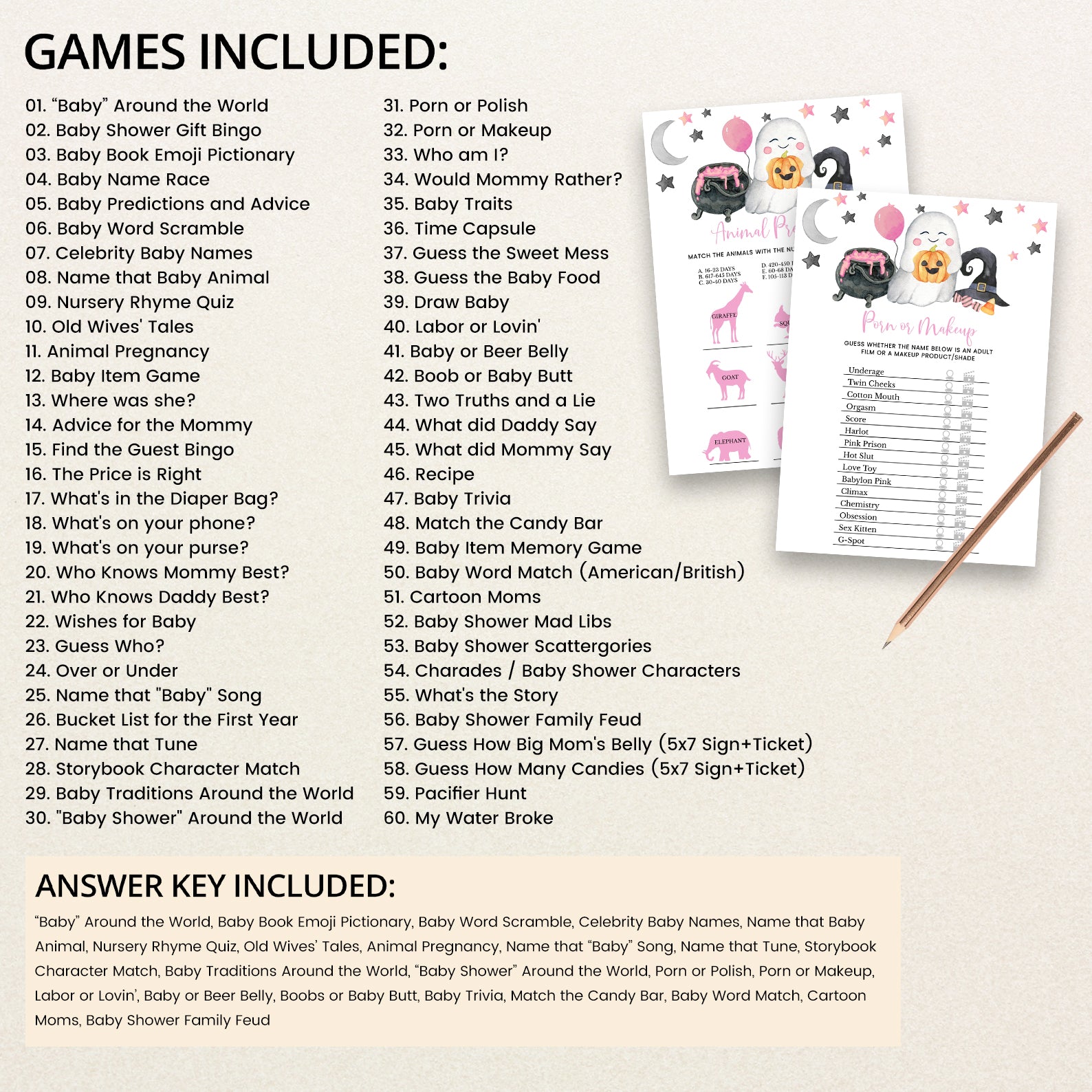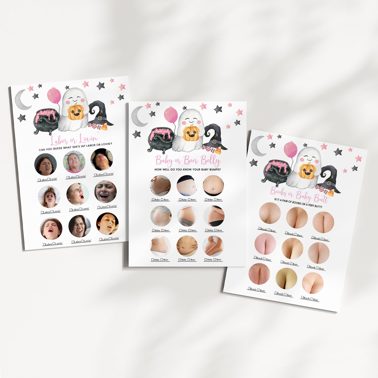 Halloween Pink Baby Shower Game Bundle: Charming Smiling Ghost Design