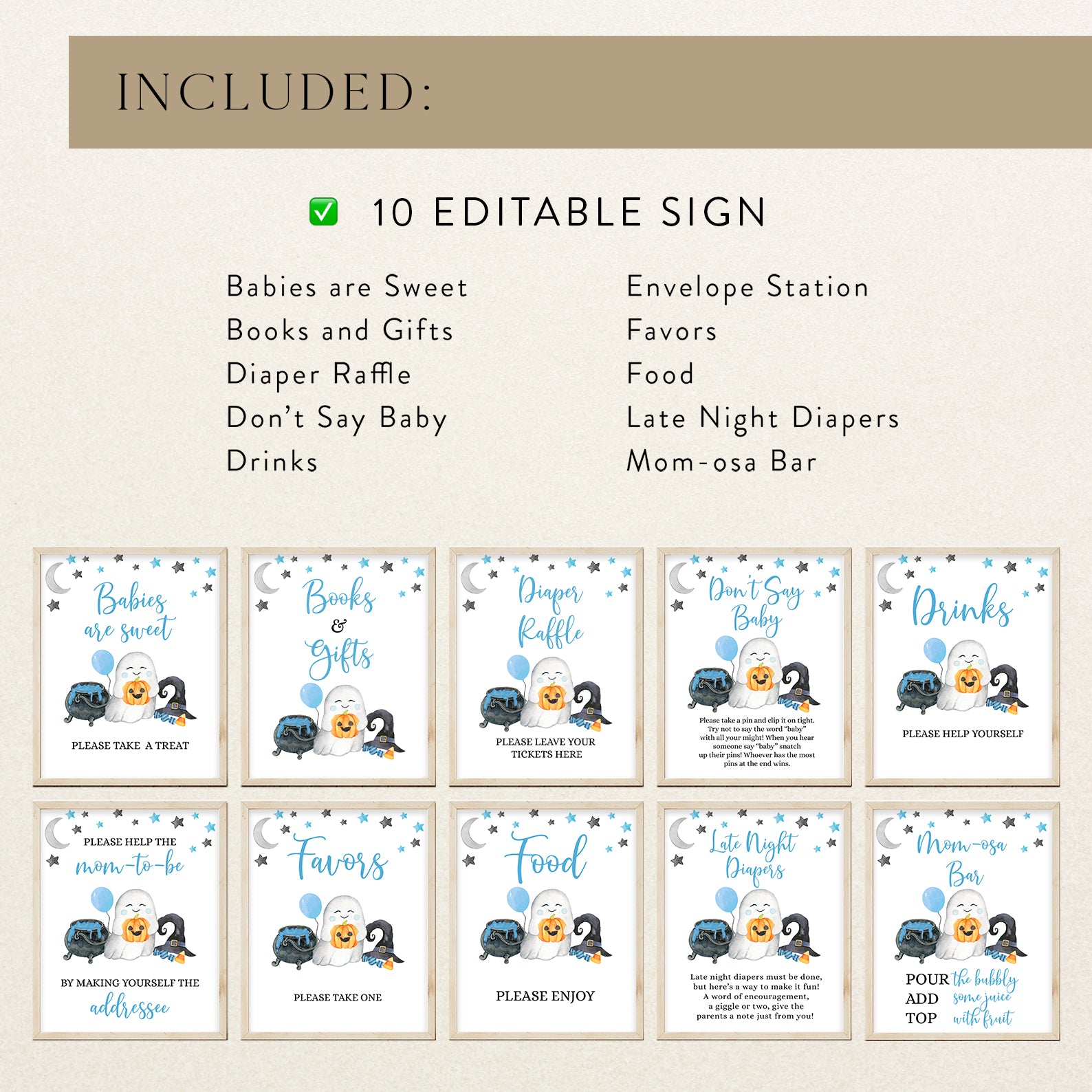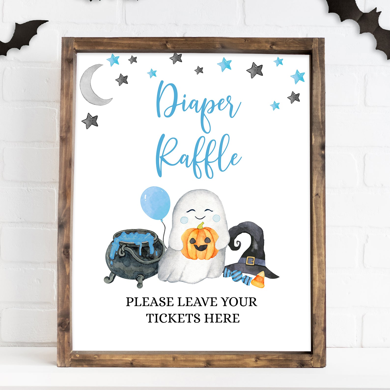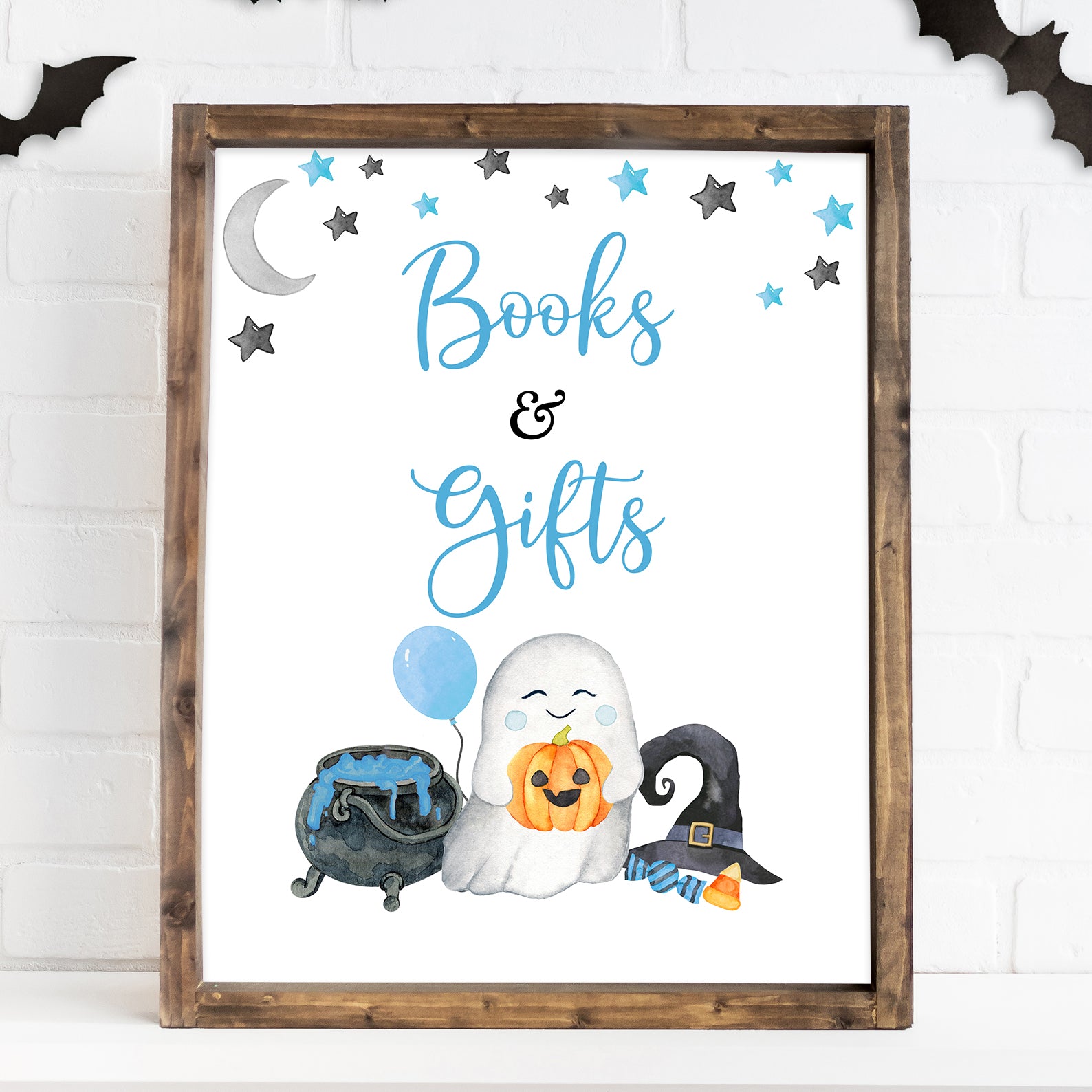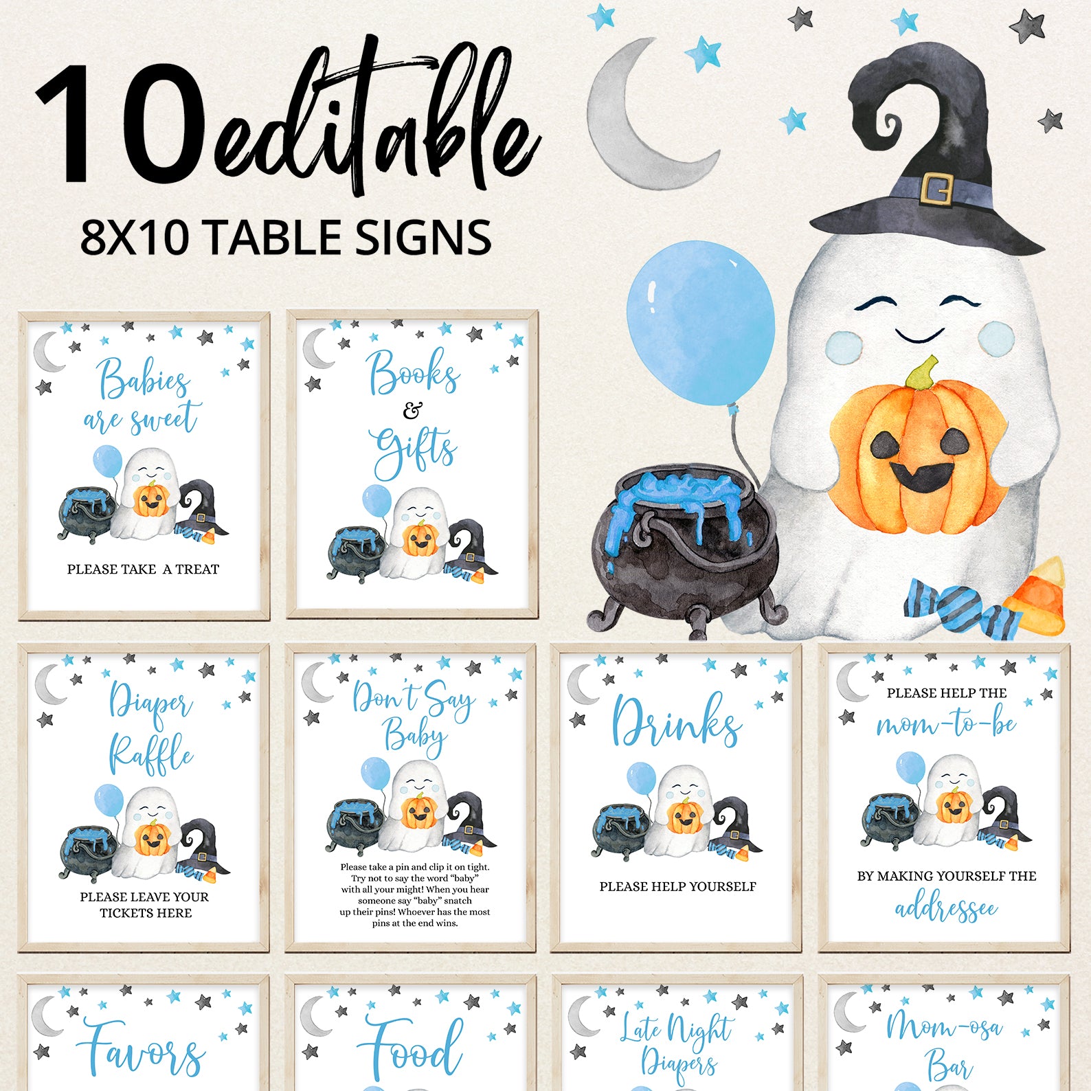 - Purchase this Halloween Blue Baby Shower Table Sign: Charming Smiling Ghost Design template