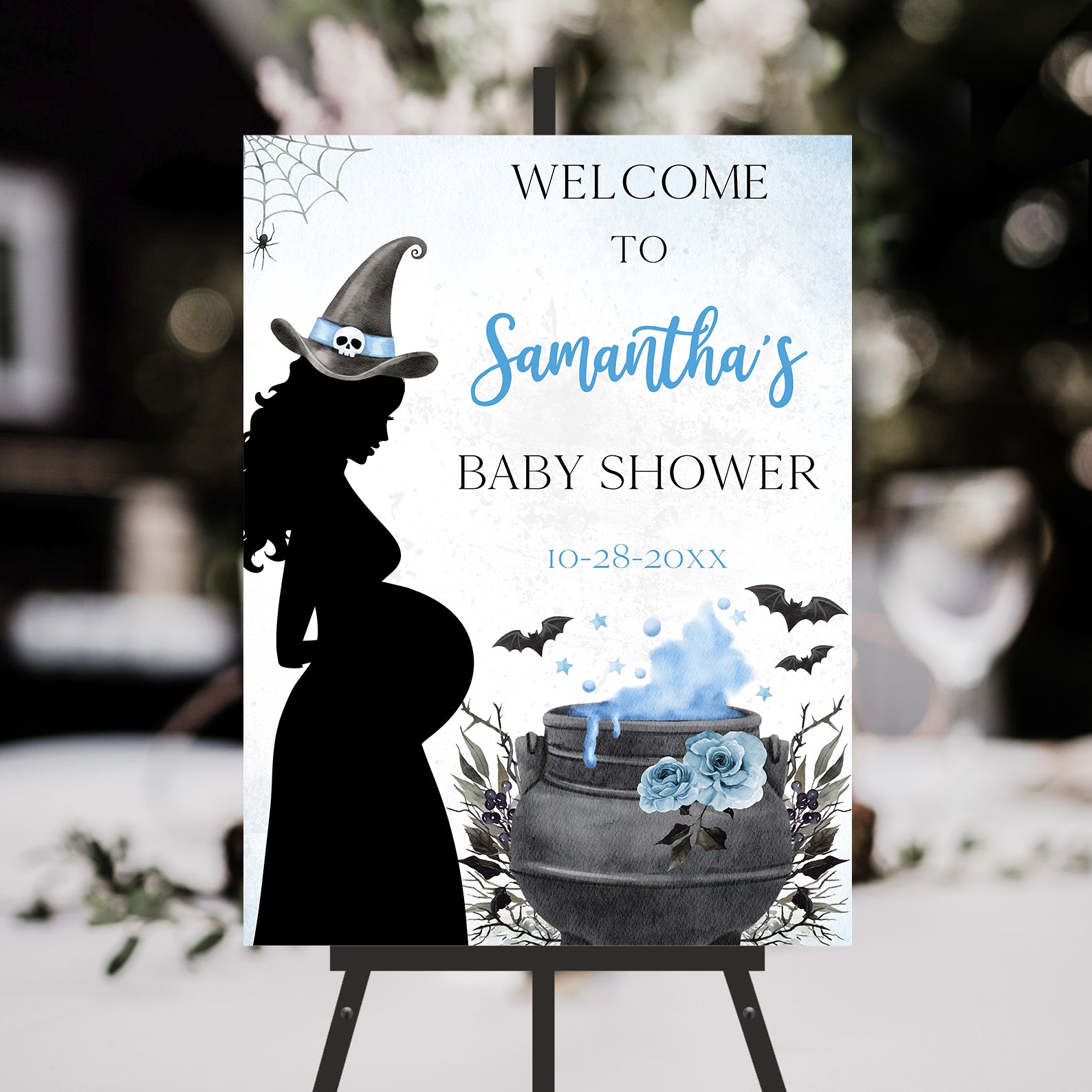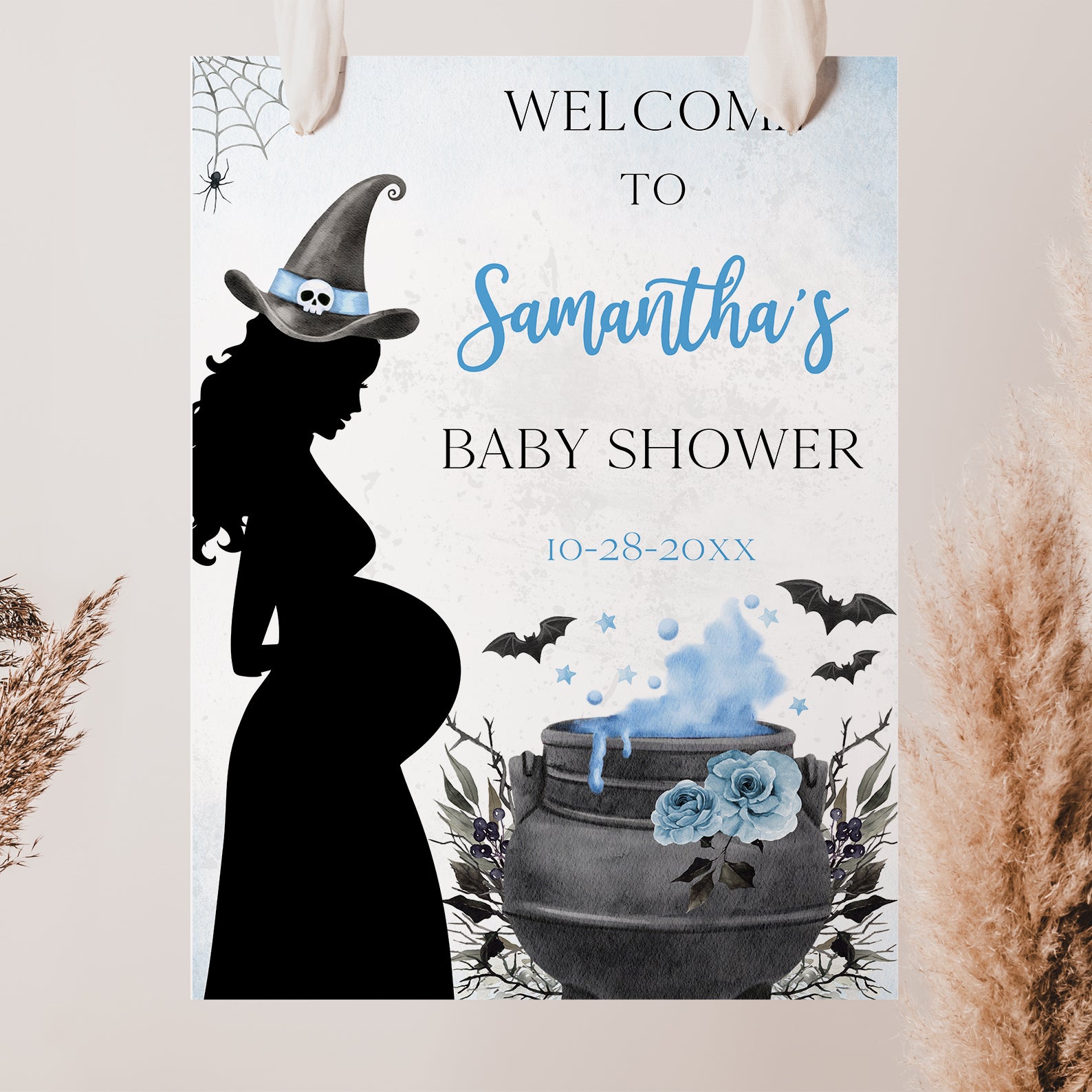 - Purchase this Spellbinding Blue Baby Shower Welcome Sign: Pregnant Witch & Cauldron template
