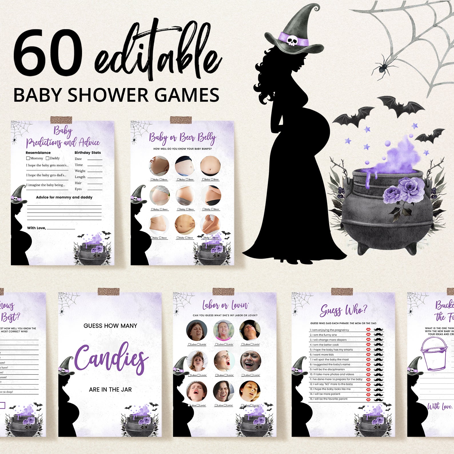 Get ready to conjure up some fun with our “Baby is Brewing” Game Bundle! This enchanting set includes editable games, perfect for adding a touch of Halloween magic to your baby shower. Each game features a whimsical design with a charming pregnant witch brewing a potion in her cauldron, surrounded by vibrant roses, playful spiders, and flying bats. Available in a range of colors like red, green, purple, orange, blue, and pink, these games create a spellbinding atmosphere for your celebration. Perfect for setting a fun and festive tone, this bundle ensures your event is filled with magical moments and delightful surprises!