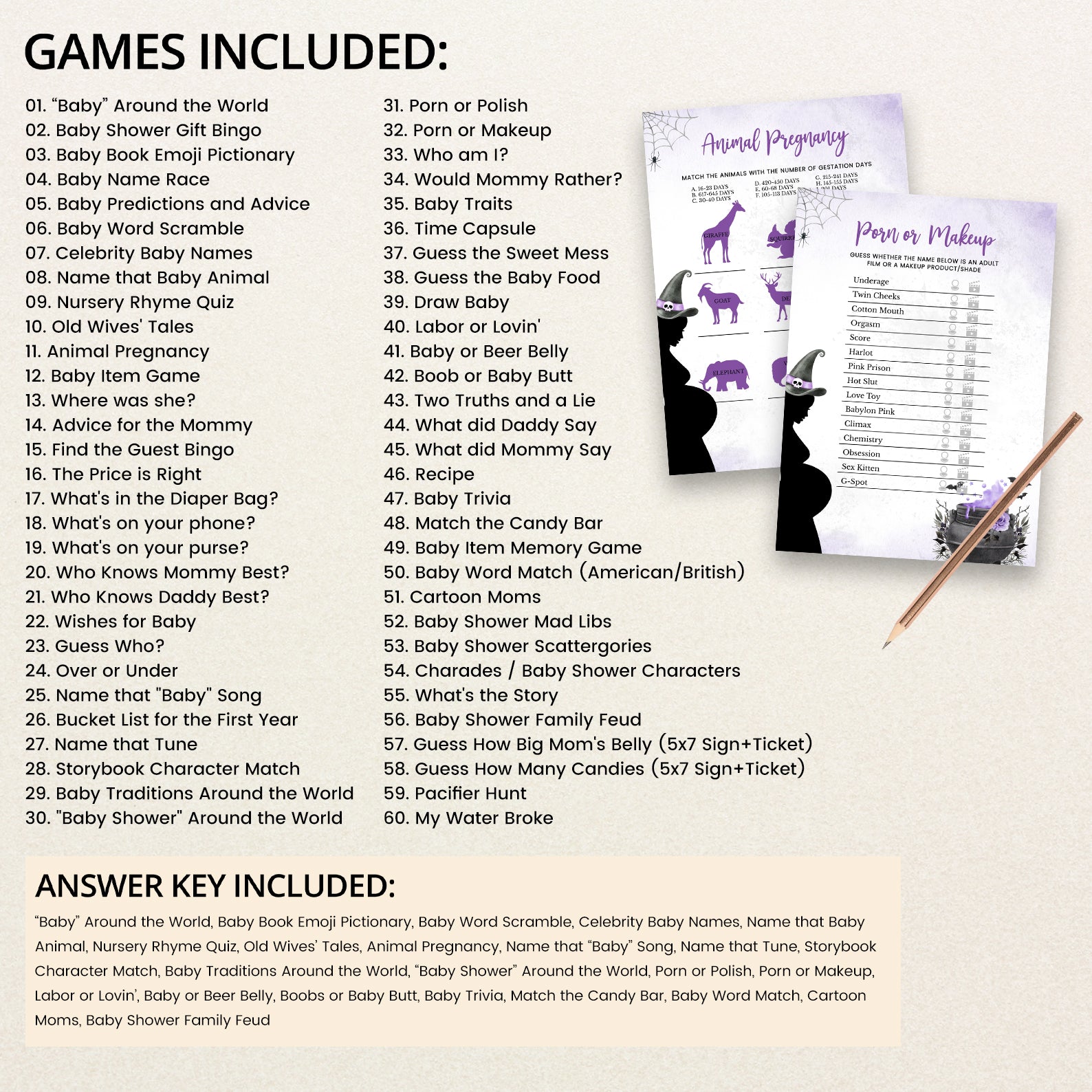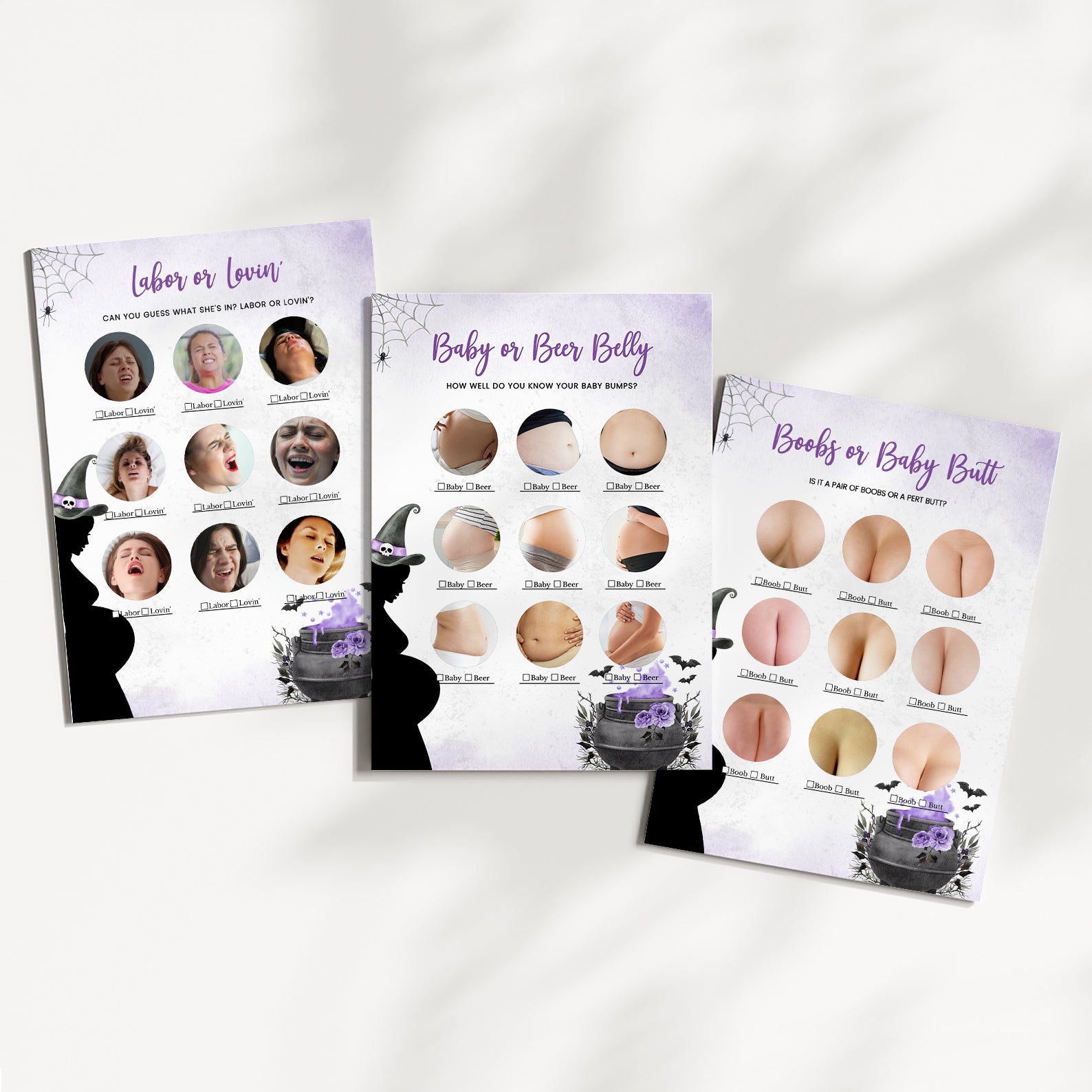 Spellbinding Purple Baby Shower Game Bundle: Pregnant Witch & Cauldron