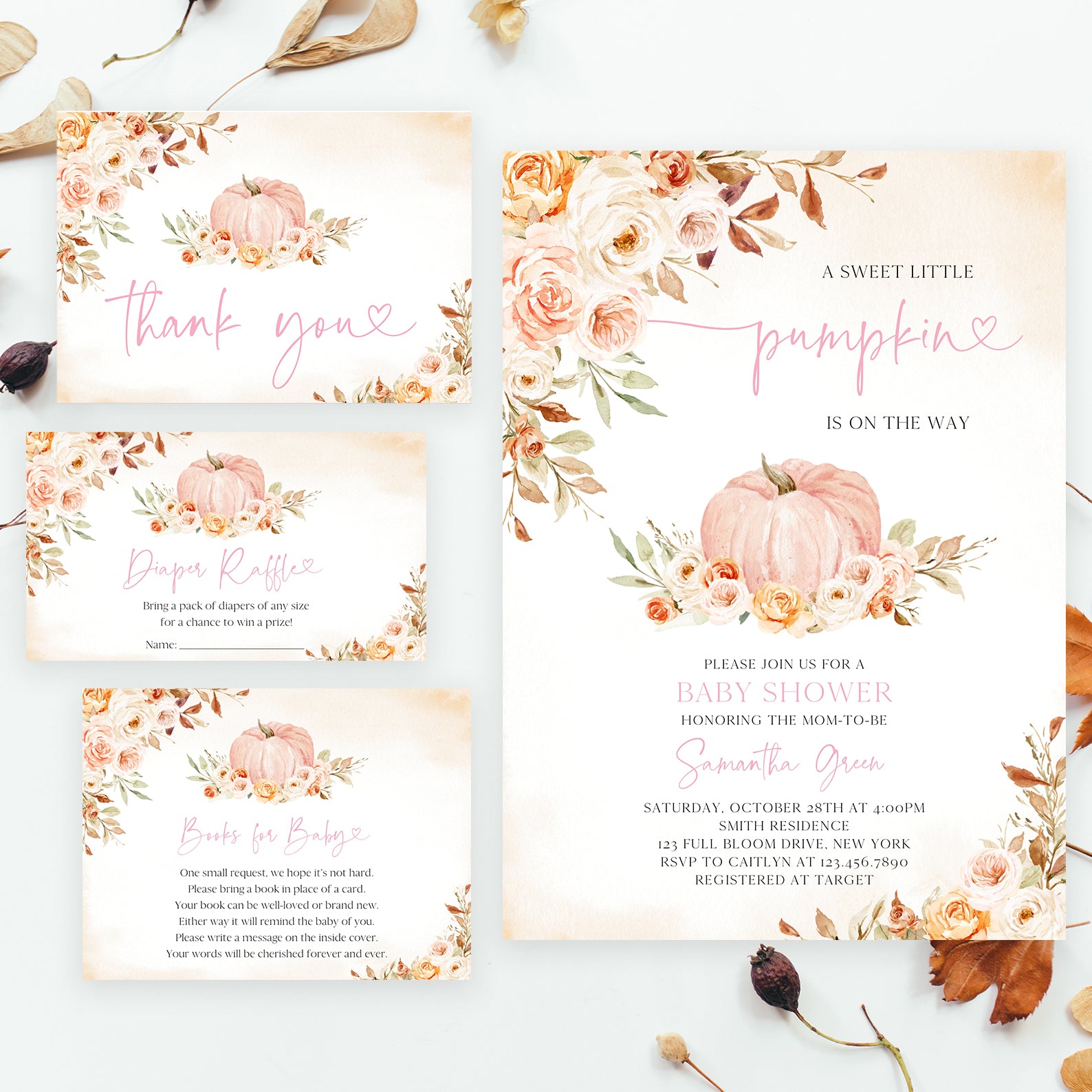 Charming Fall Pink Baby Shower Invitation Bundle with Roses & Pumpkins