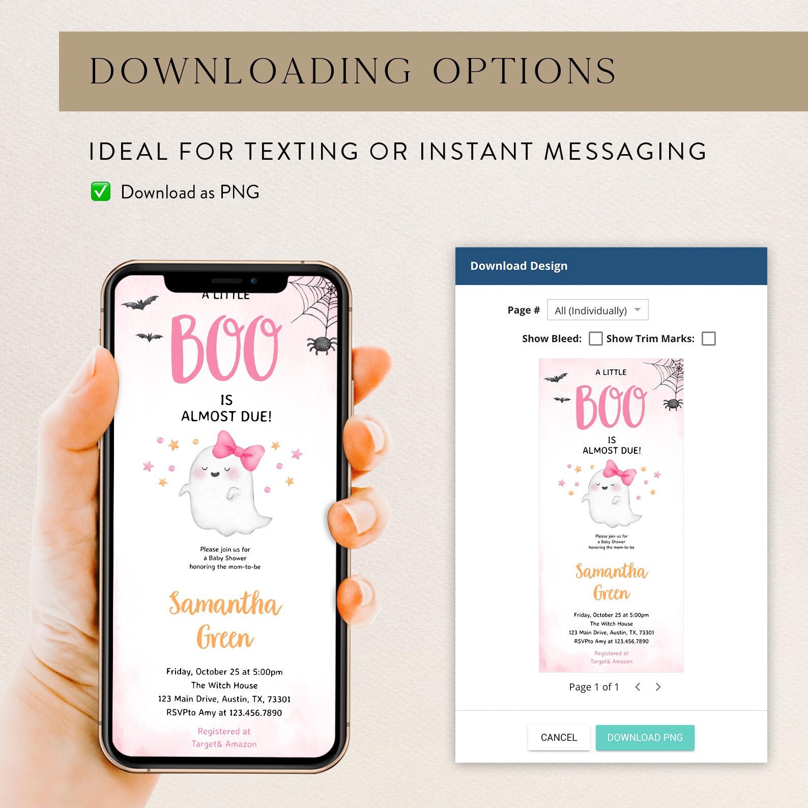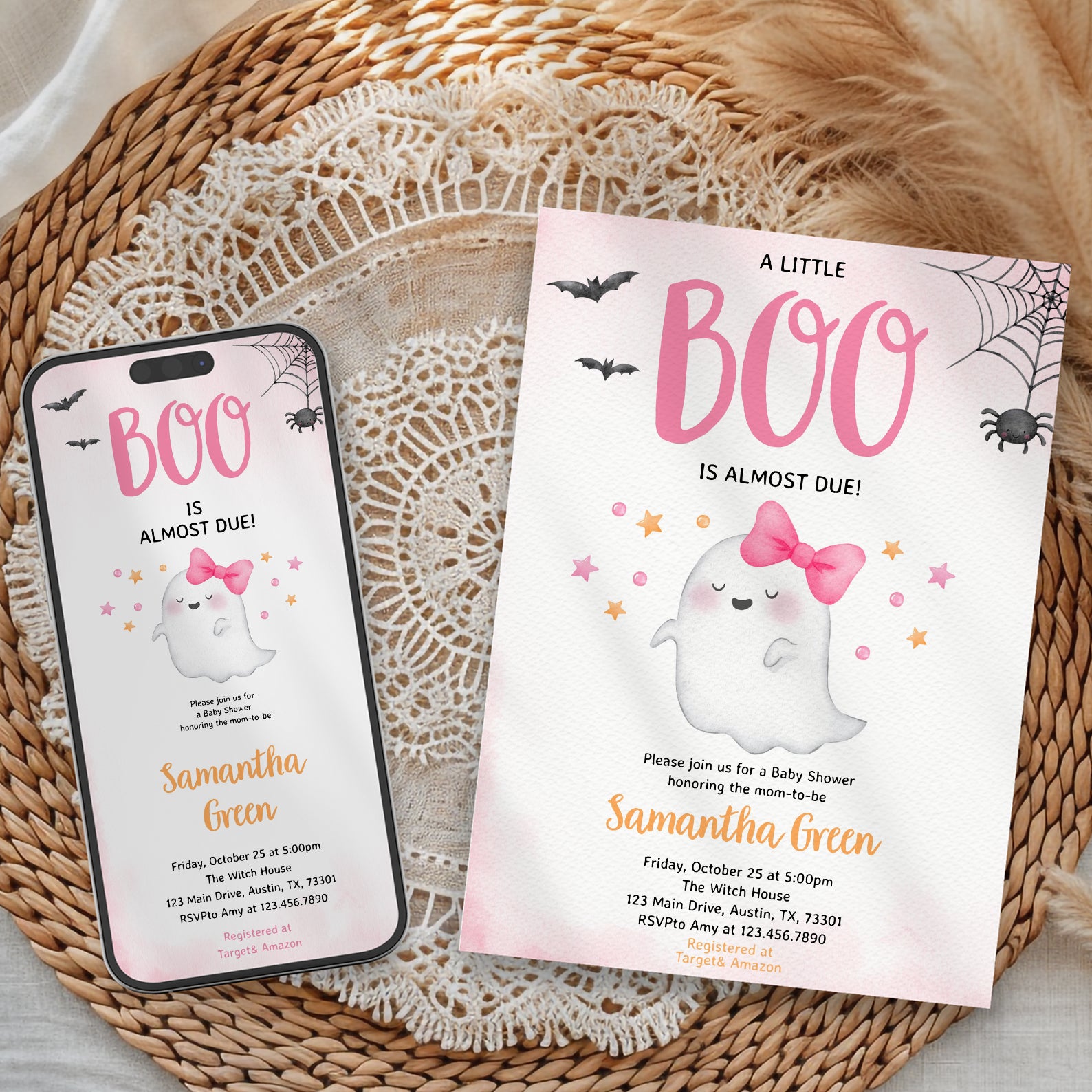 - Purchase this Boo-tiful Pink Baby Shower Invite: A Little Ghost is Almost Here! template