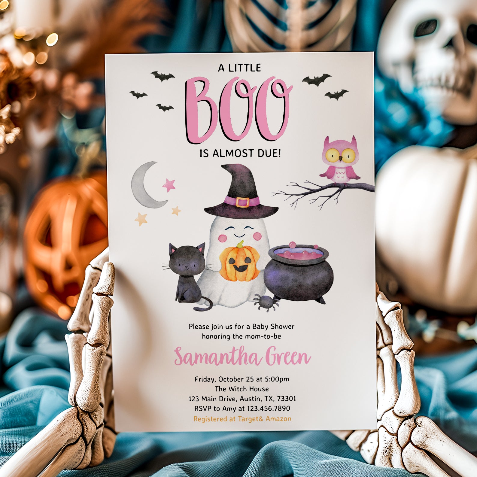 - Purchase this Charming Halloween Pink Digital Invite: Cute Boo Arriving Soon template