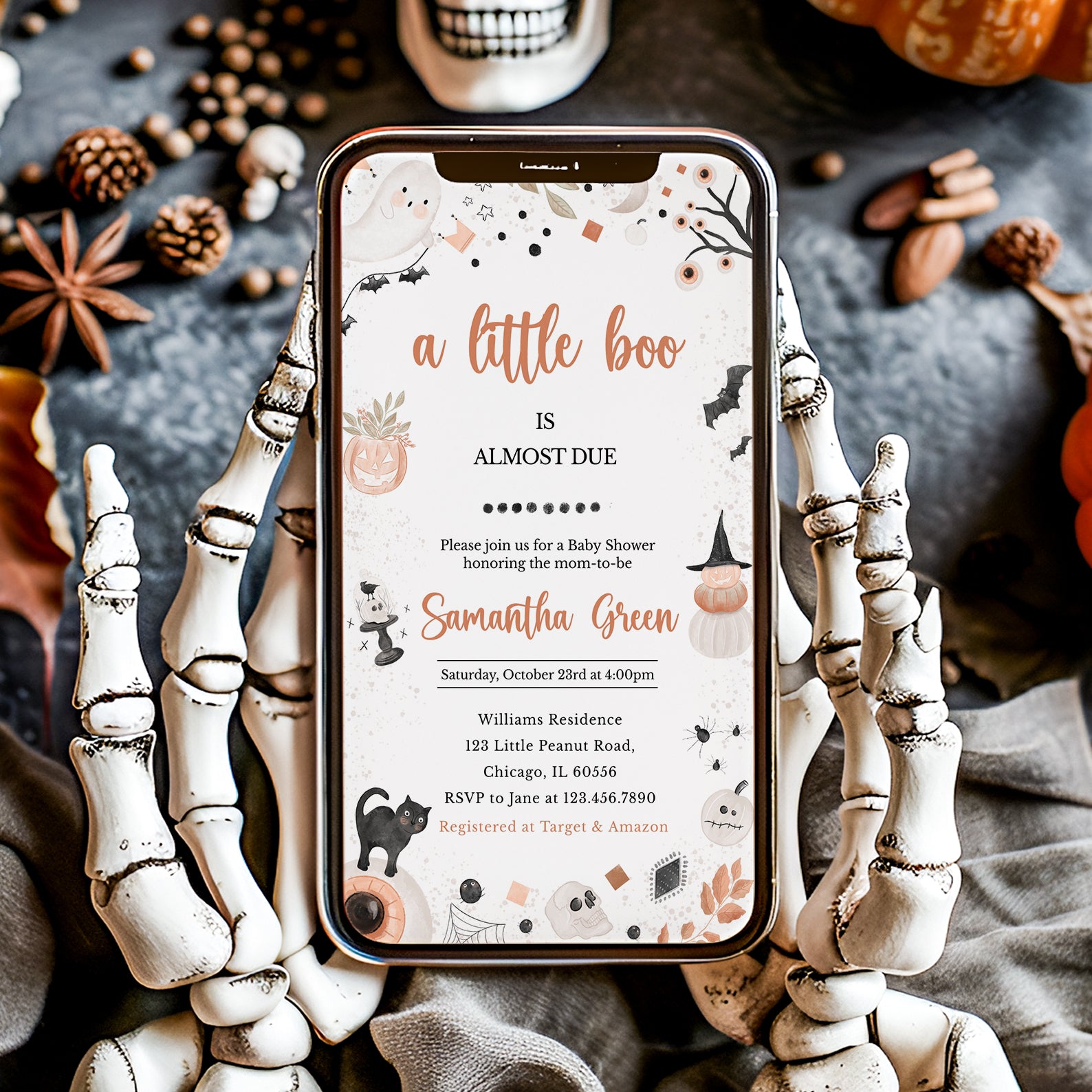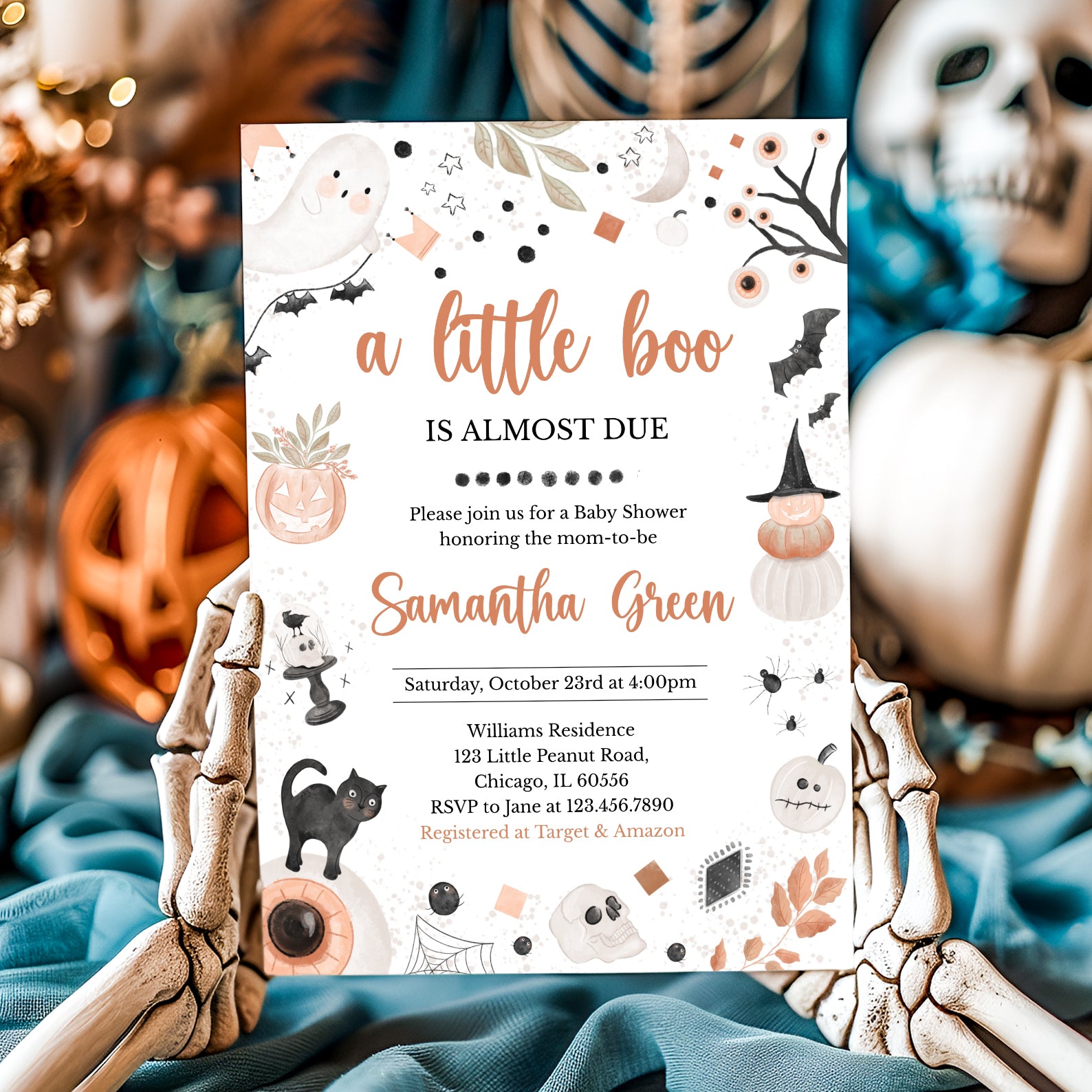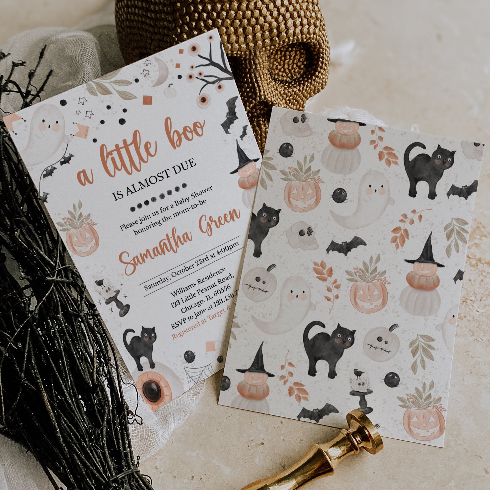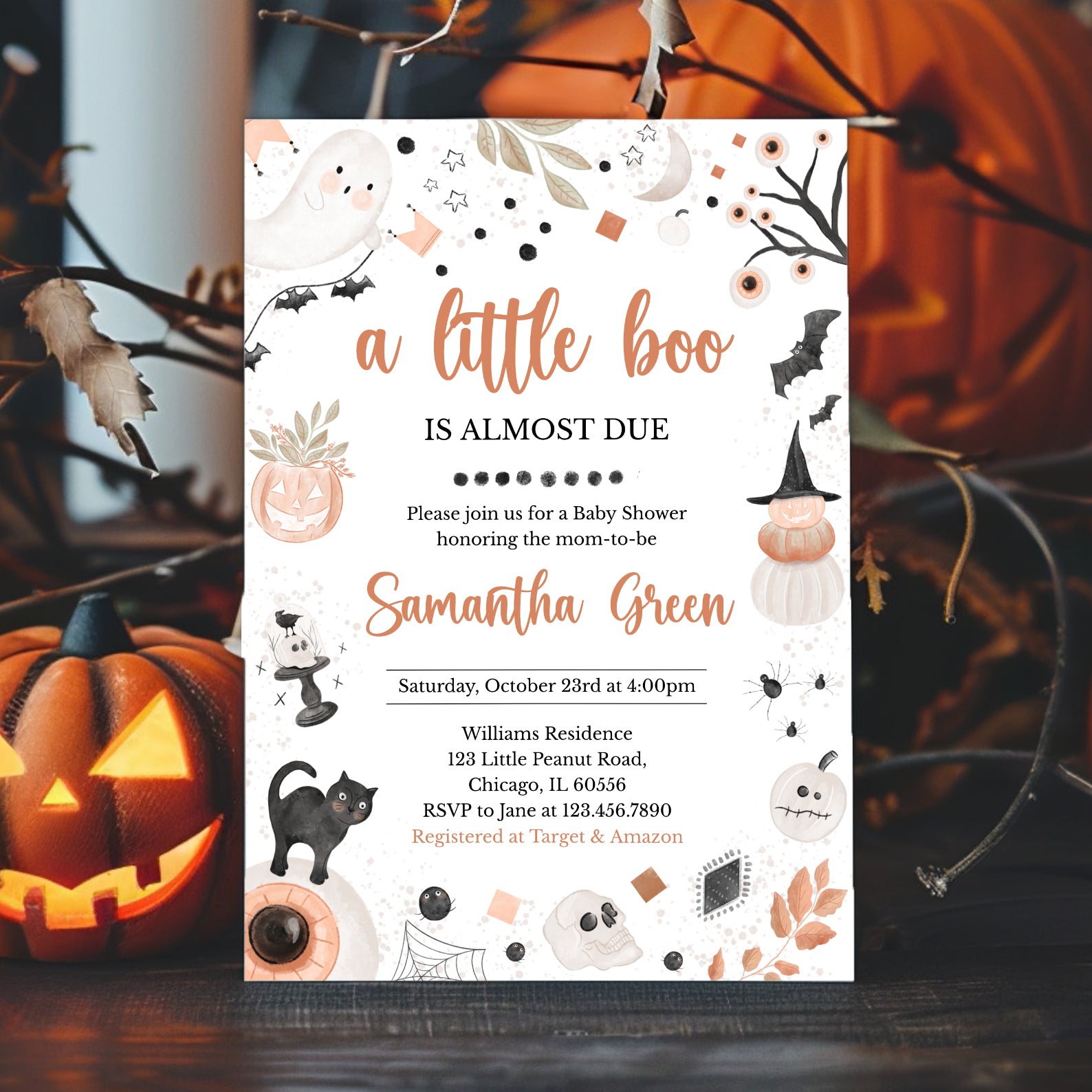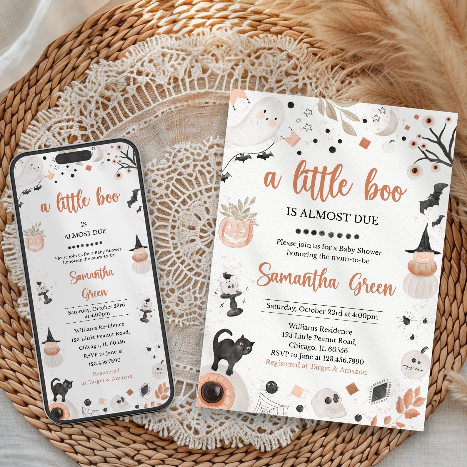 Cute Boho Halloween Digital Invite: A Little Boo's Arrival