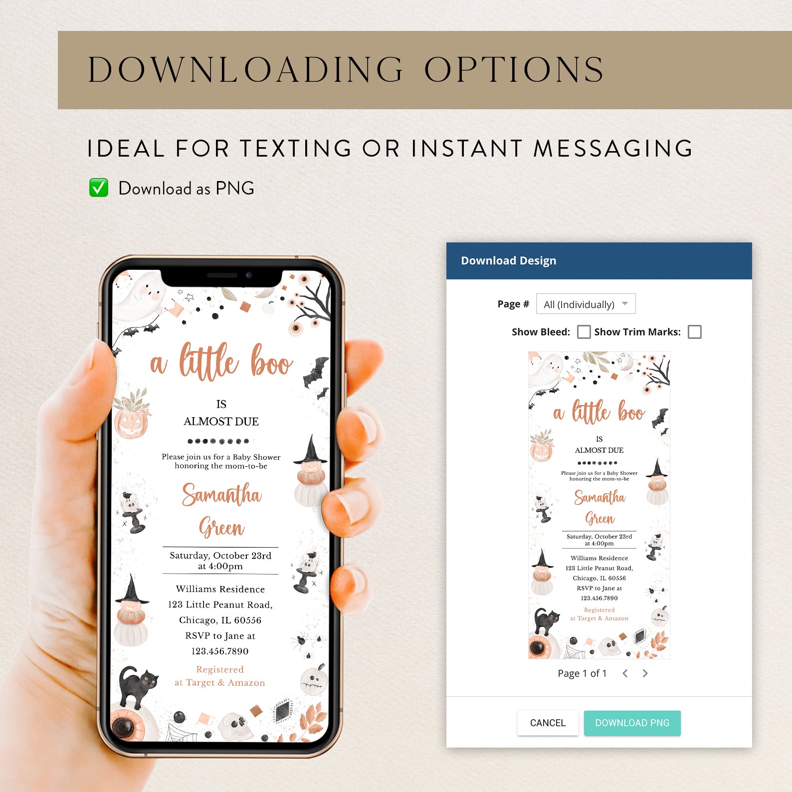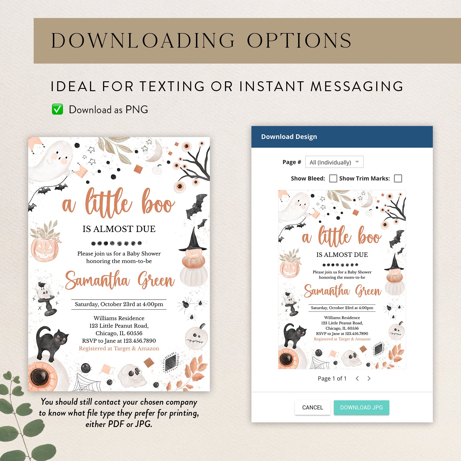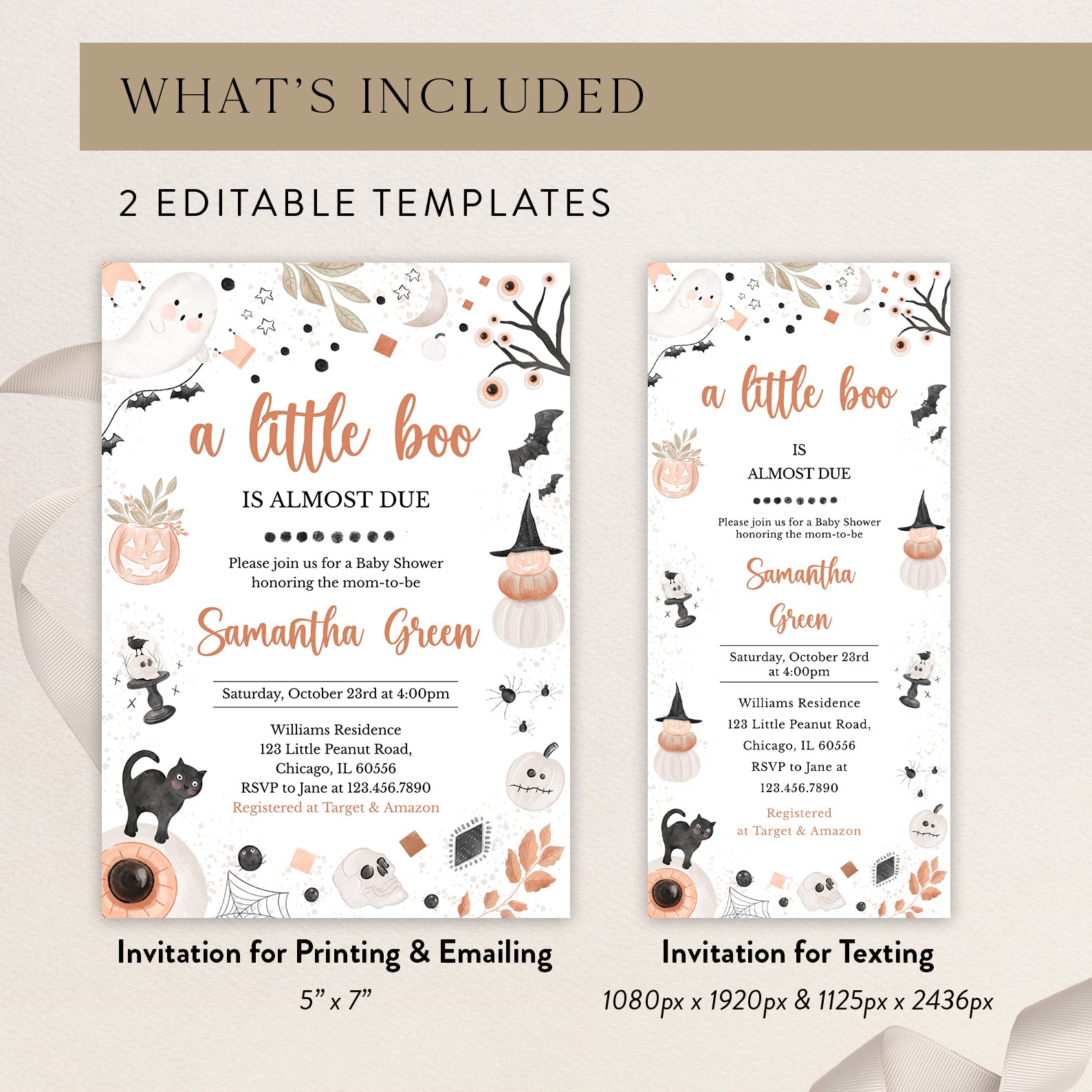 - Purchase this Cute Boho Halloween Digital Invite: A Little Boo's Arrival template