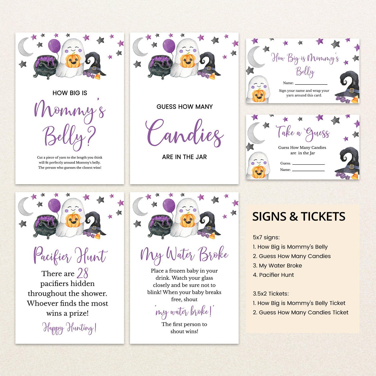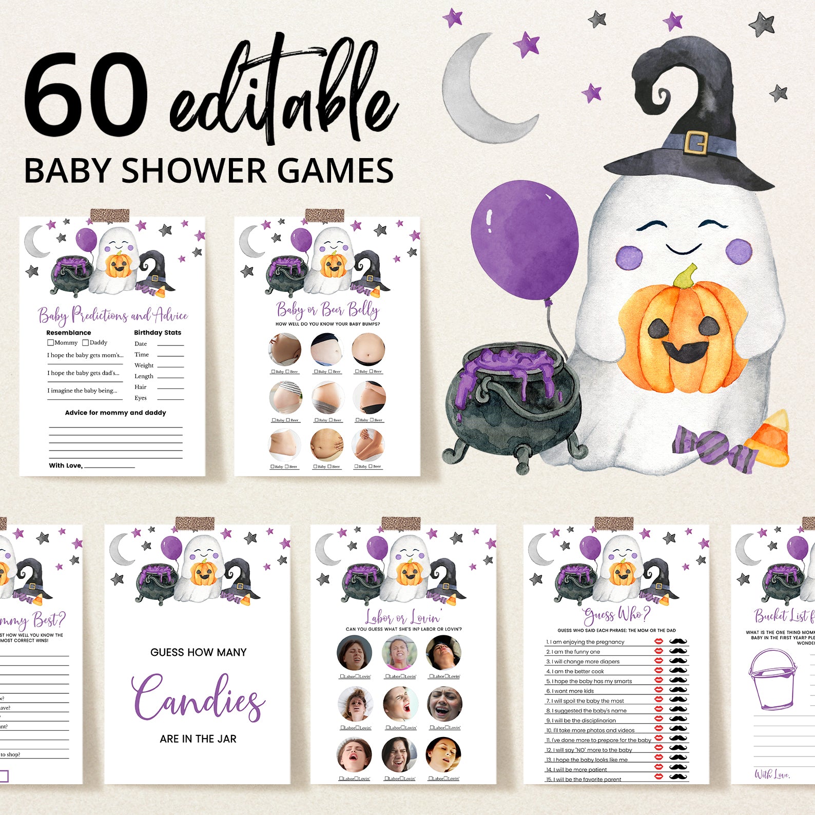 - Purchase this Halloween Baby Shower Game Bundle: Charming Smiling Ghost Design template