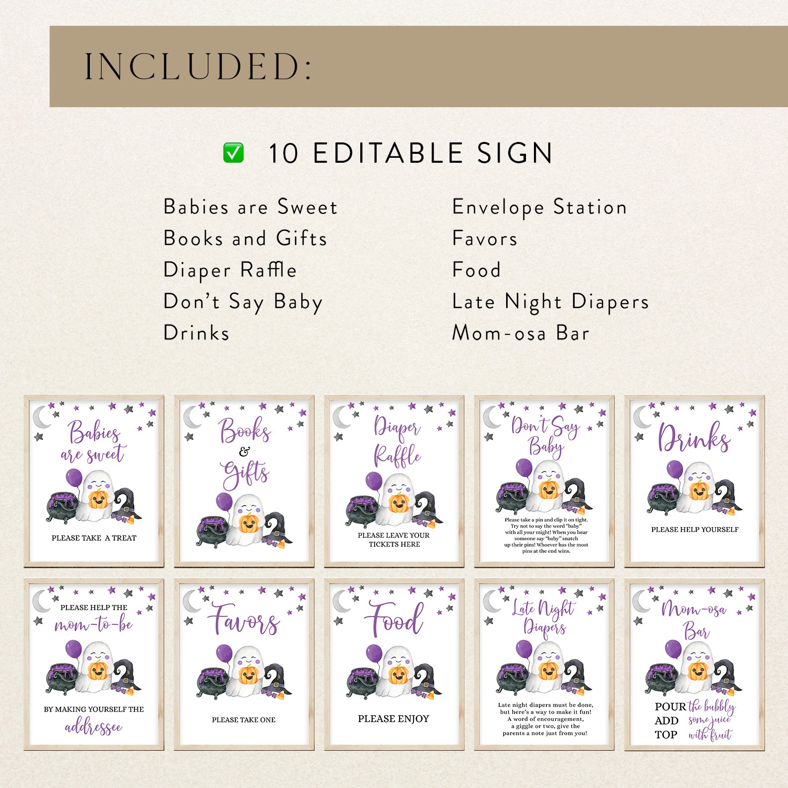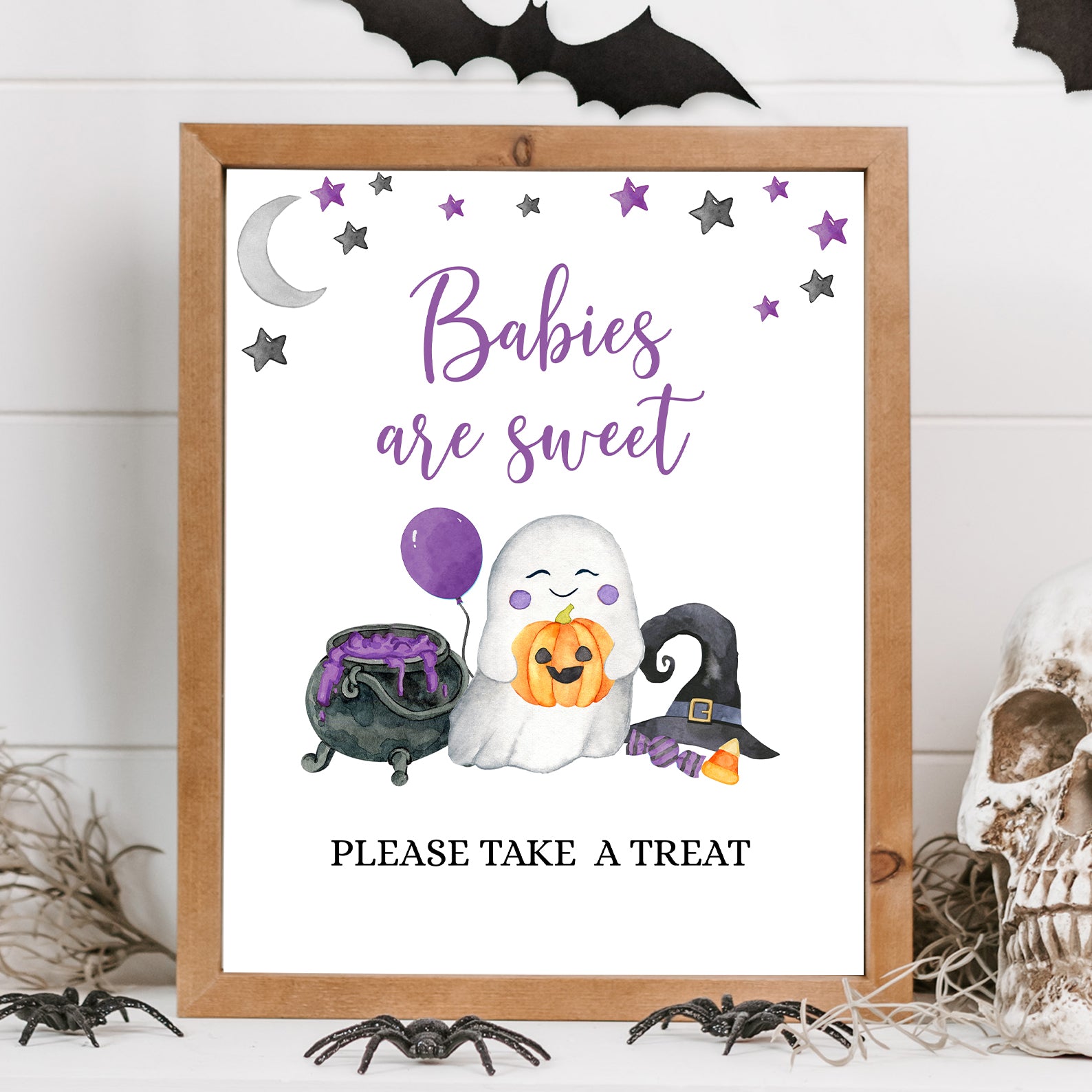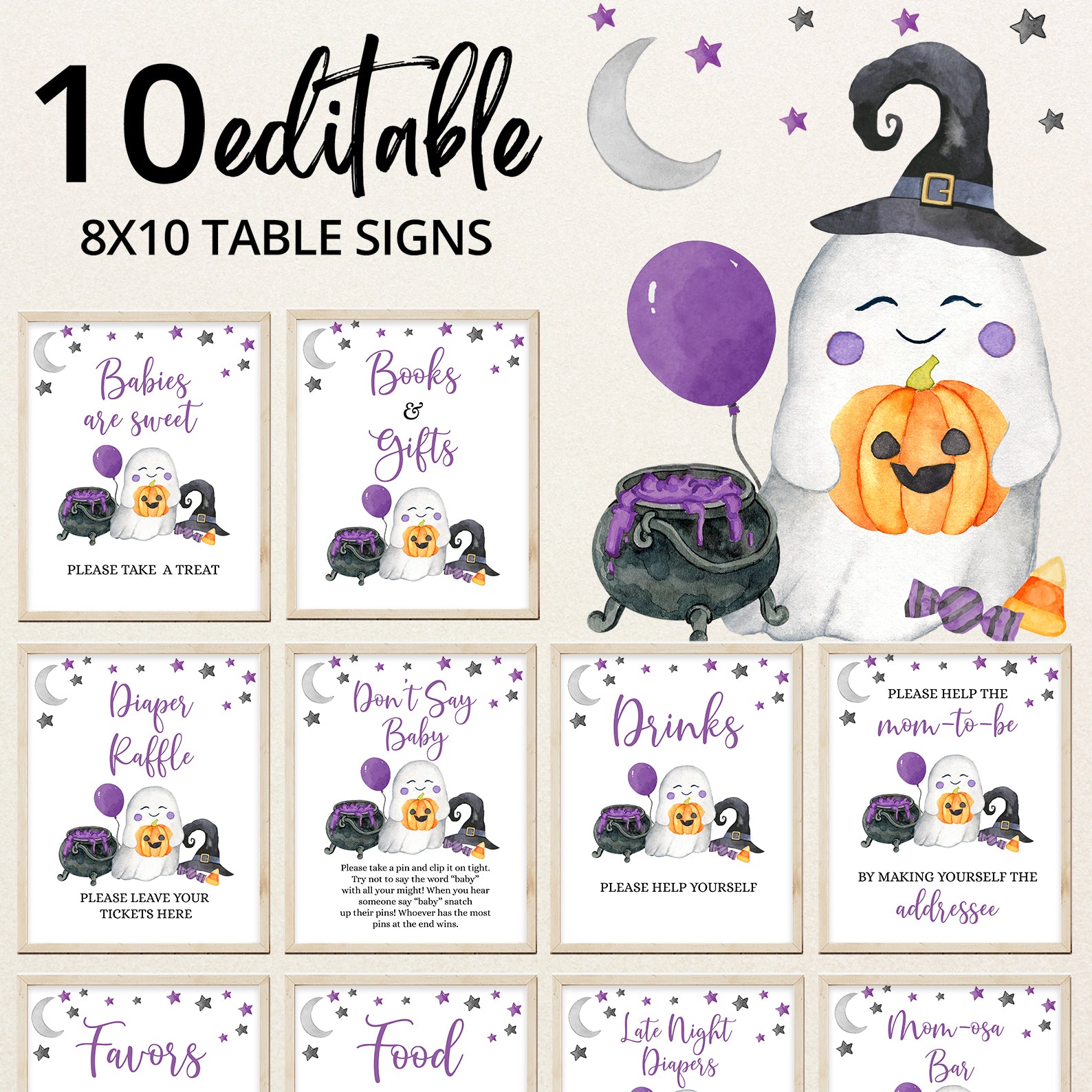 - Purchase this Halloween Baby Shower Table Sign: Charming Smiling Ghost Design template
