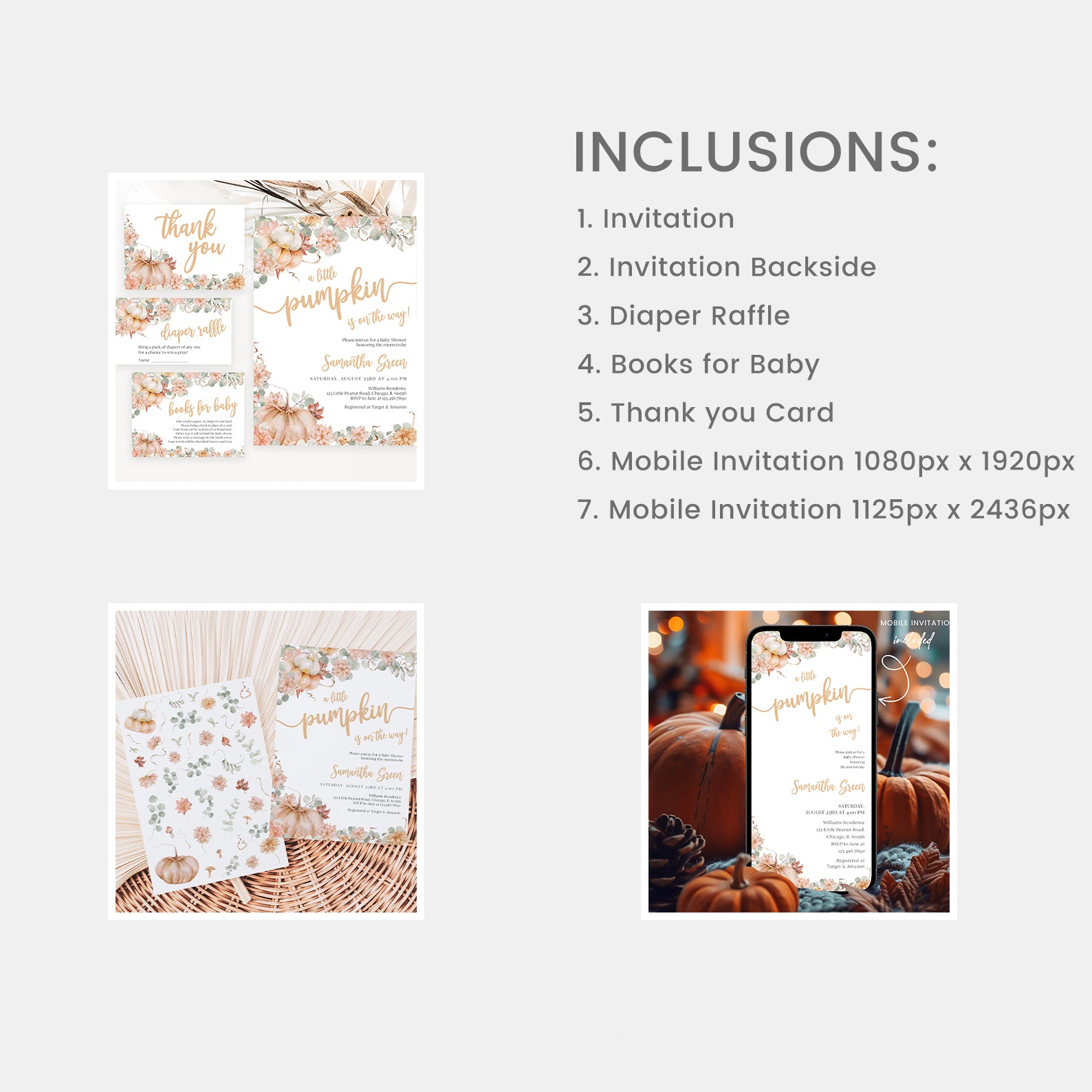 - Purchase this Orange Fall Baby Shower Mega Bundle with Pumpkins & Floral Border template