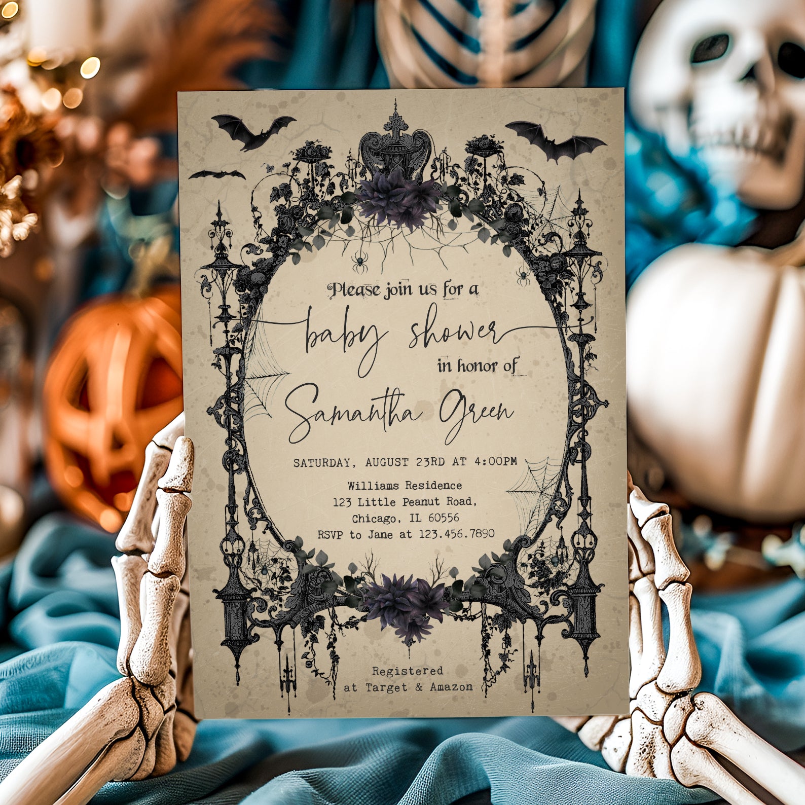 - Purchase this Vintage Haunted Halloween Baby Shower Invite: Spooky Charm template