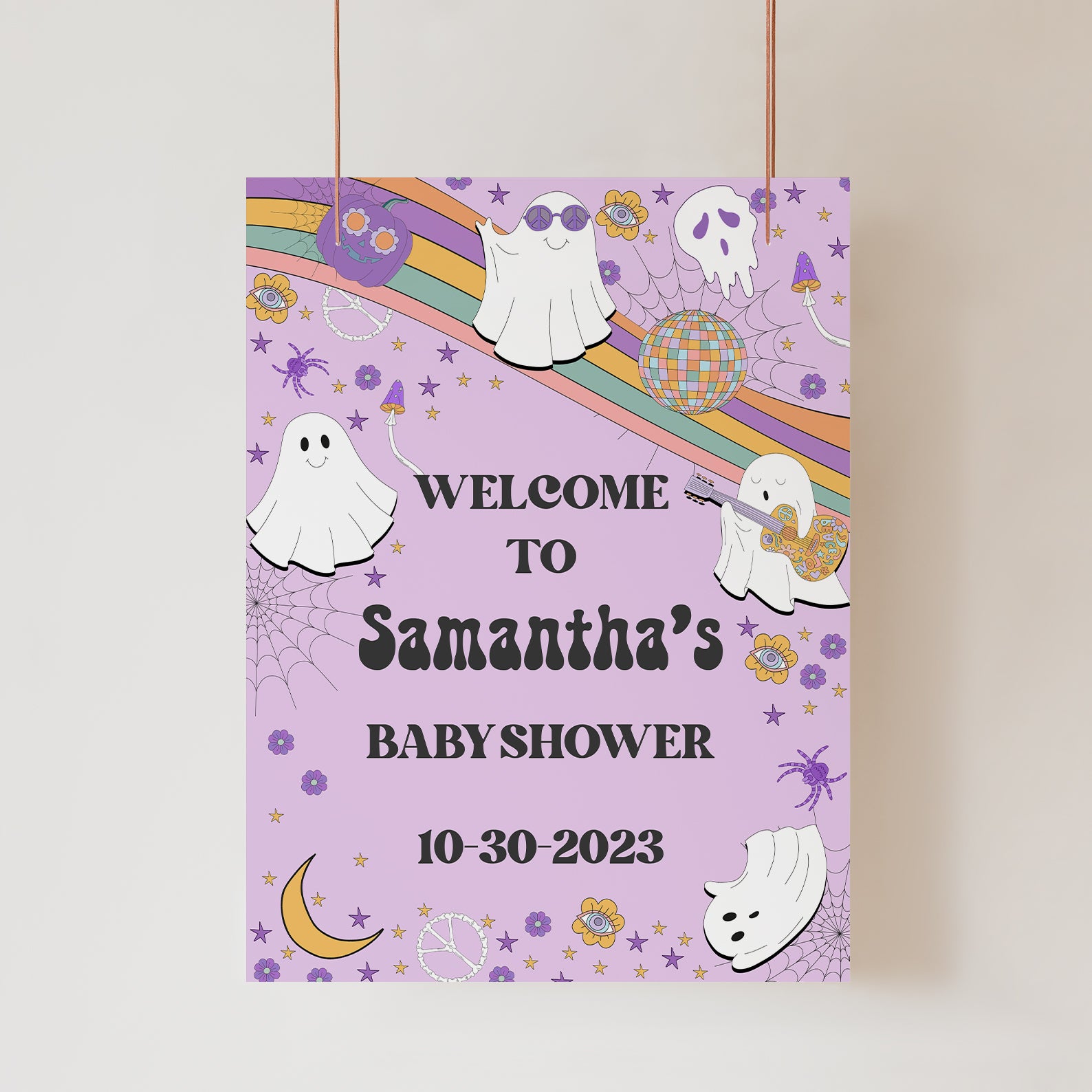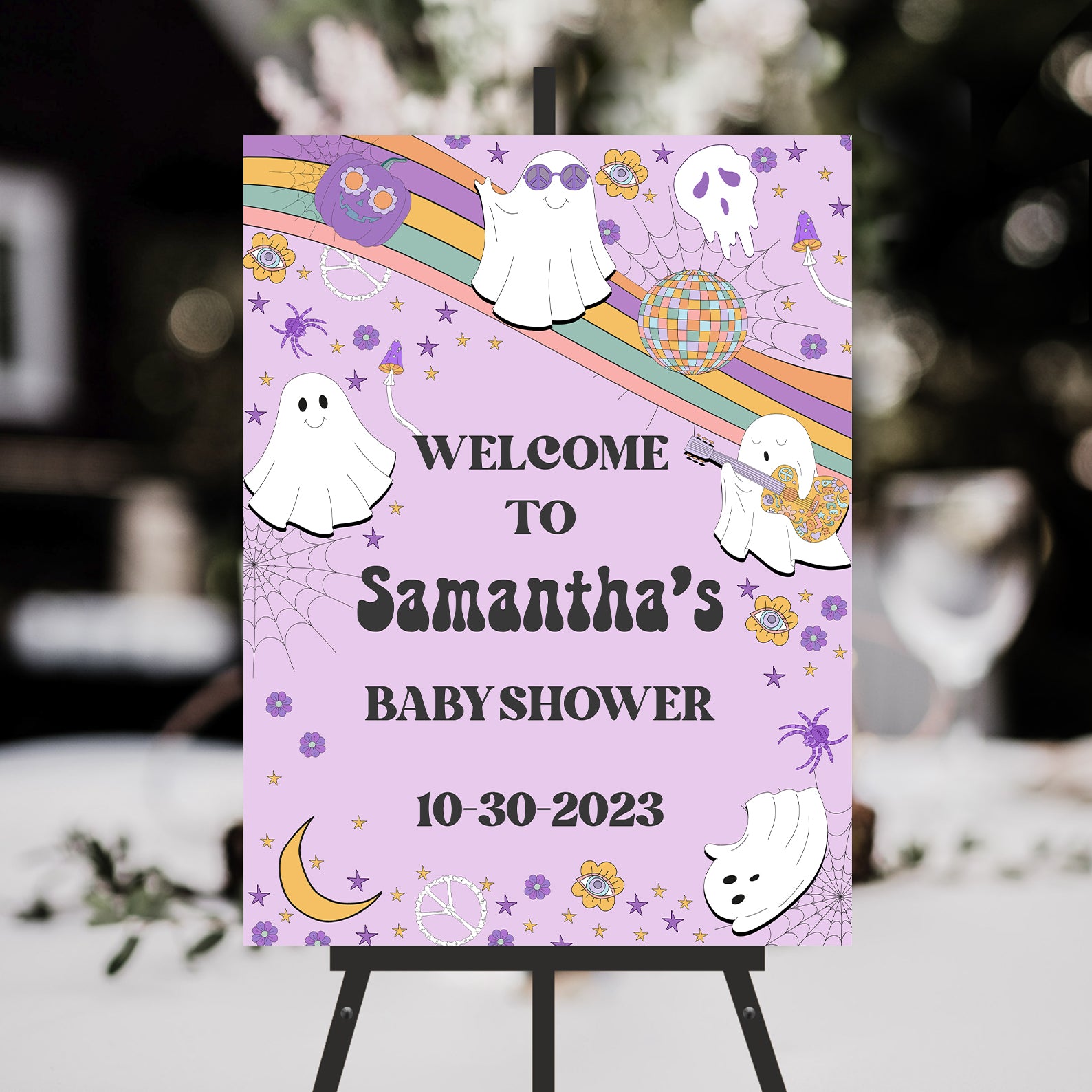 Groovy Baby Shower Welcome Sign: Spooky Playful Halloween Ghosts