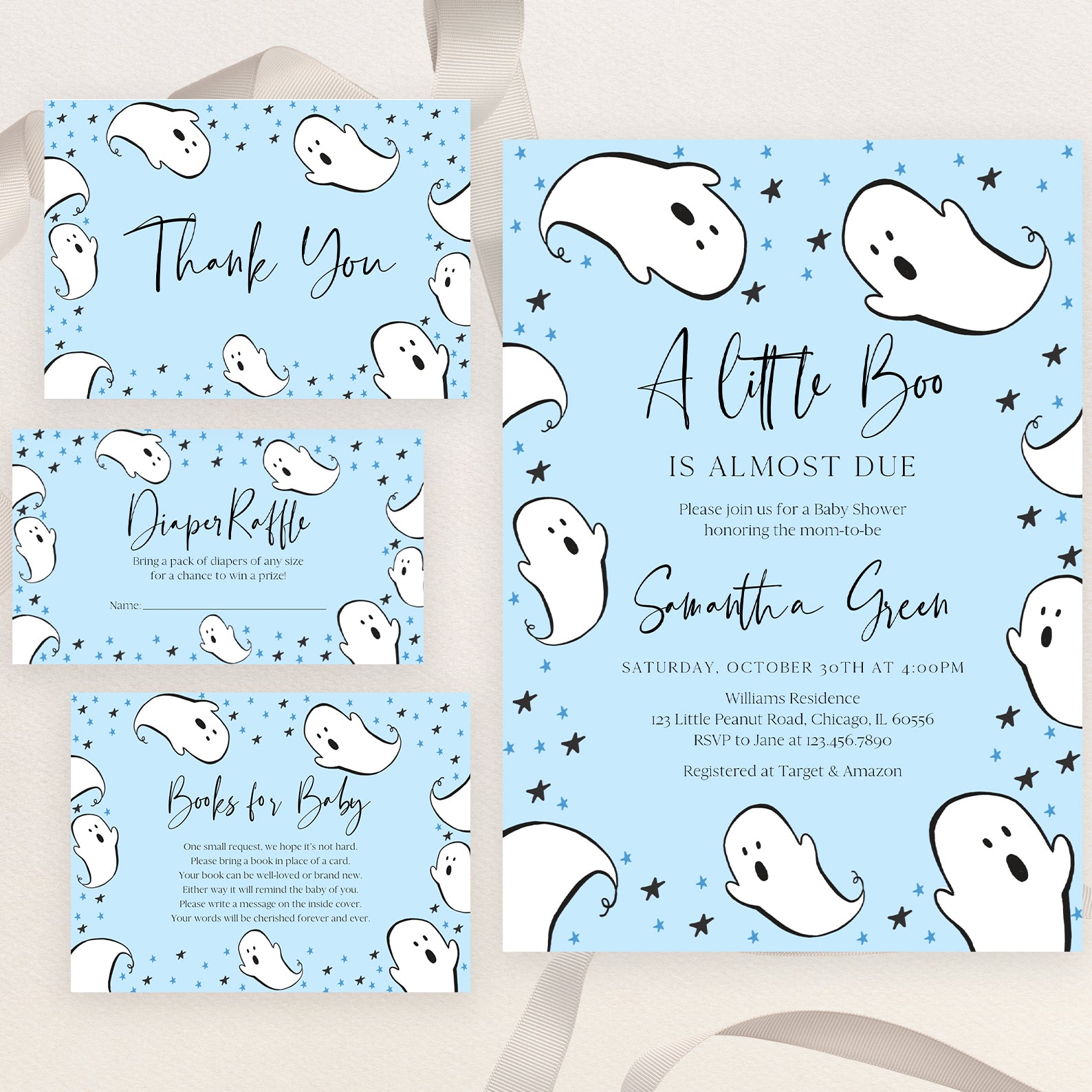 Playful Blue Baby Shower Invite Bundle: Little Boo, Ghosts, and Stars