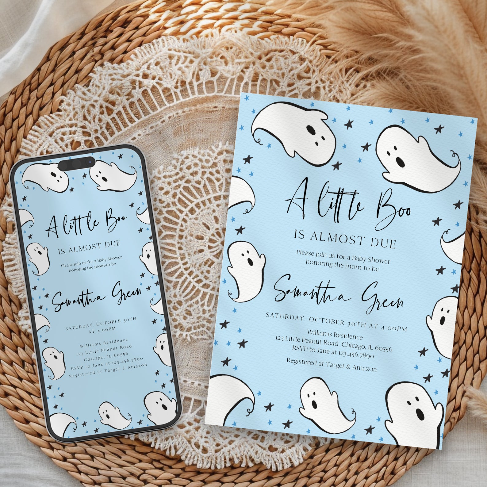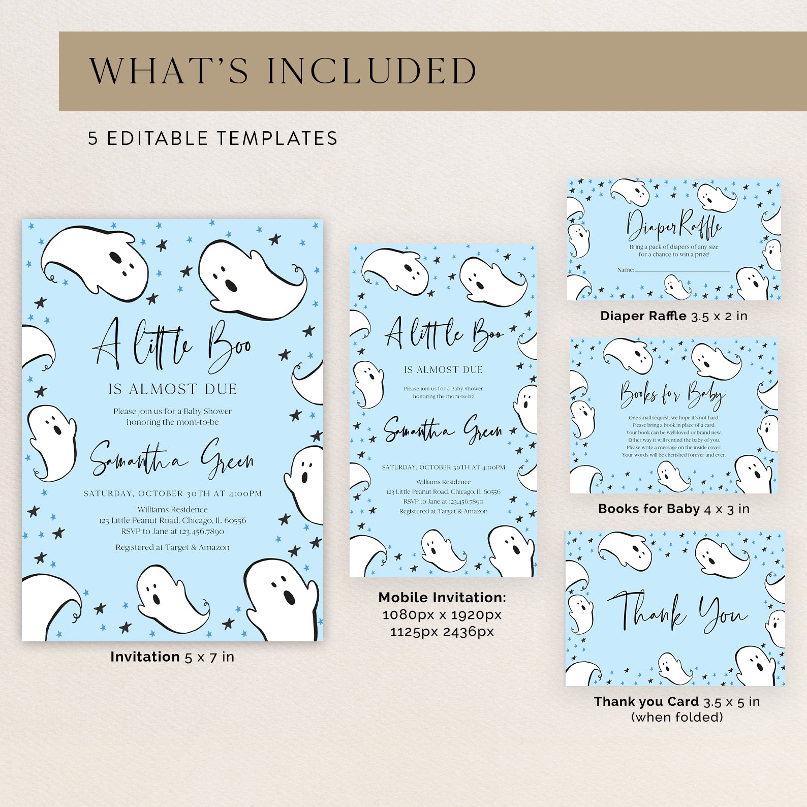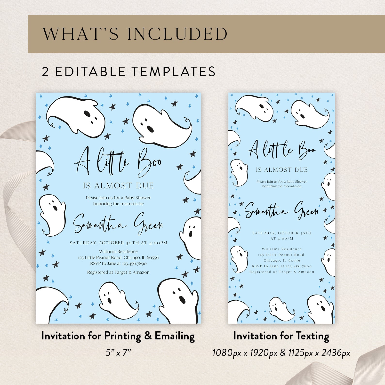 - Purchase this Playful Blue Baby Shower Invite Bundle: Little Boo, Ghosts, and Stars template
