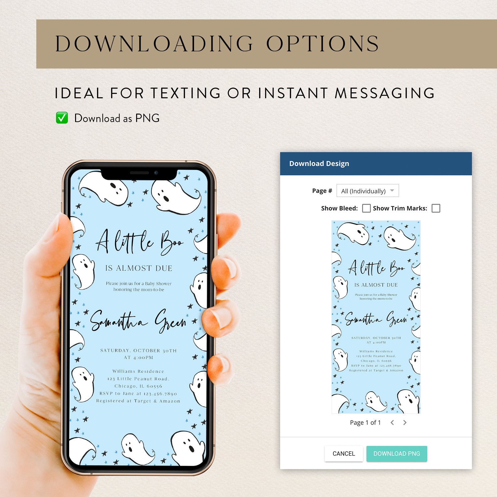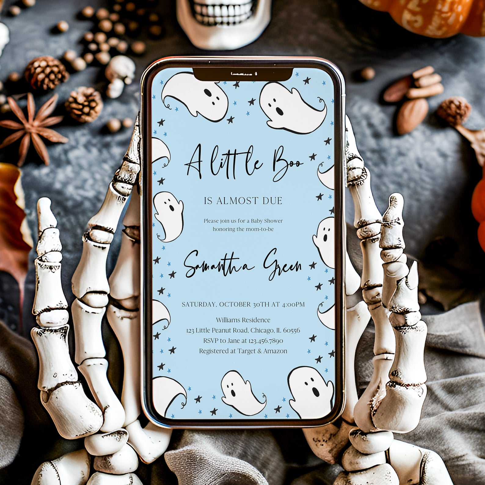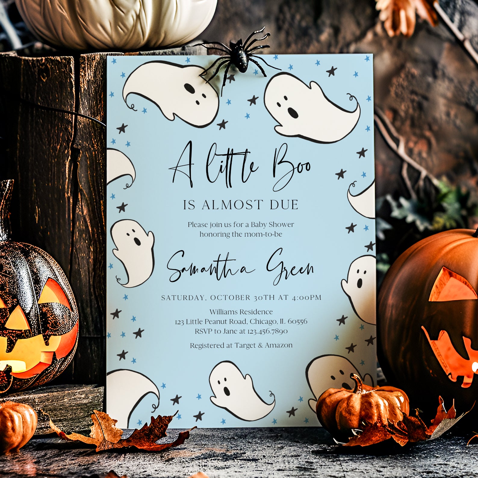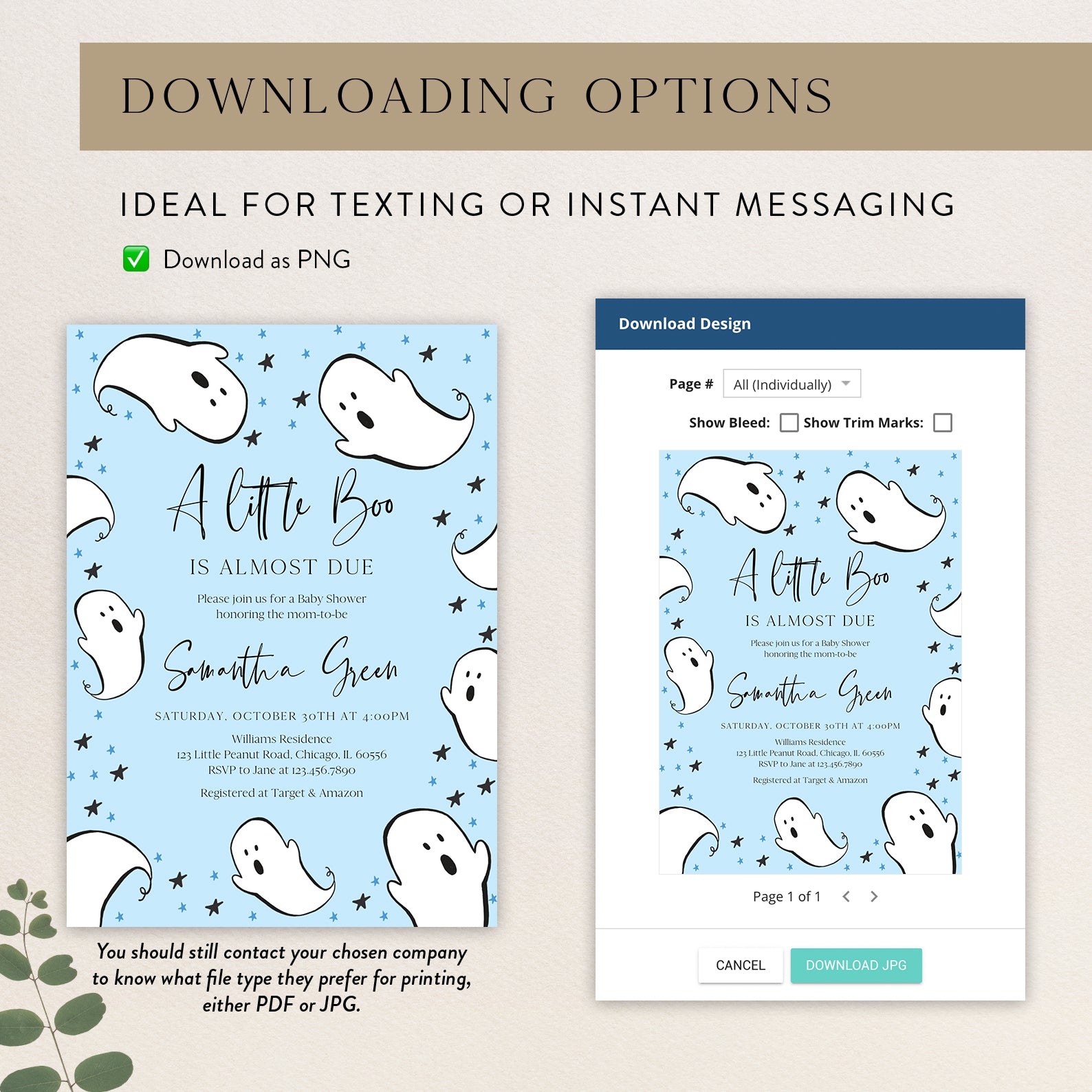 - Purchase this Playful Blue Baby Shower Invite Bundle: Little Boo, Ghosts, and Stars template