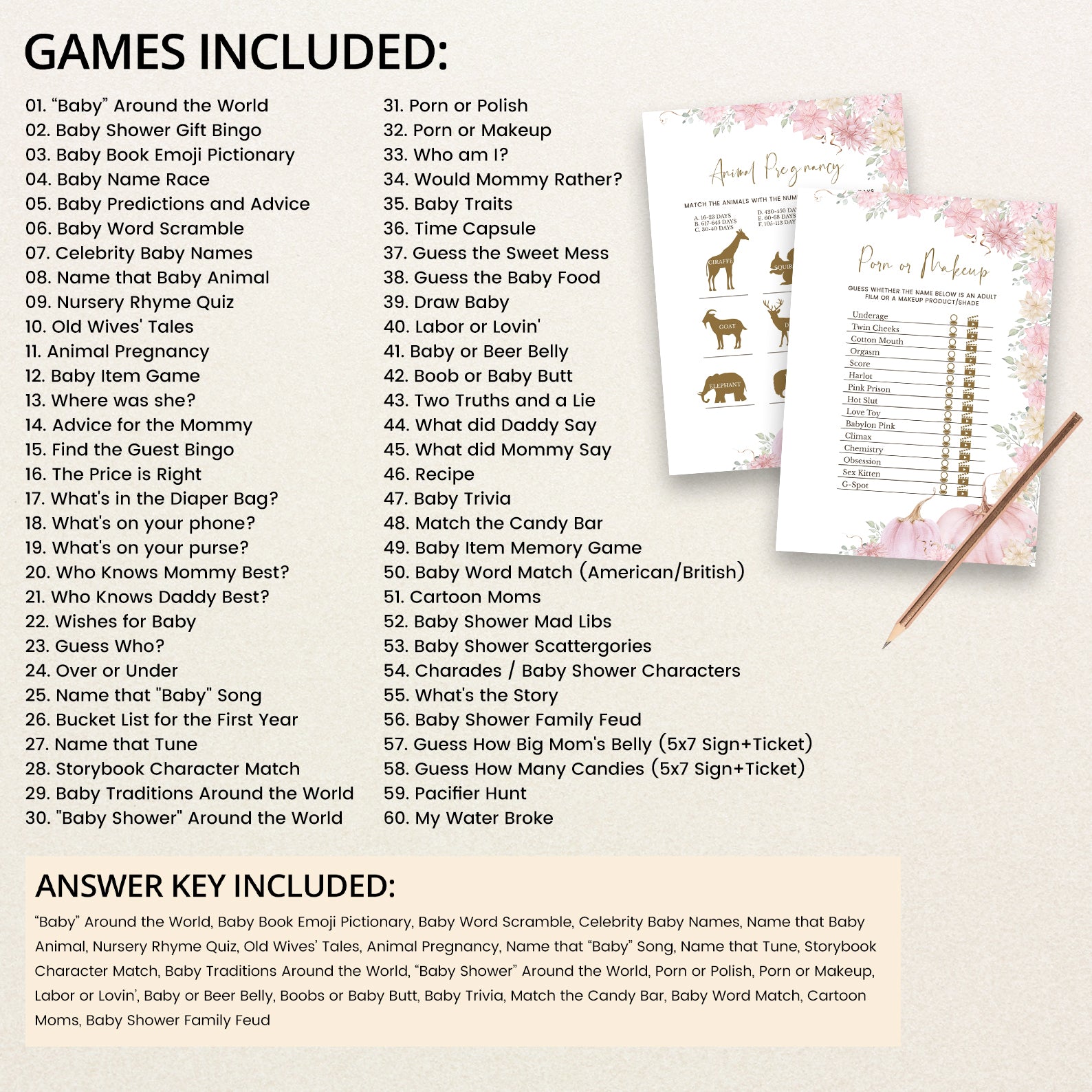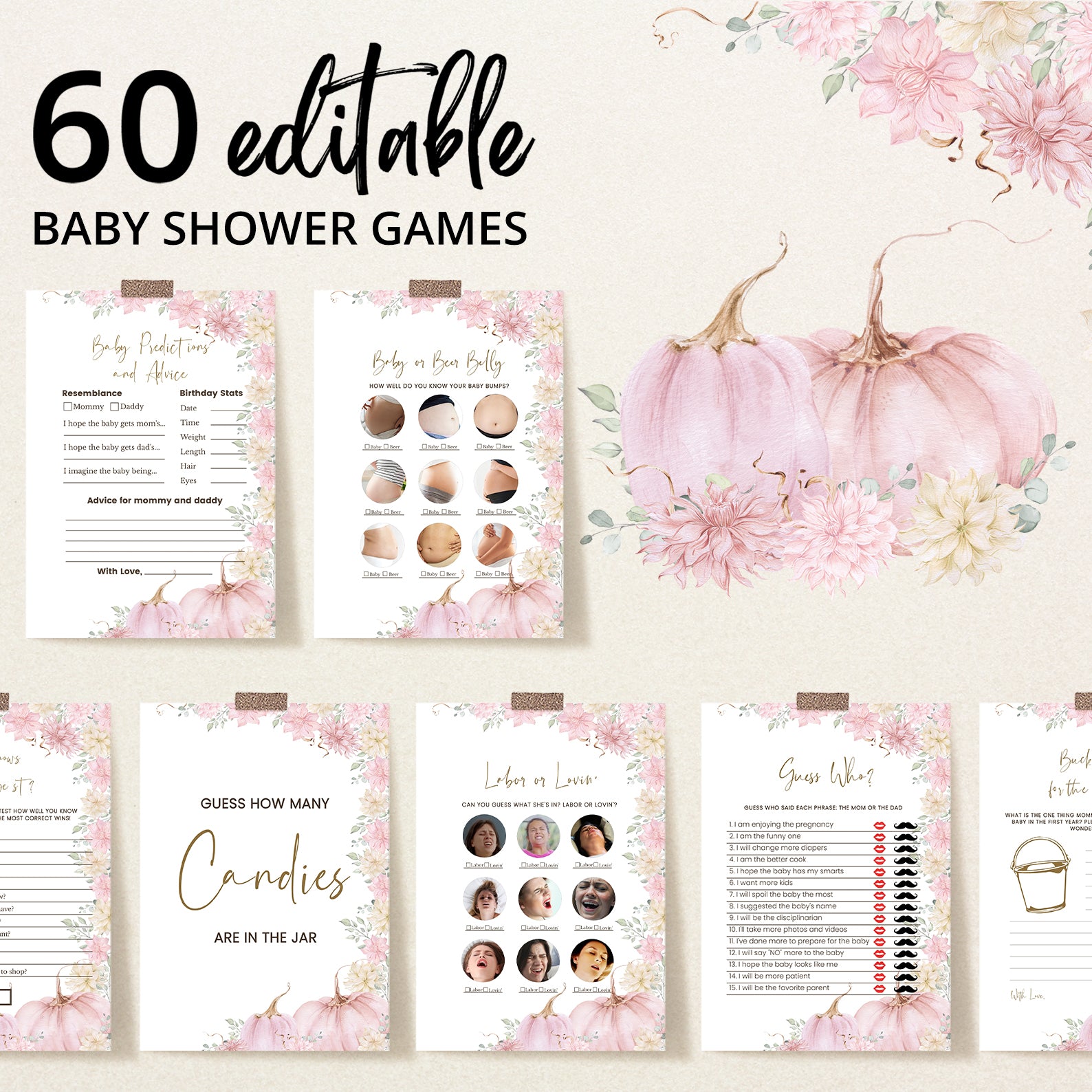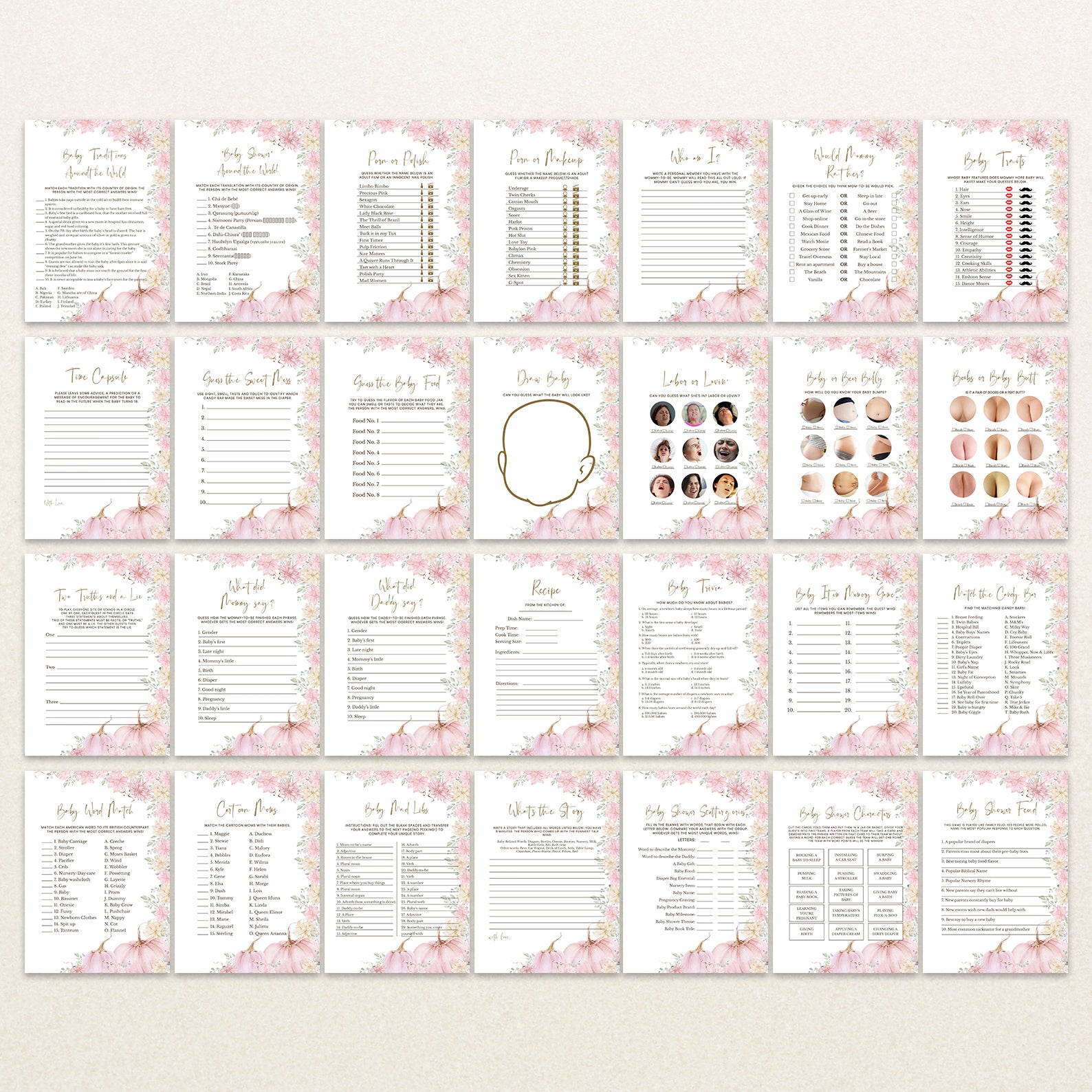 • 60 Editable Baby Shower Games Included