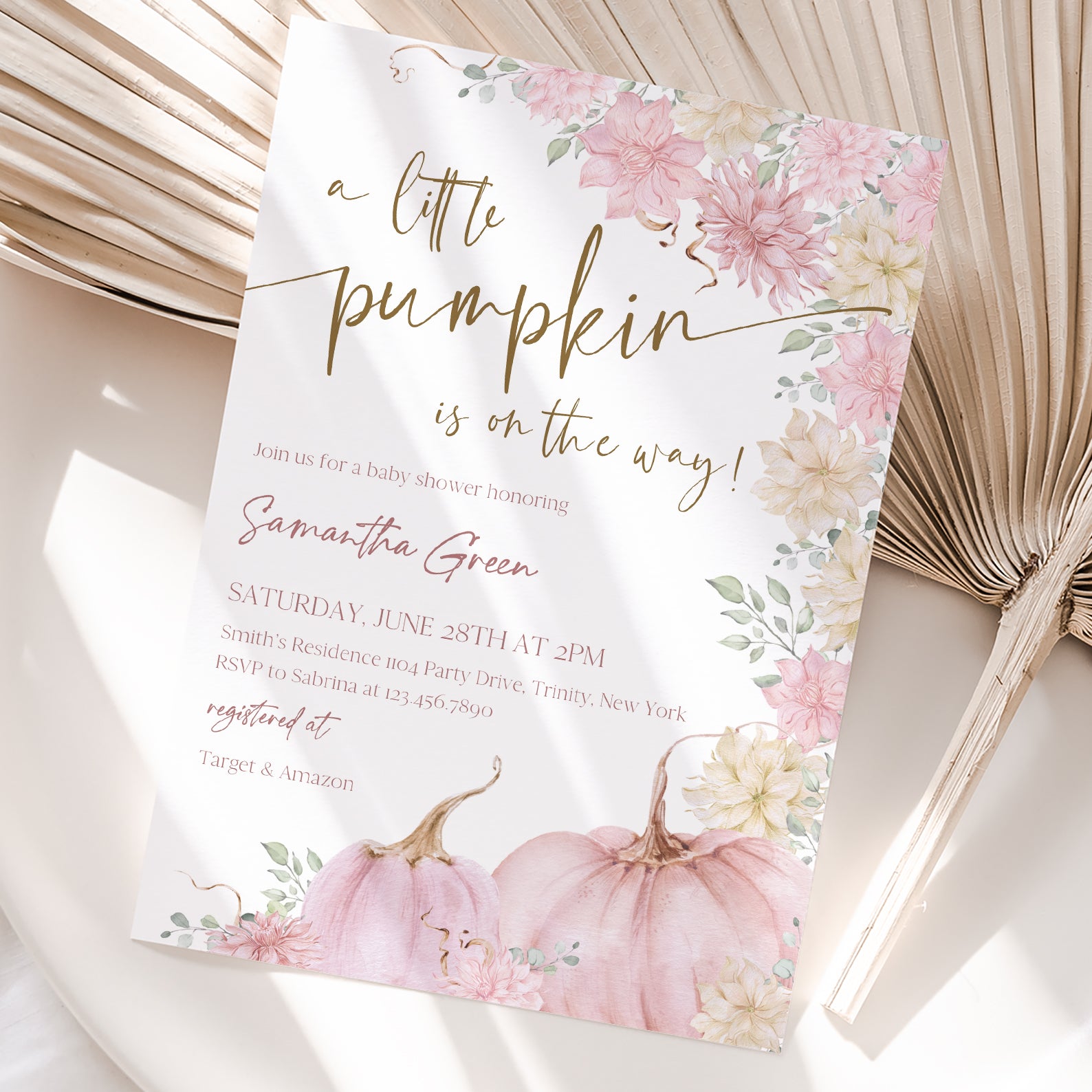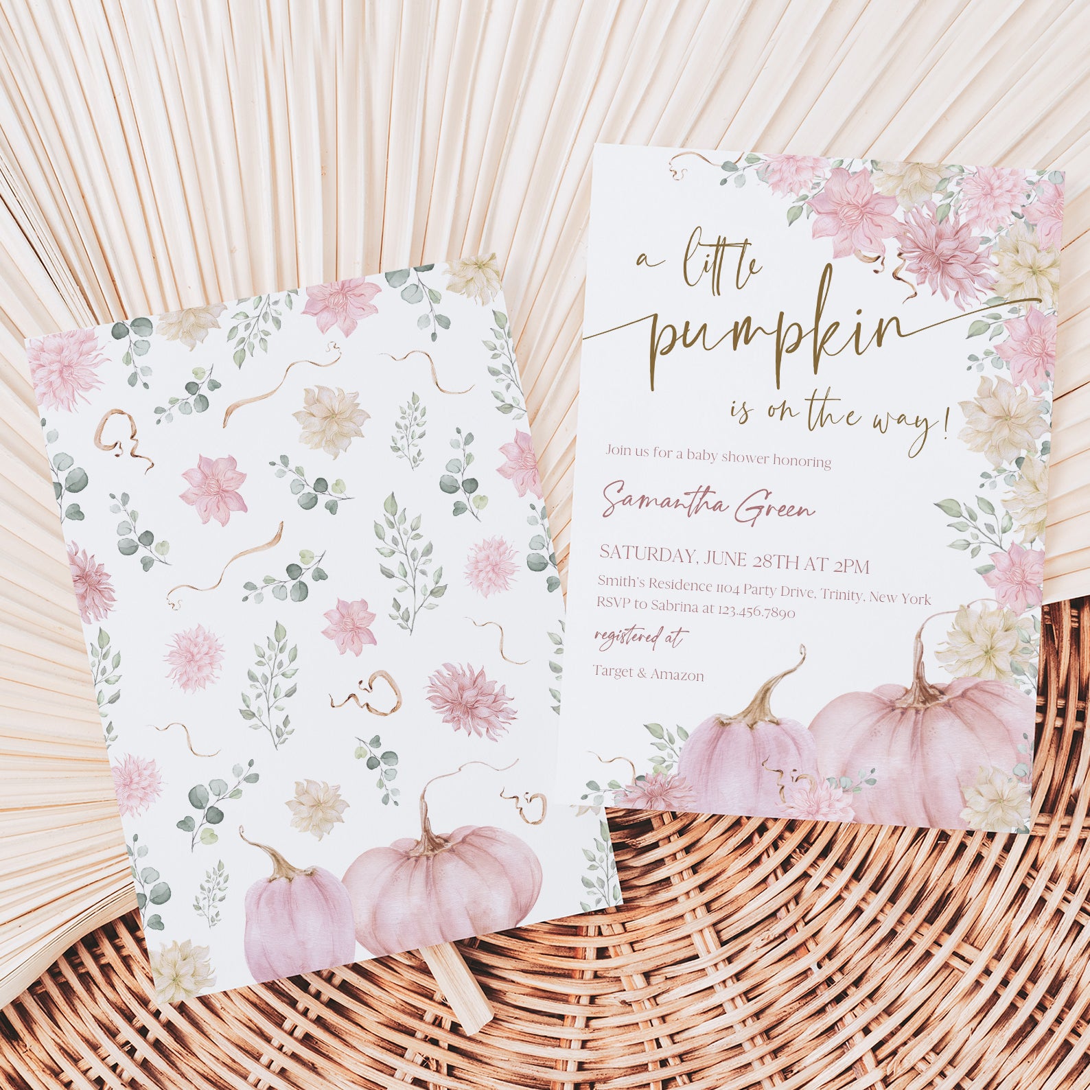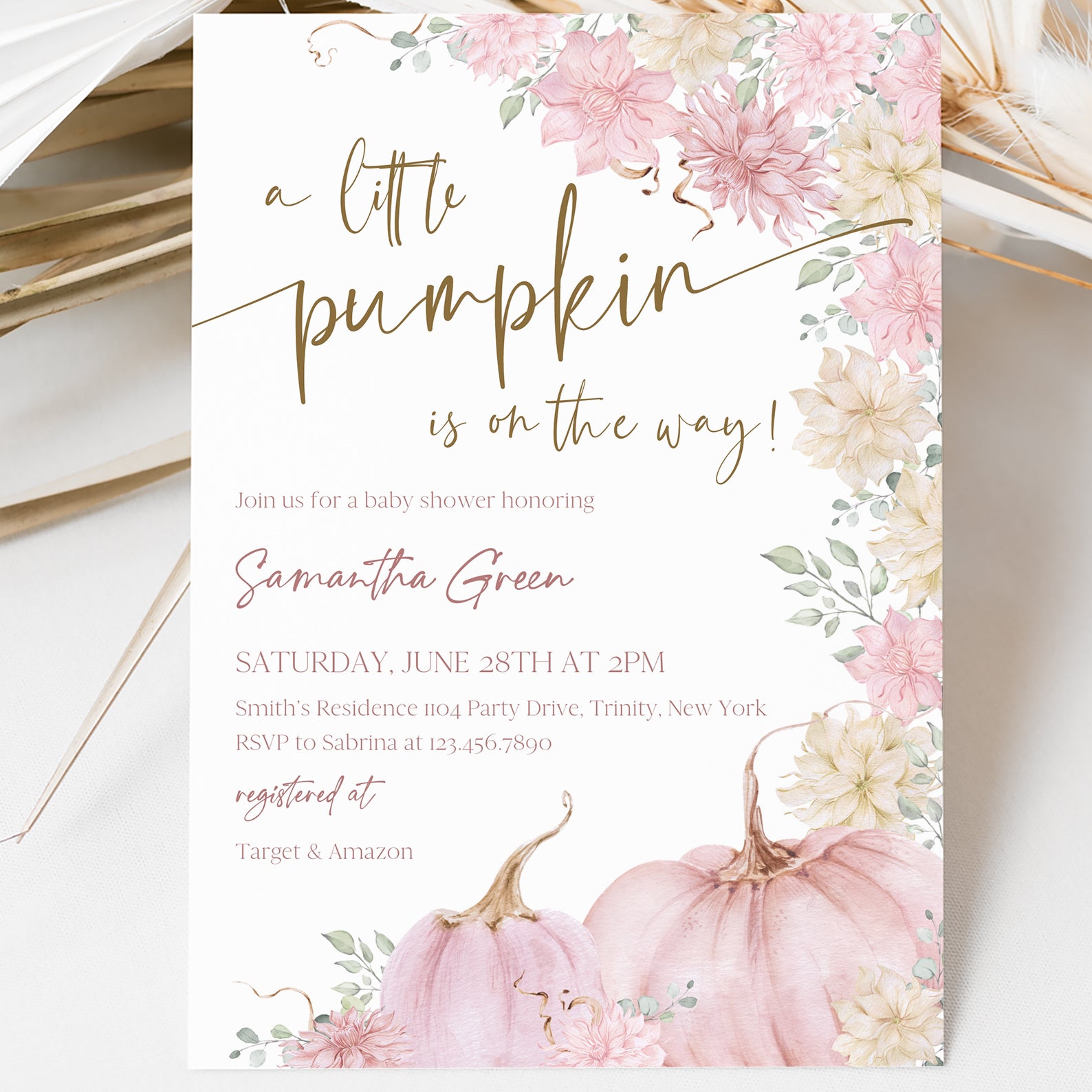 - Purchase this A Little Pumpkin Pink Floral Border Fall Baby Shower Invite template