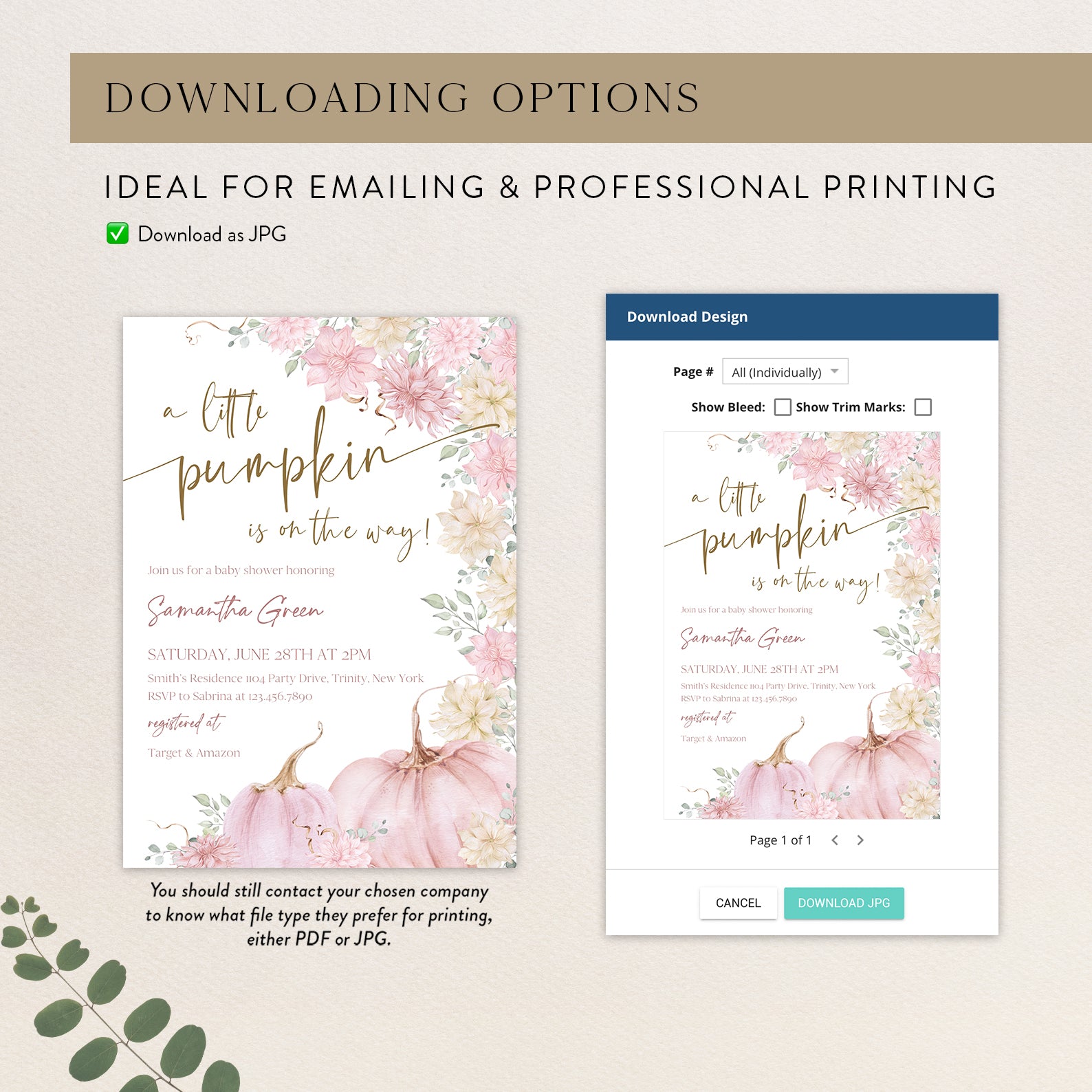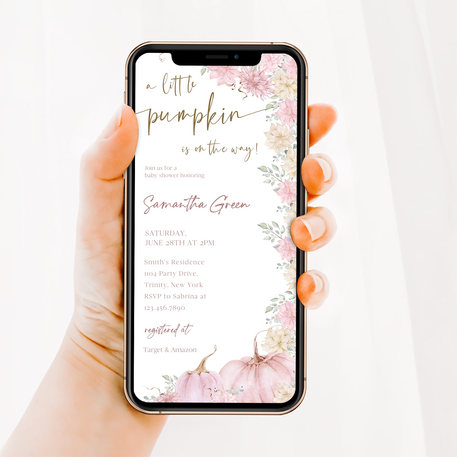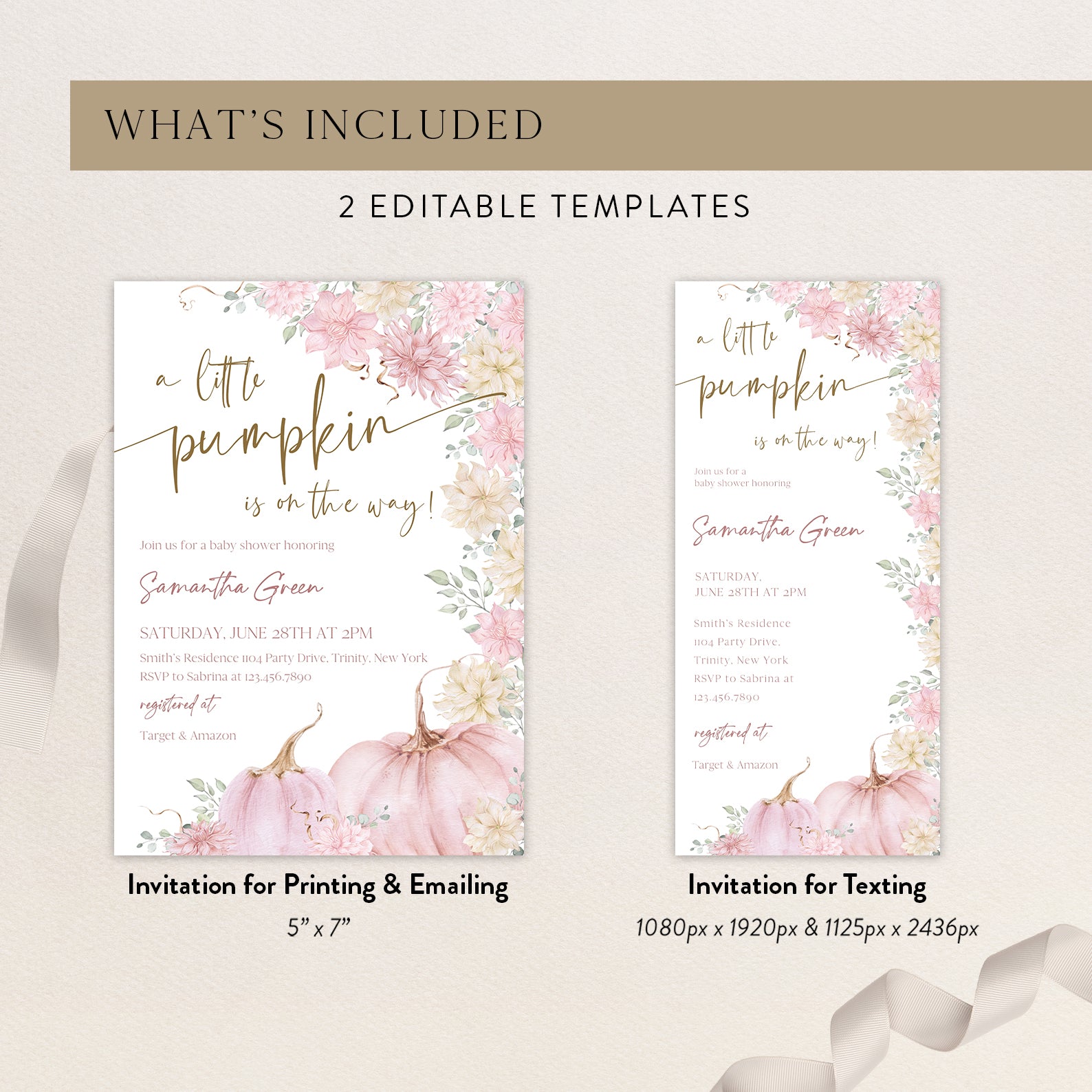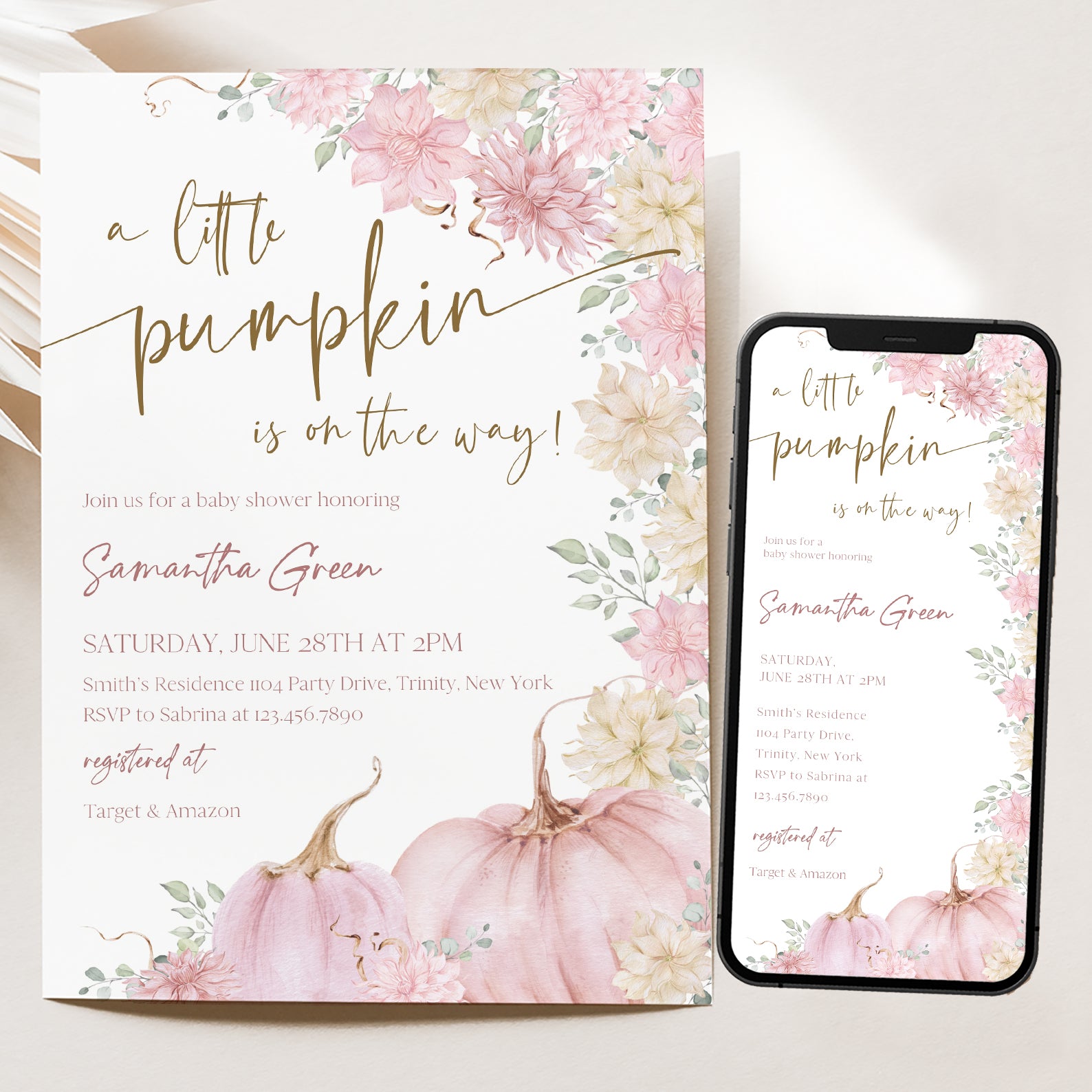 - Purchase this A Little Pumpkin Pink Floral Border Fall Baby Shower Invite template