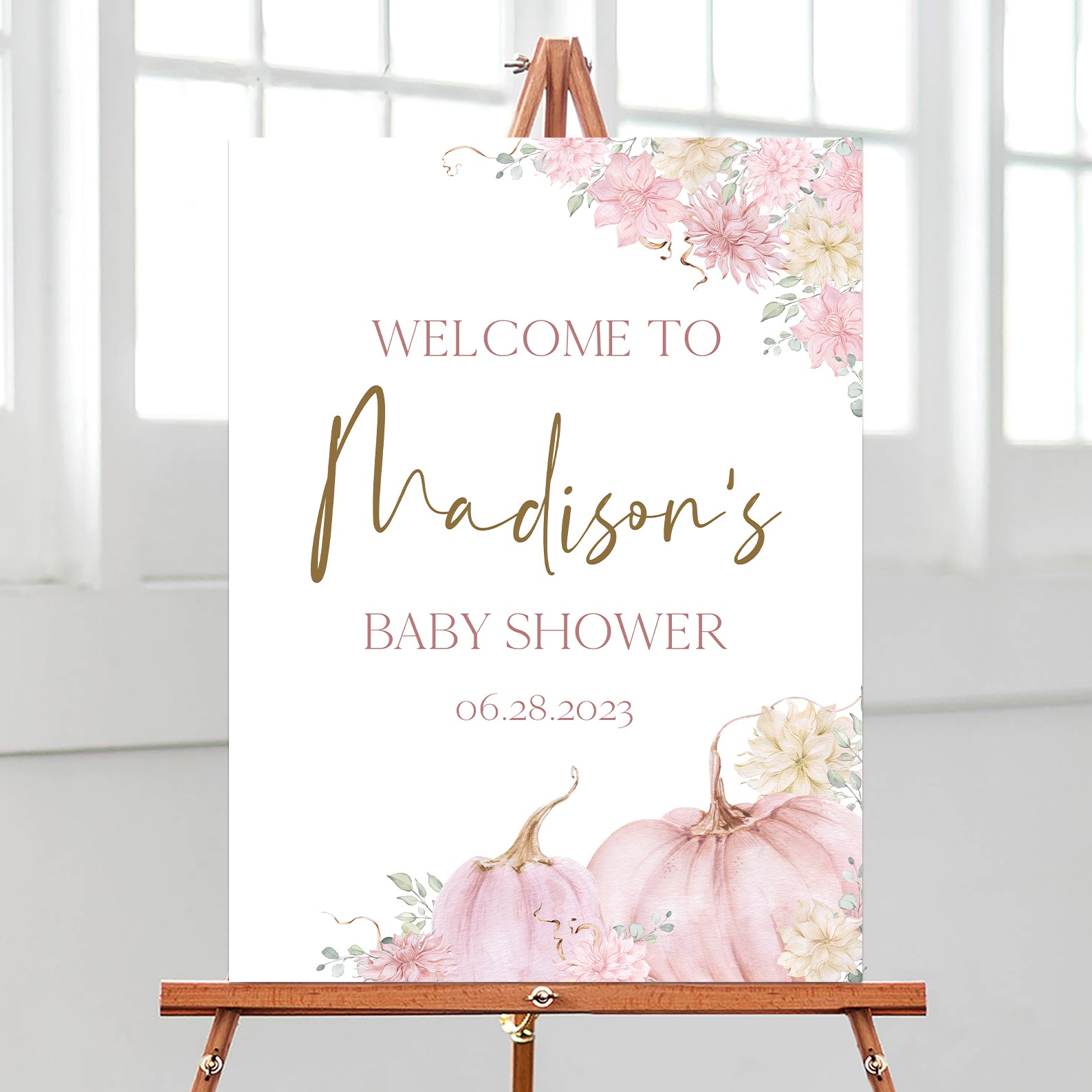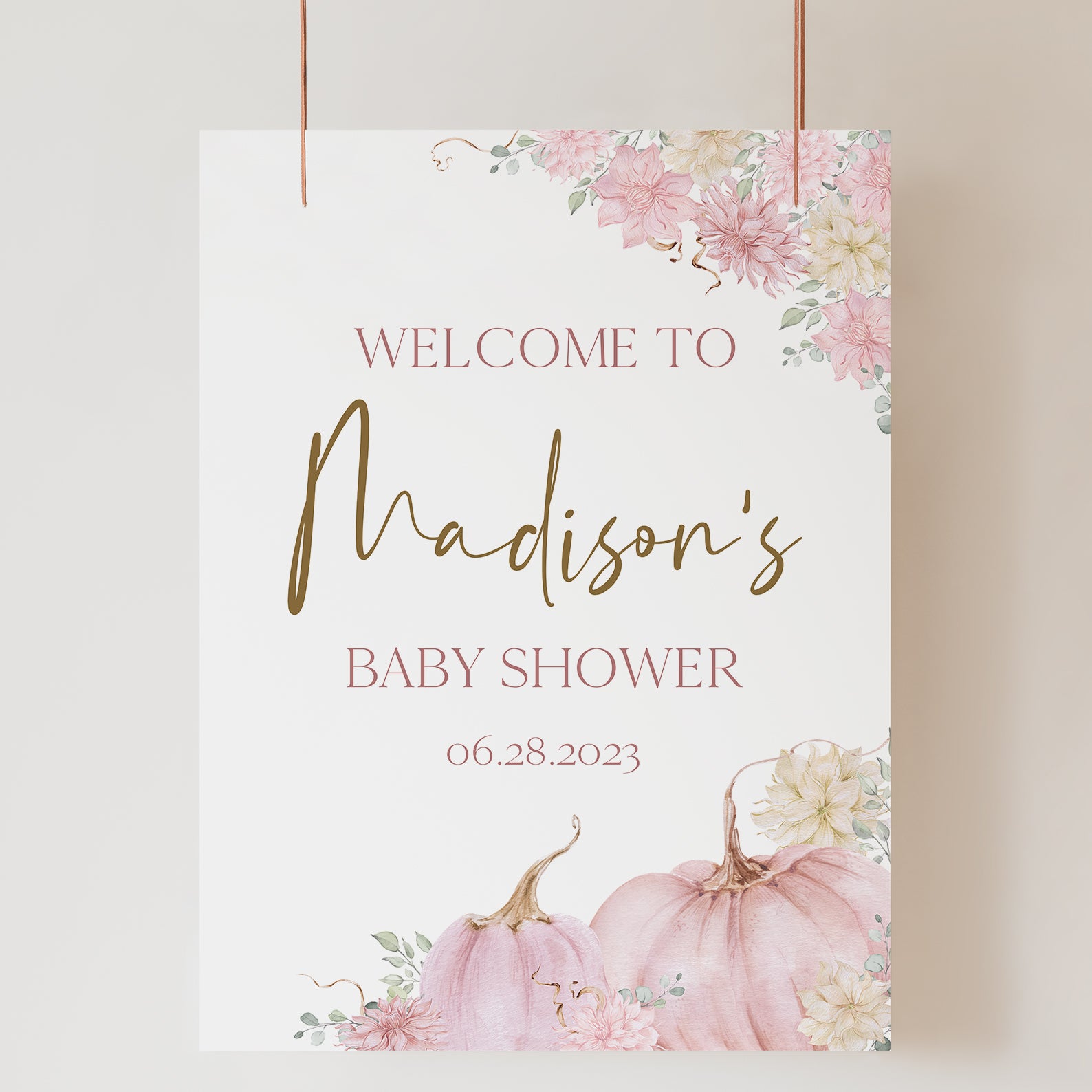 - Purchase this A Little Pumpkin Pink Floral Border Fall Baby Shower Welcome Sign template