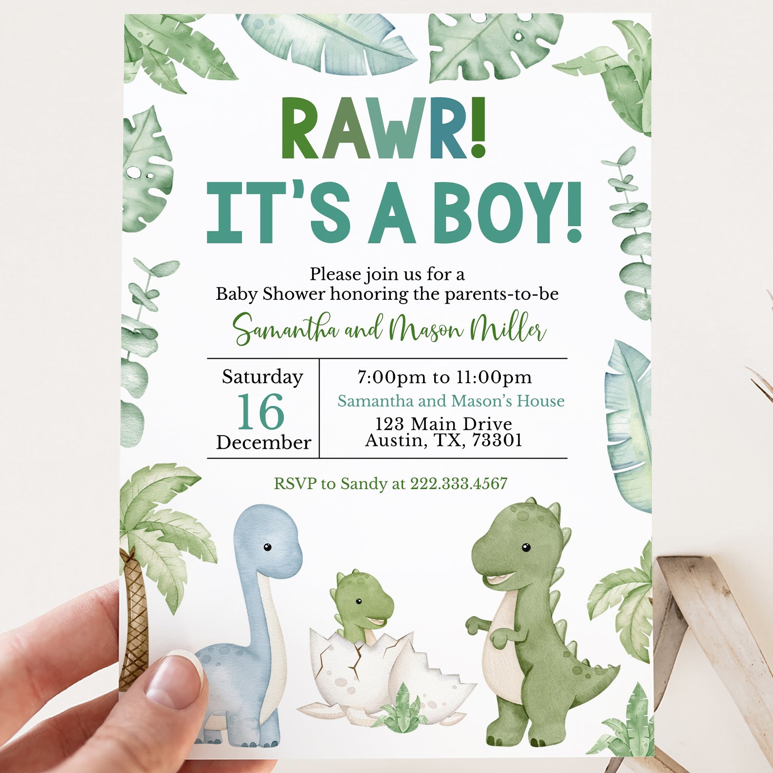 - Purchase this Dinosaur Baby Shower Digital Invite: Green Jungle Theme template