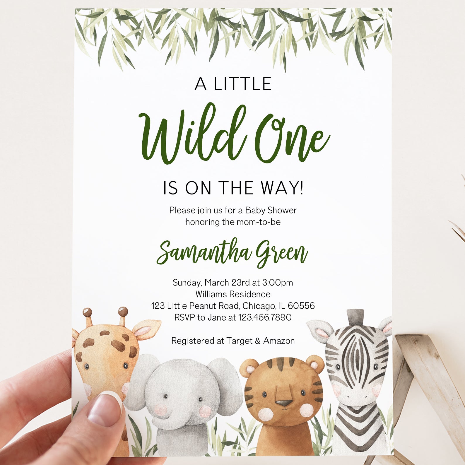 - Purchase this A Little Wild One Baby Shower Invitation with Safari Animals template