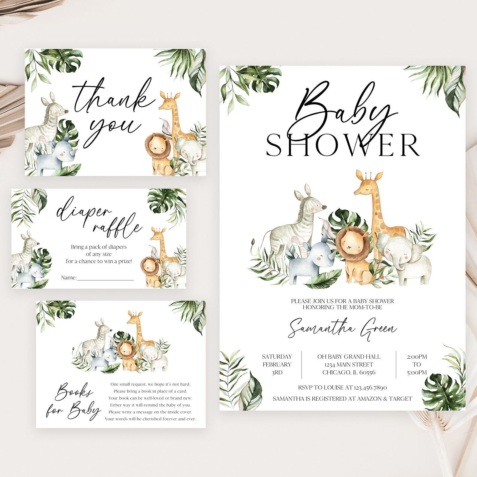 Jungle Adventure Baby Shower Invitation Bundle with Safari Animals