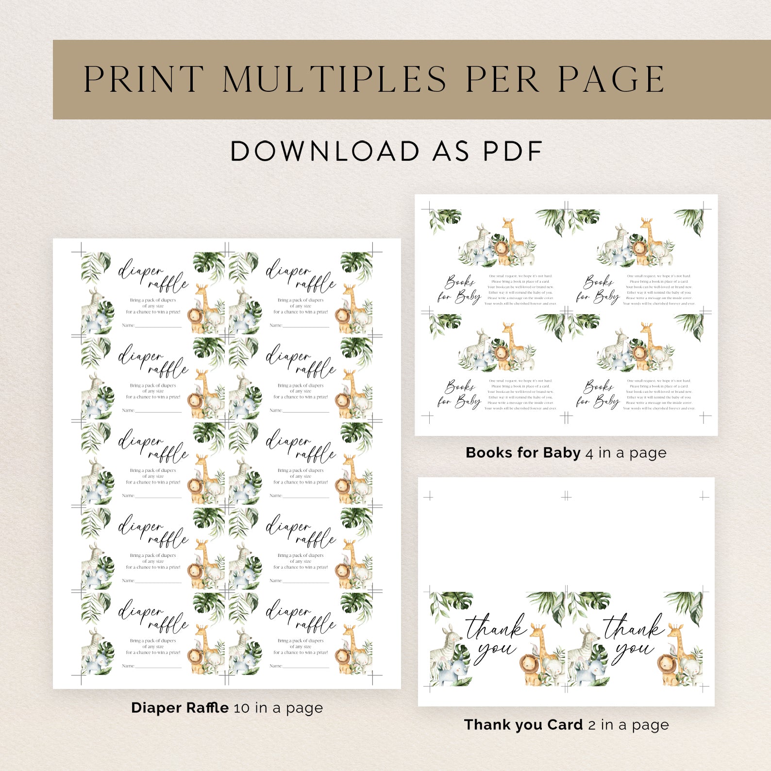 Set the tone for your baby shower with our Jungle Adventure Invitation Bundle! Designed with lush greenery and playful safari animals: zebra, rhino, lion, elephant, and giraffe. This bundle includes a digital invitation, mobile invite, diaper raffle, books for baby card, and thank you card. Easy to edit and share, it’s the perfect way to invite loved ones and celebrate your little one’s upcoming adventure in style.