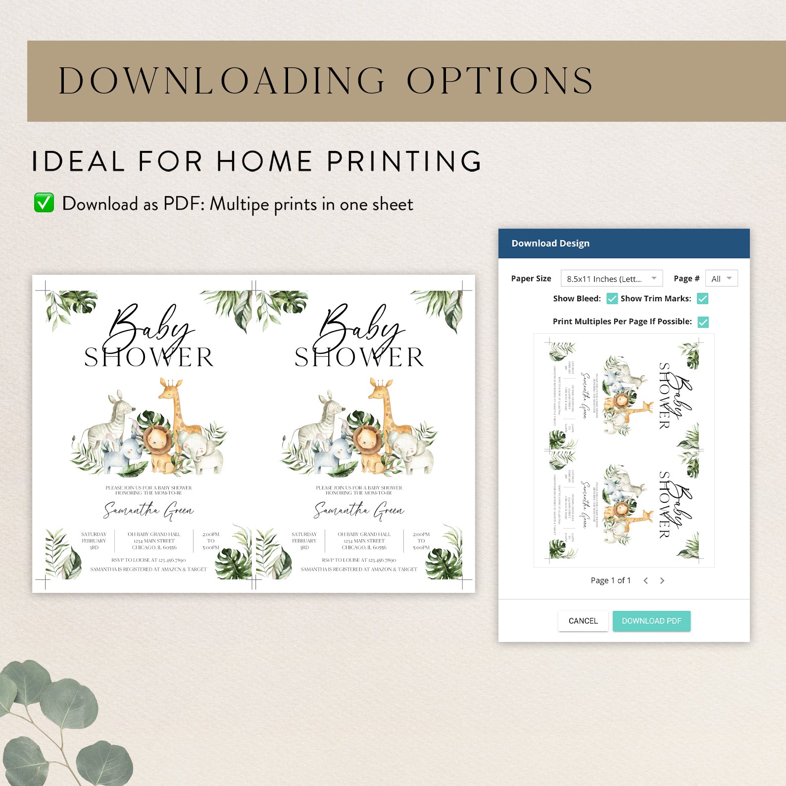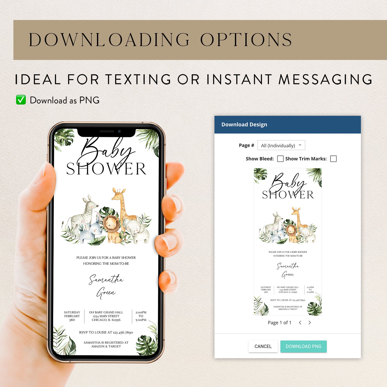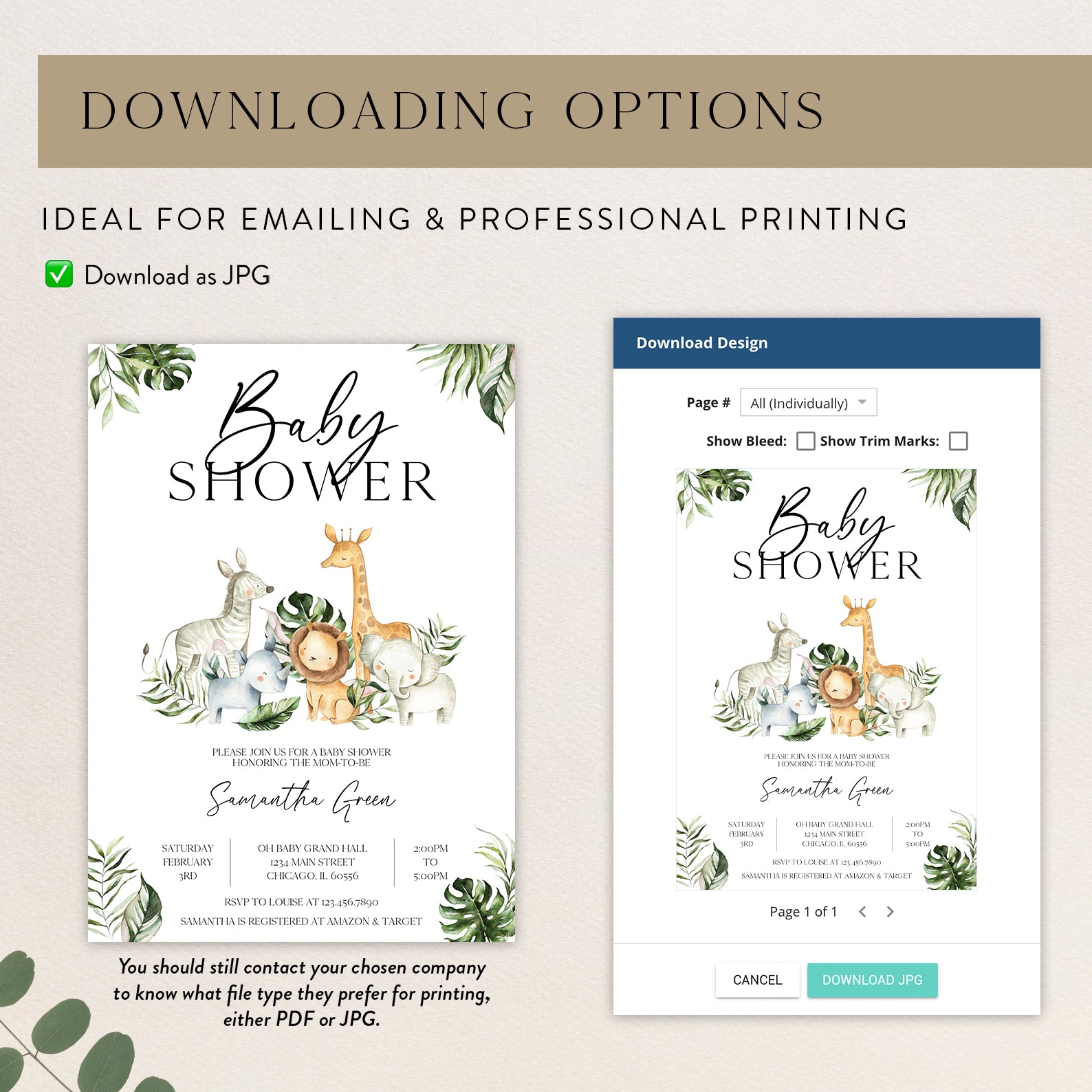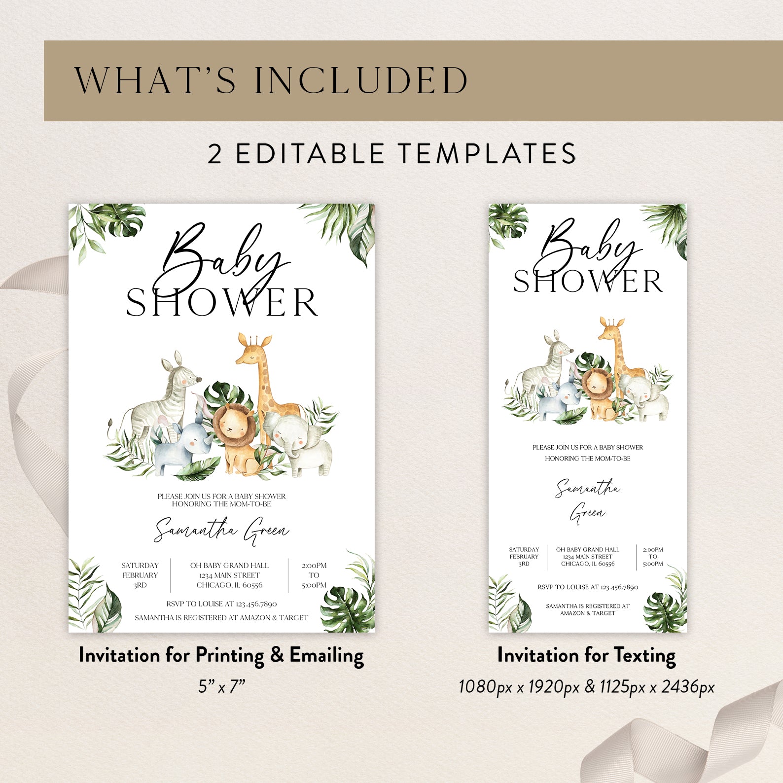 - Purchase this Jungle Adventure Baby Shower Invitation with Safari Animals template