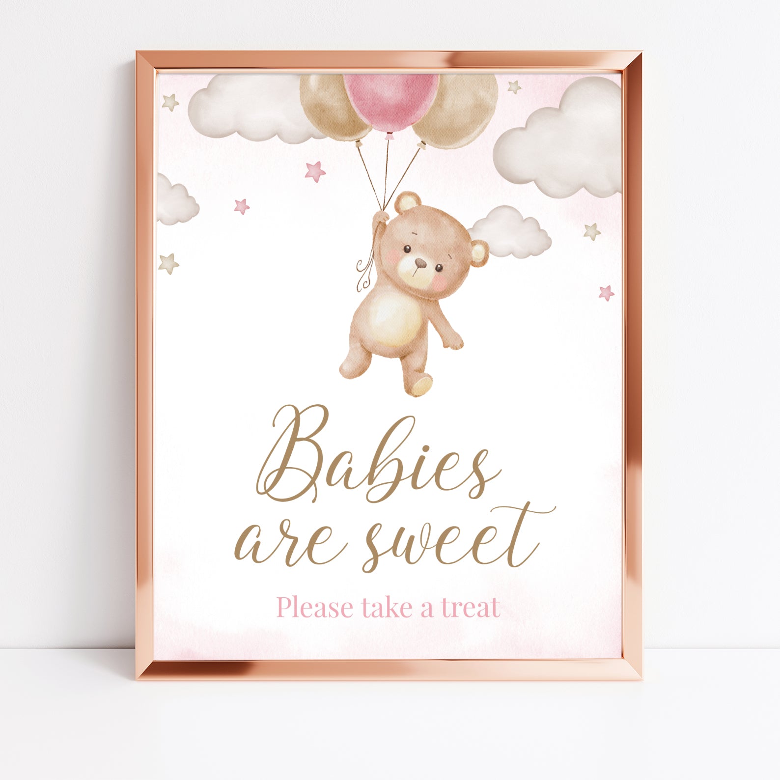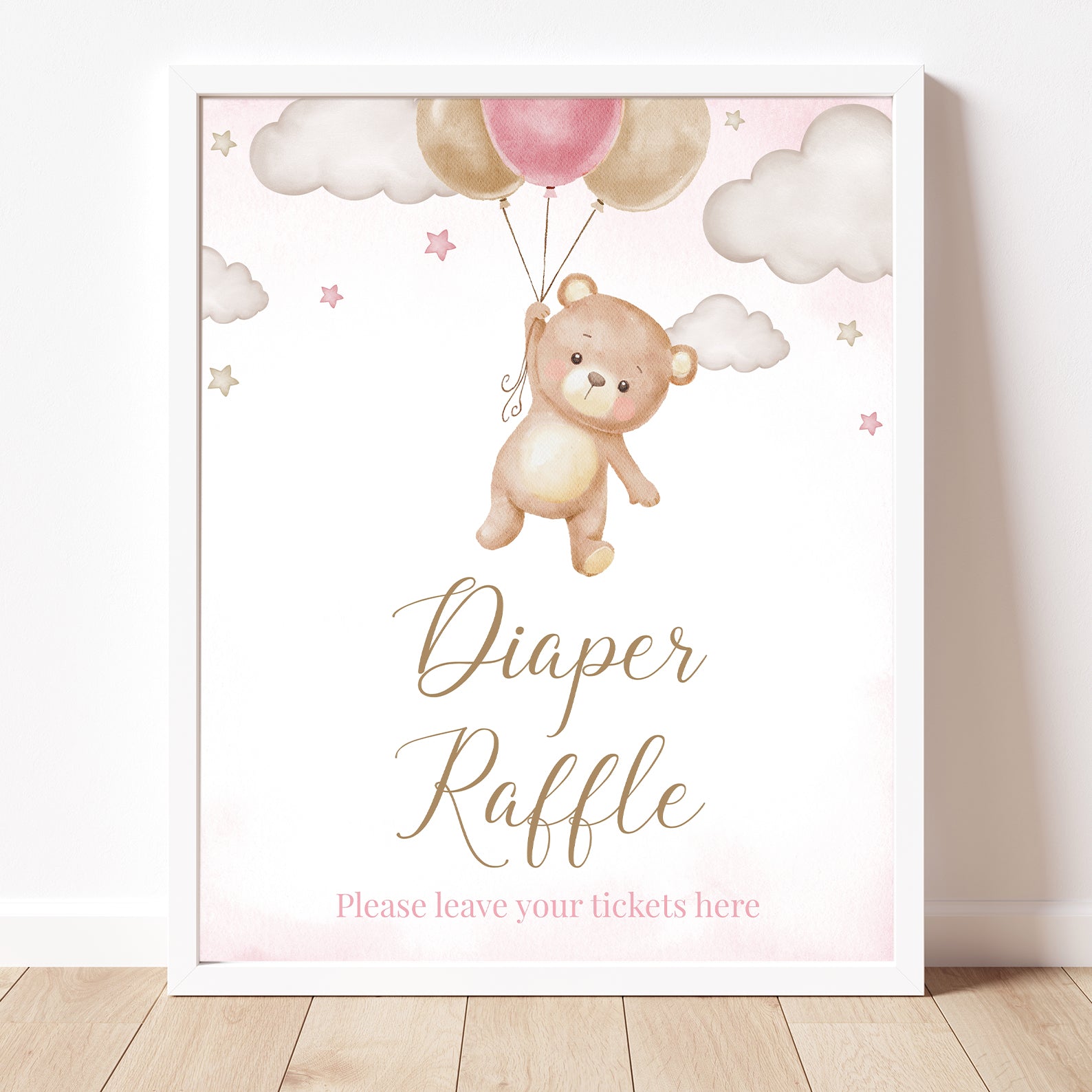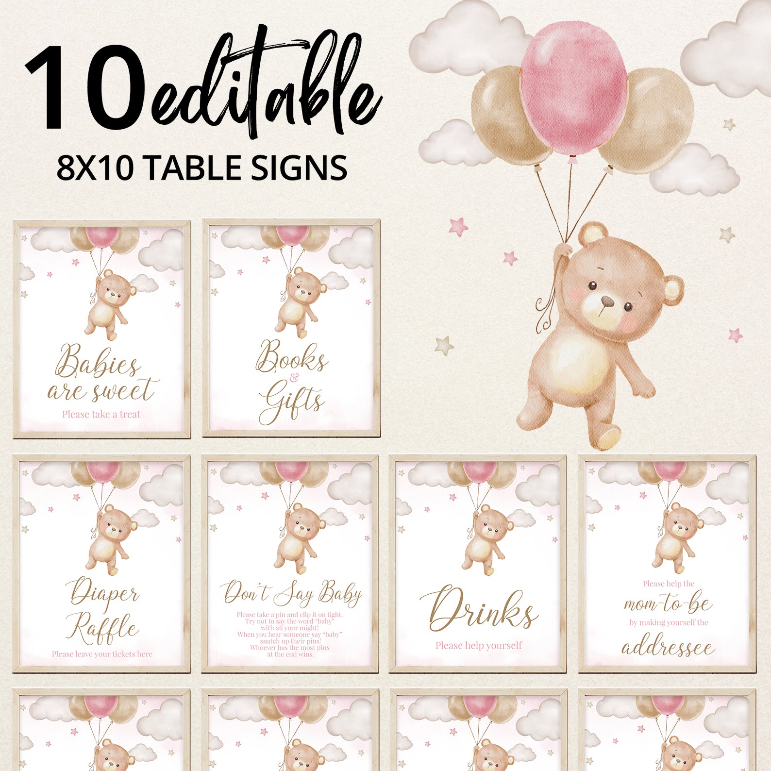 - Purchase this Flying Teddy Bear Pink Baby Shower Table Sign: We Can Bearly Wait template
