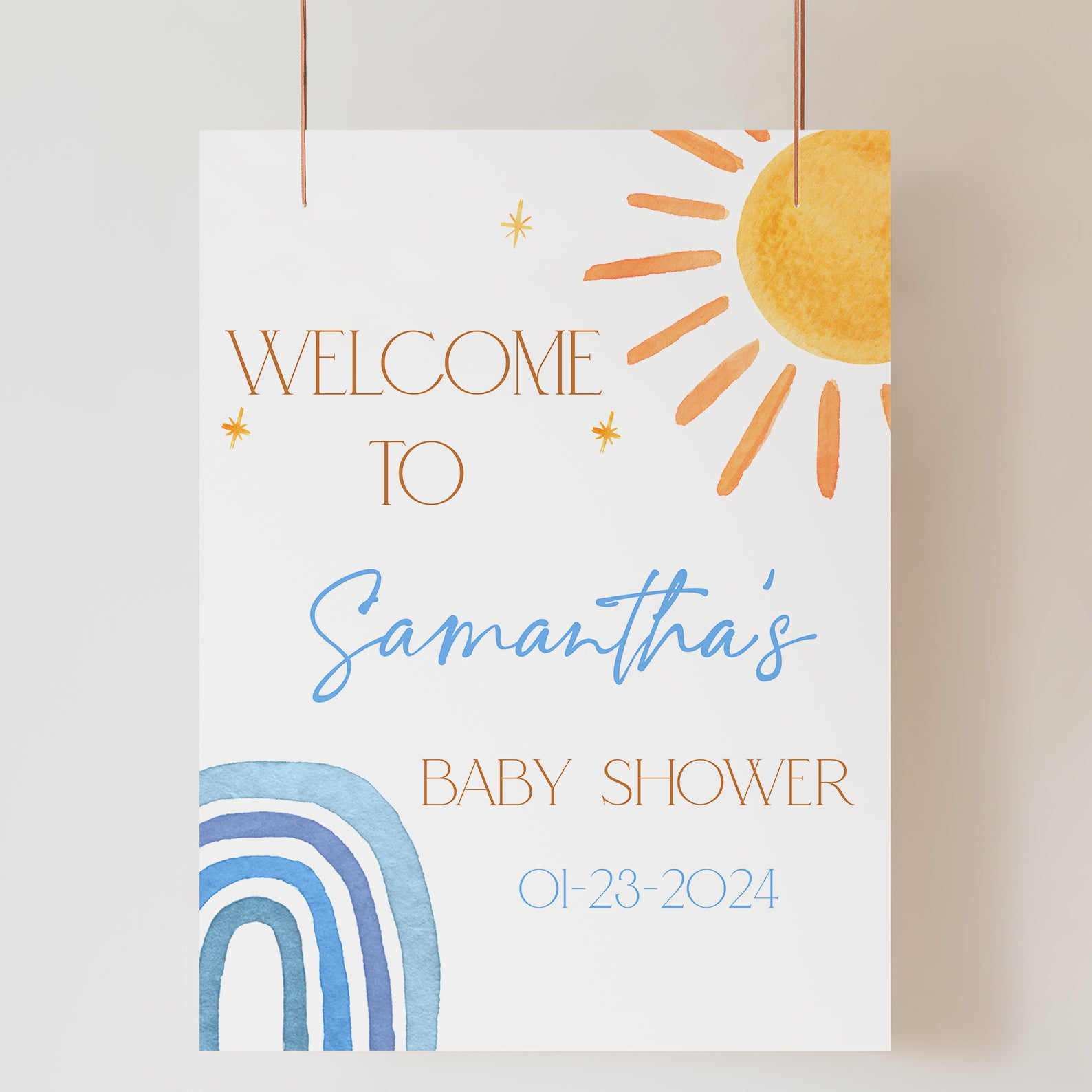 - Purchase this Here Comes the Sun Baby Shower Welcome Sign with Sun & Rainbow Design template