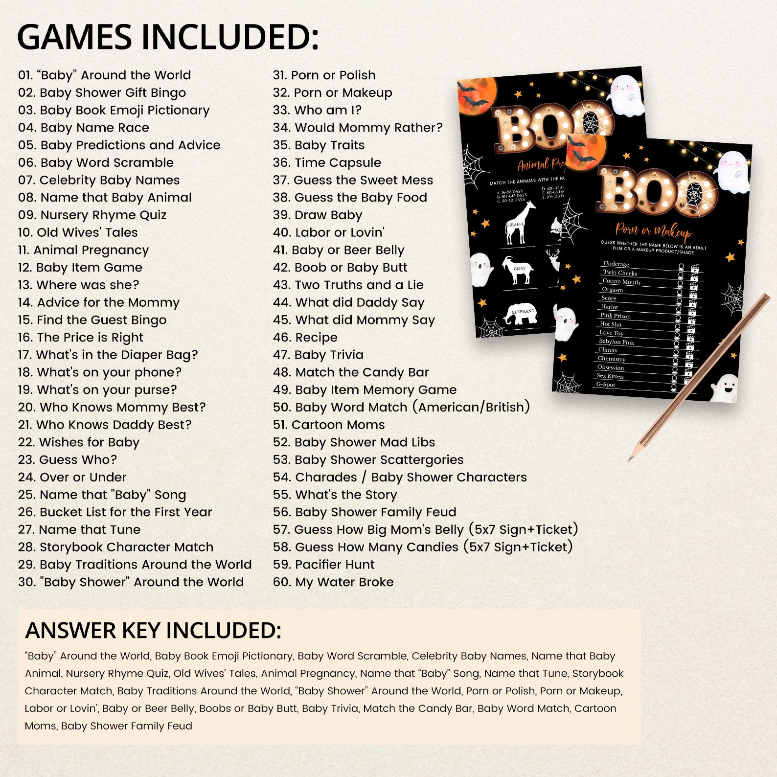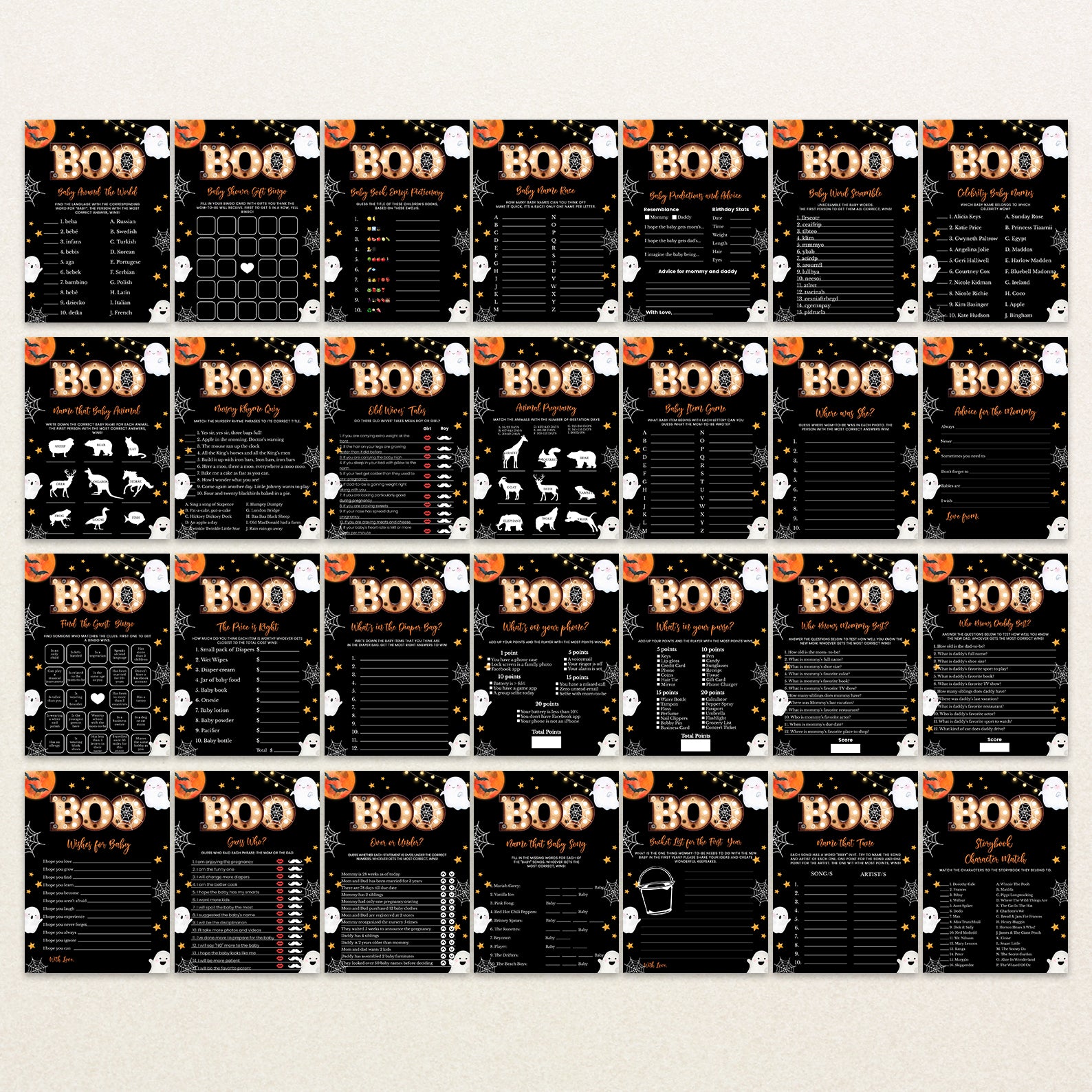 • 60 Editable Baby Shower Games Included