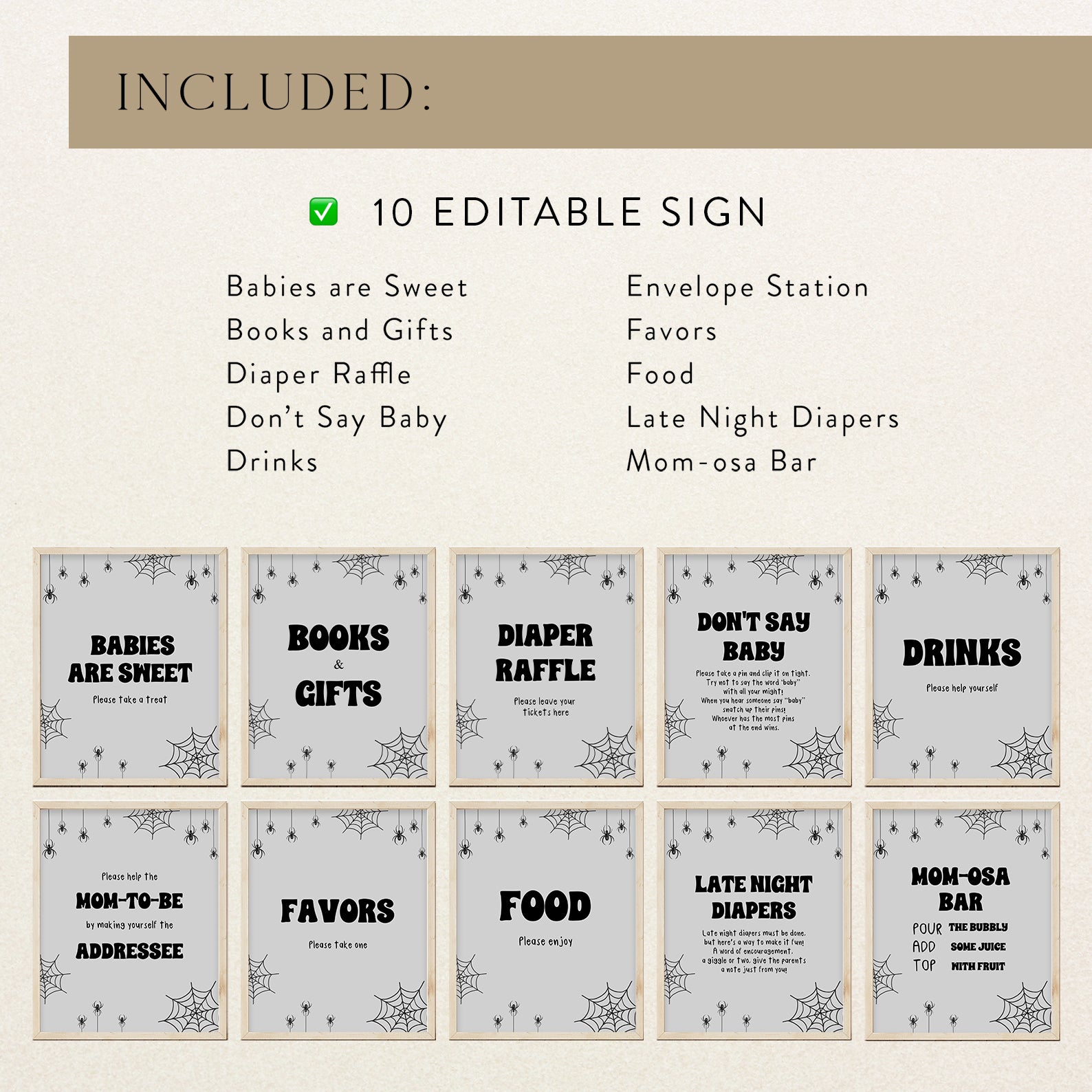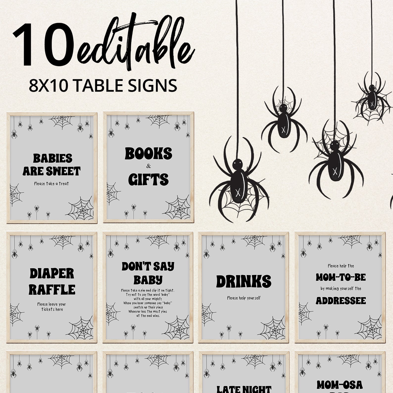 1. Purchase this Spooky Baby Shower Table Sign: Grey Background & Falling Spiders template