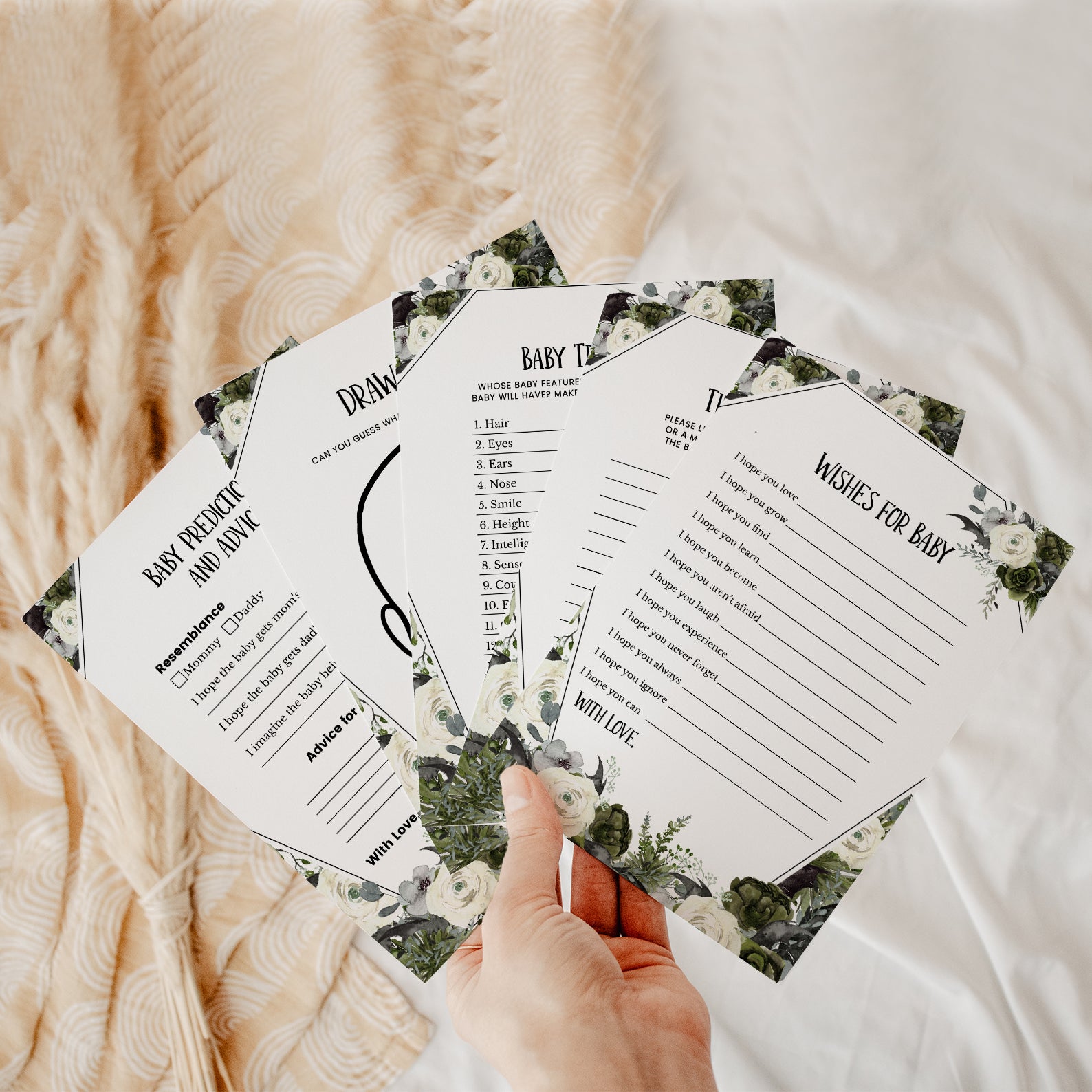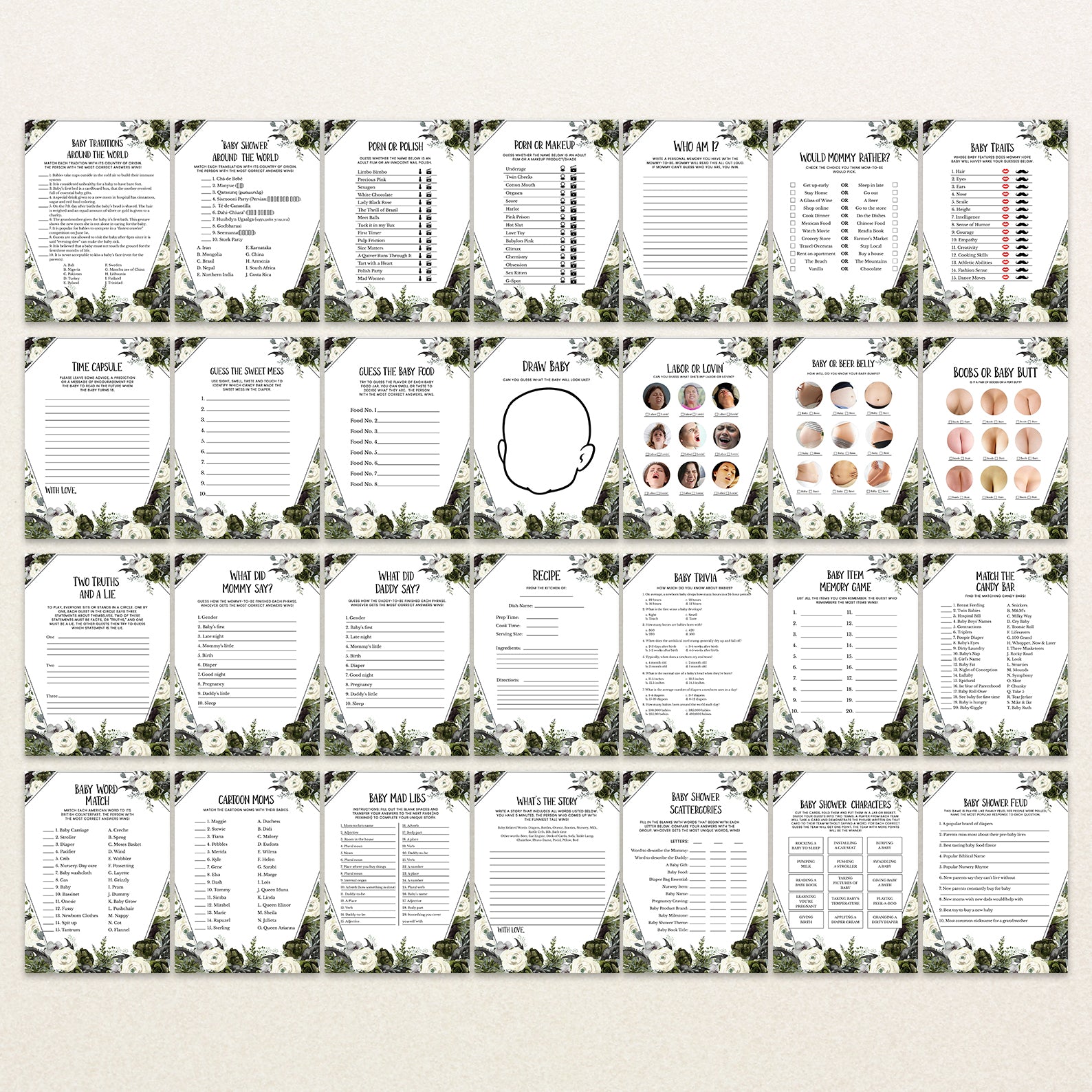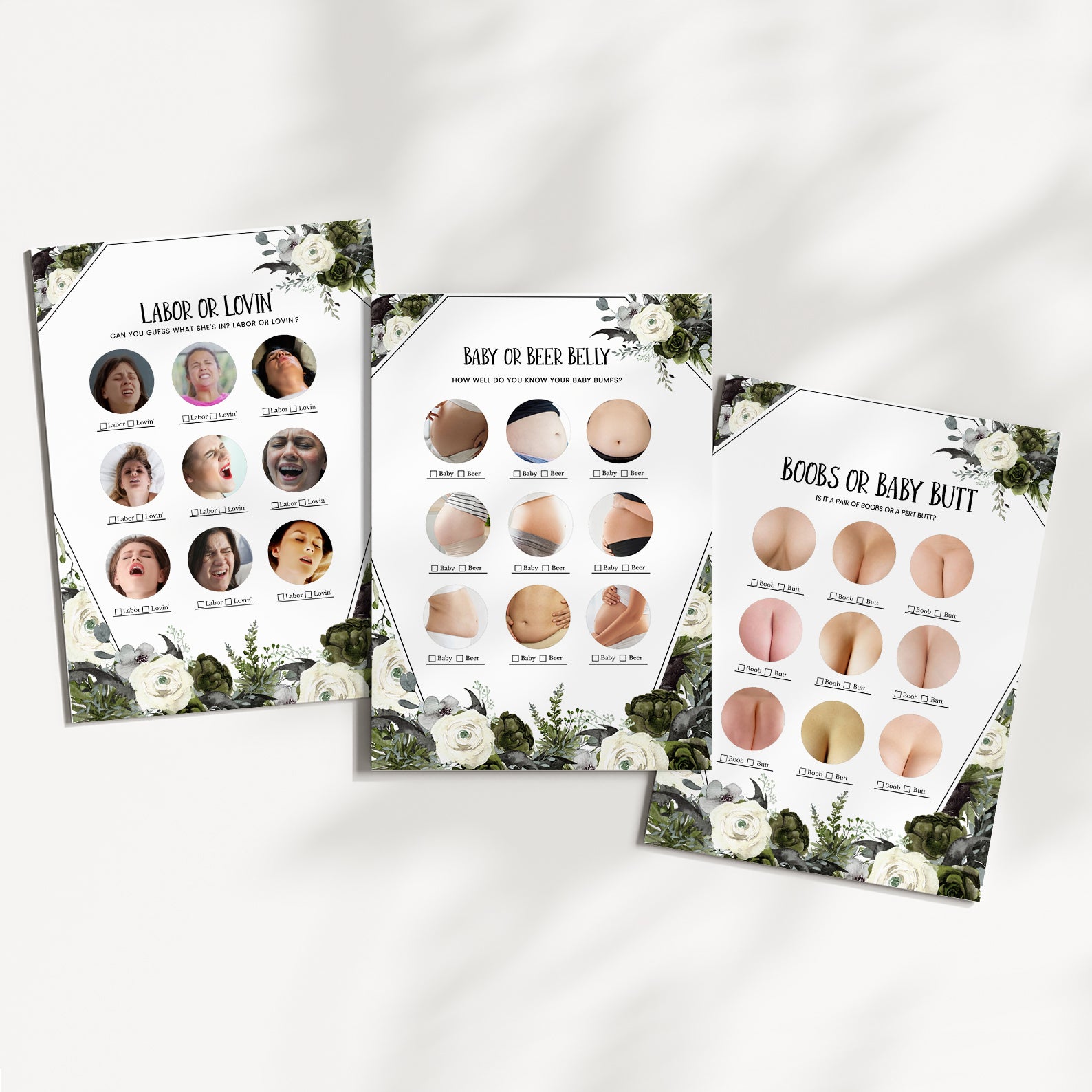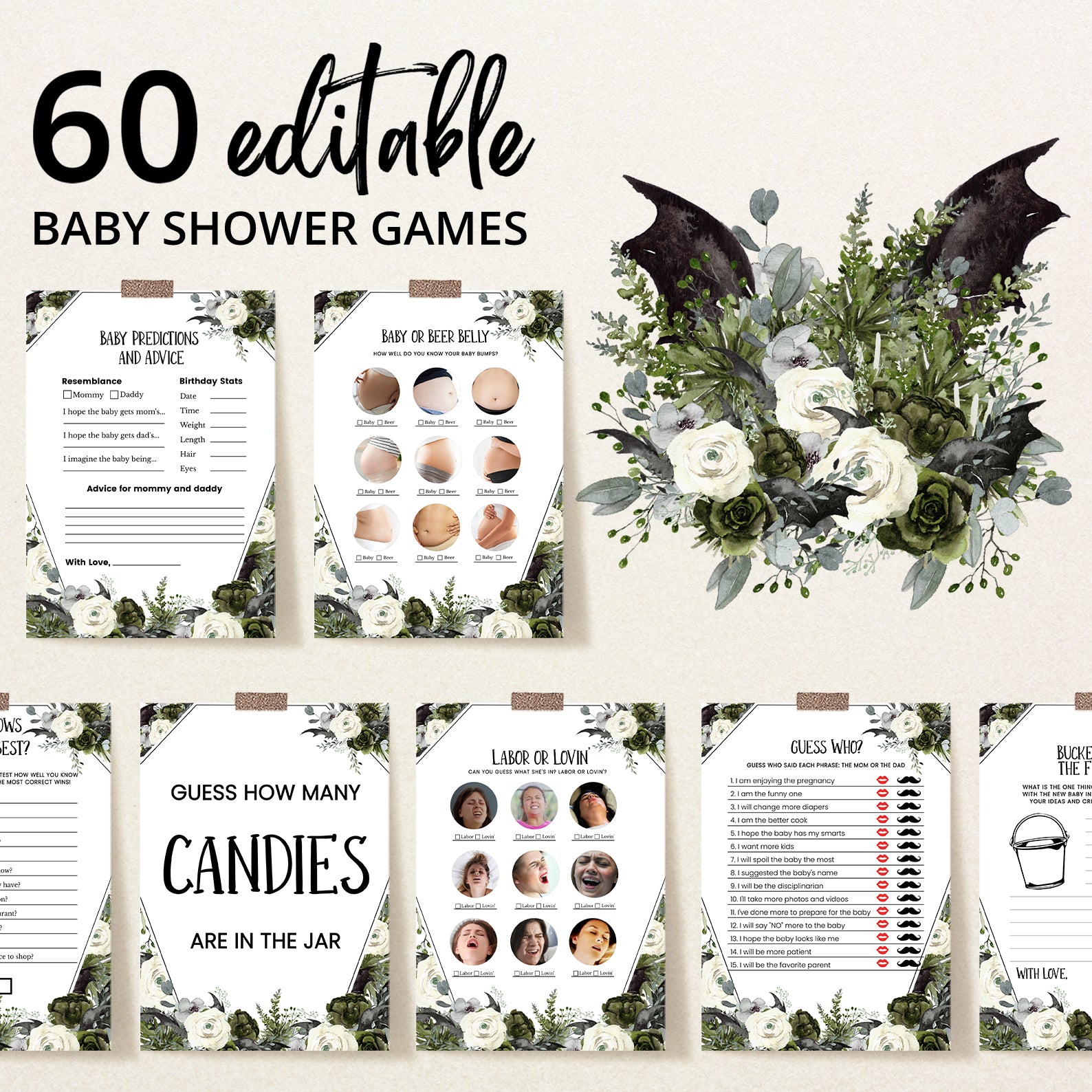 Kick off your Halloween baby shower with our “Oh Baby” Game Bundle, featuring editable games that perfectly capture the spooky charm of your celebration. Designed with a unique coffin shape and adorned with whimsical bats, lush green roses, and off-white florals, this bundle strikes a delightful balance between eerie and elegant. Each game is crafted to enhance your event’s festive atmosphere, ensuring a memorable and engaging experience for your guests. Add a touch of creative flair to your baby shower with this enchanting bundle, designed to bring both fun and a bit of spooky magic to your celebration!