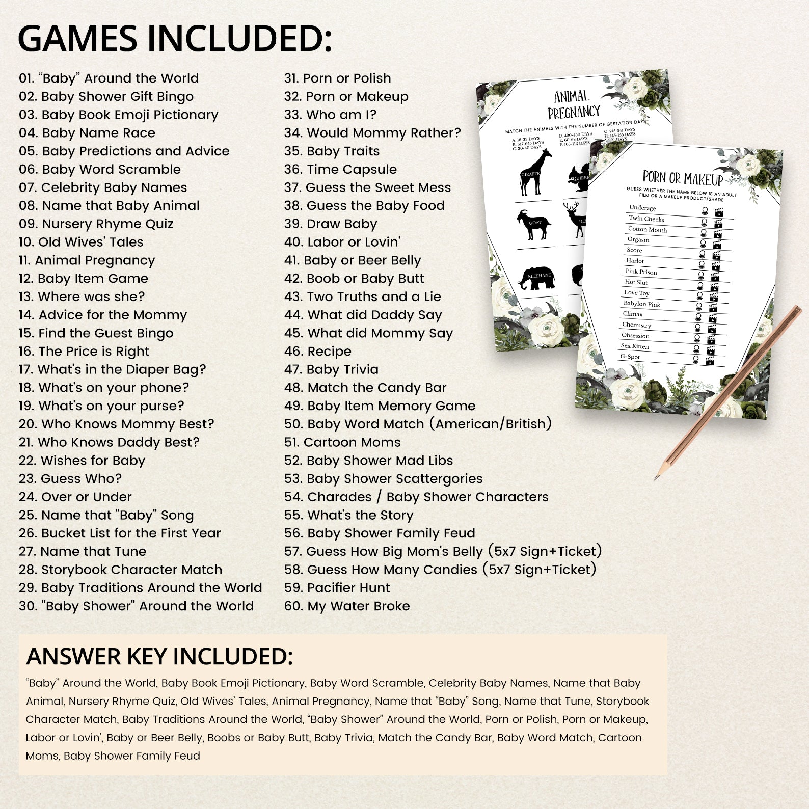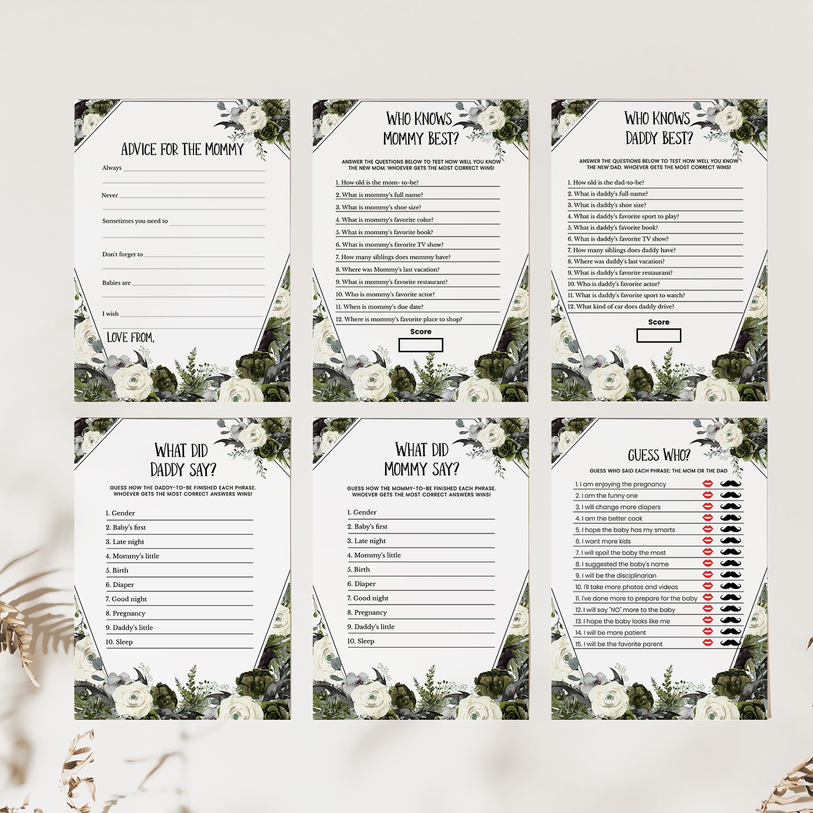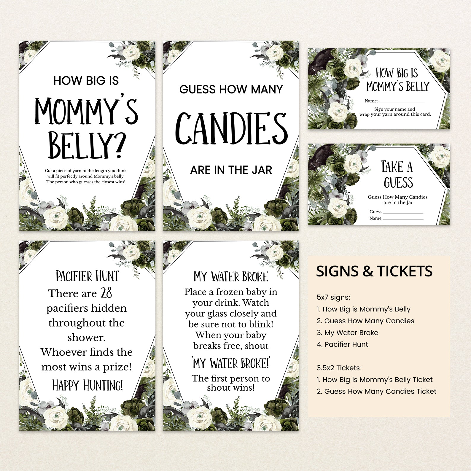 Coffin-Shaped Baby Shower Game Bundle: Bats & Green Roses