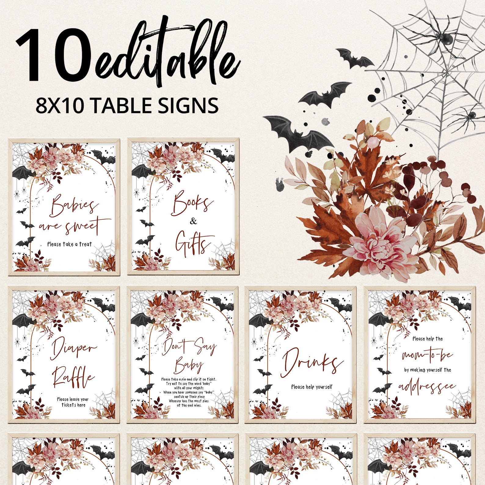 - Purchase this Little Boo's Halloween Table Sign: Spiders & Autumn Florals template