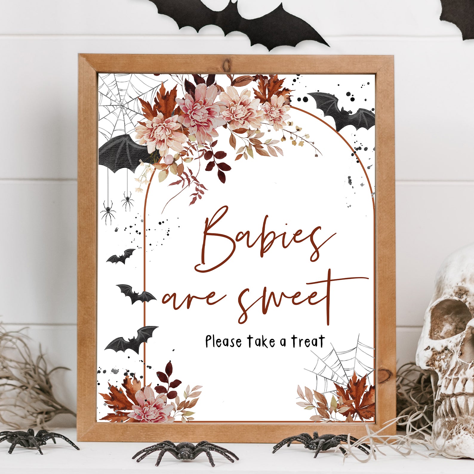 Welcome your guests to a festive celebration with this delightful Halloween table sign! Perfect for setting the scene at your baby shower, it features: