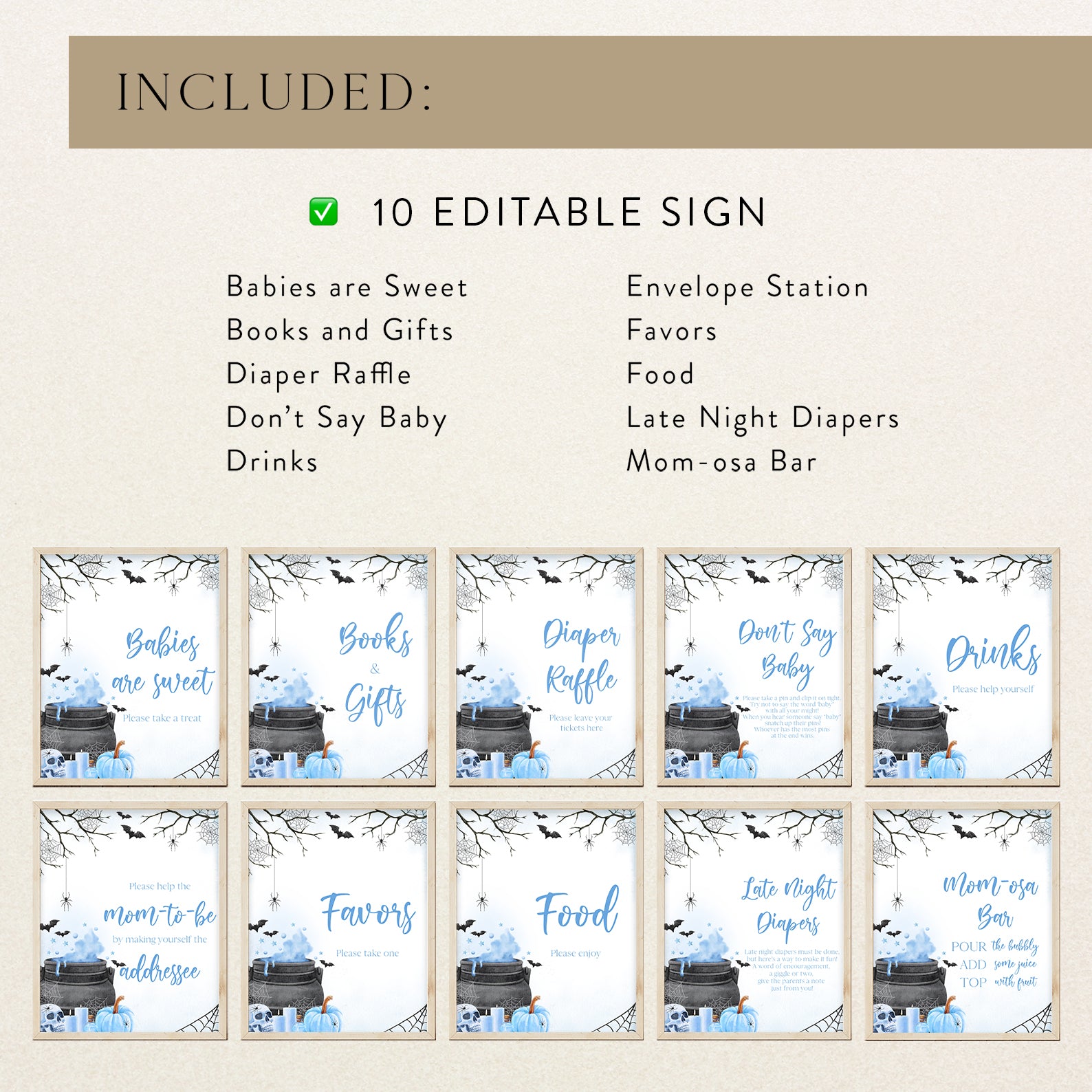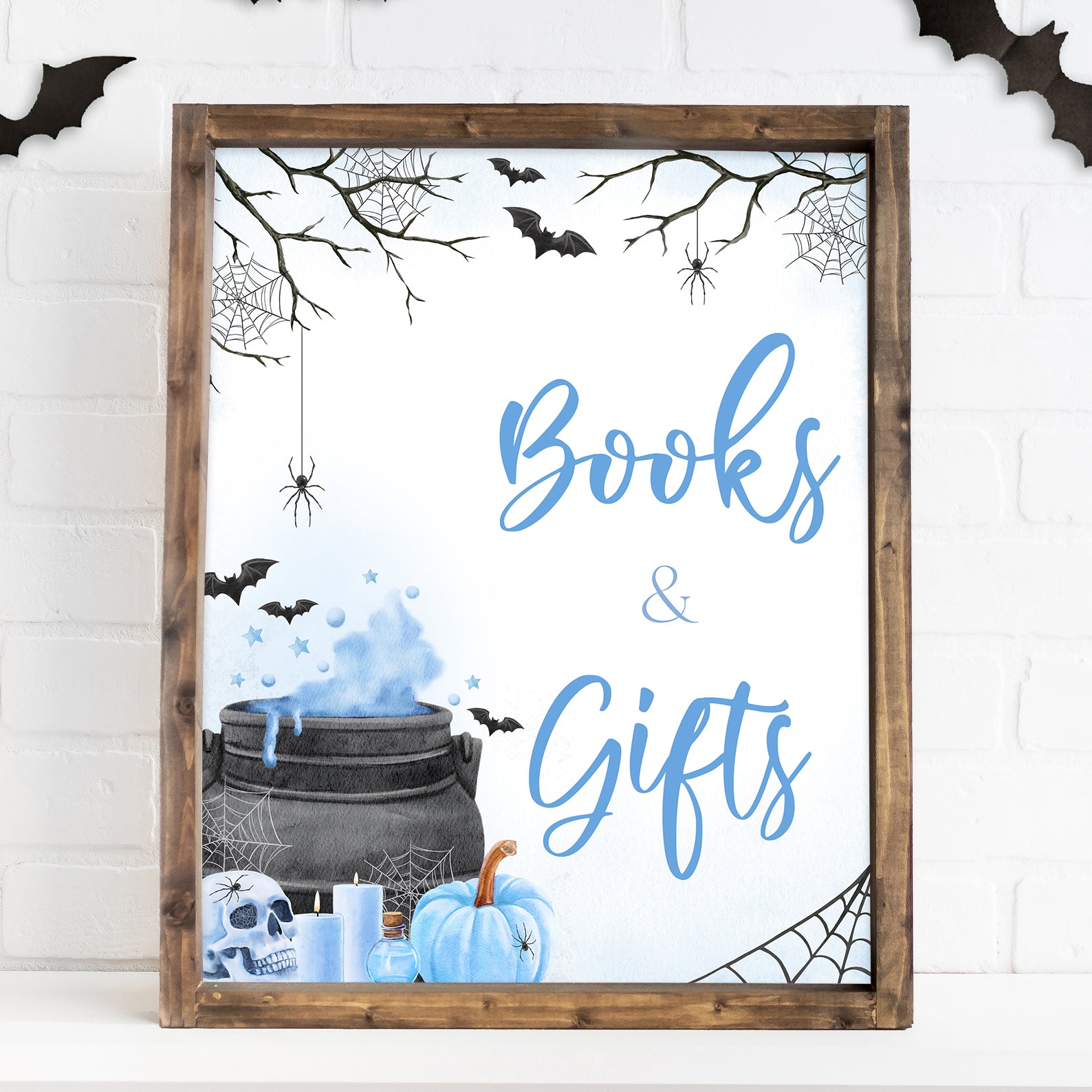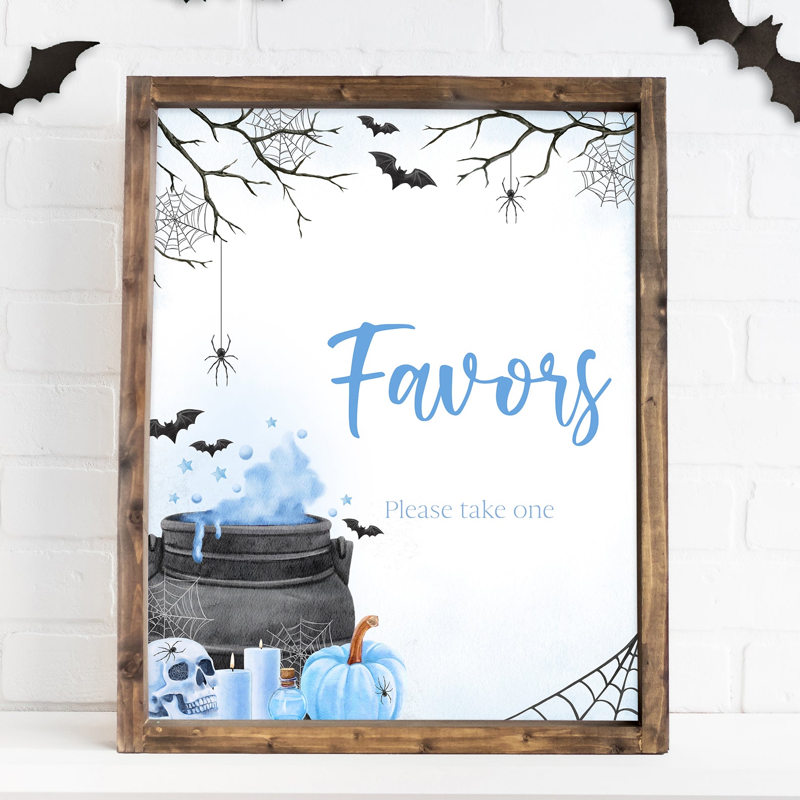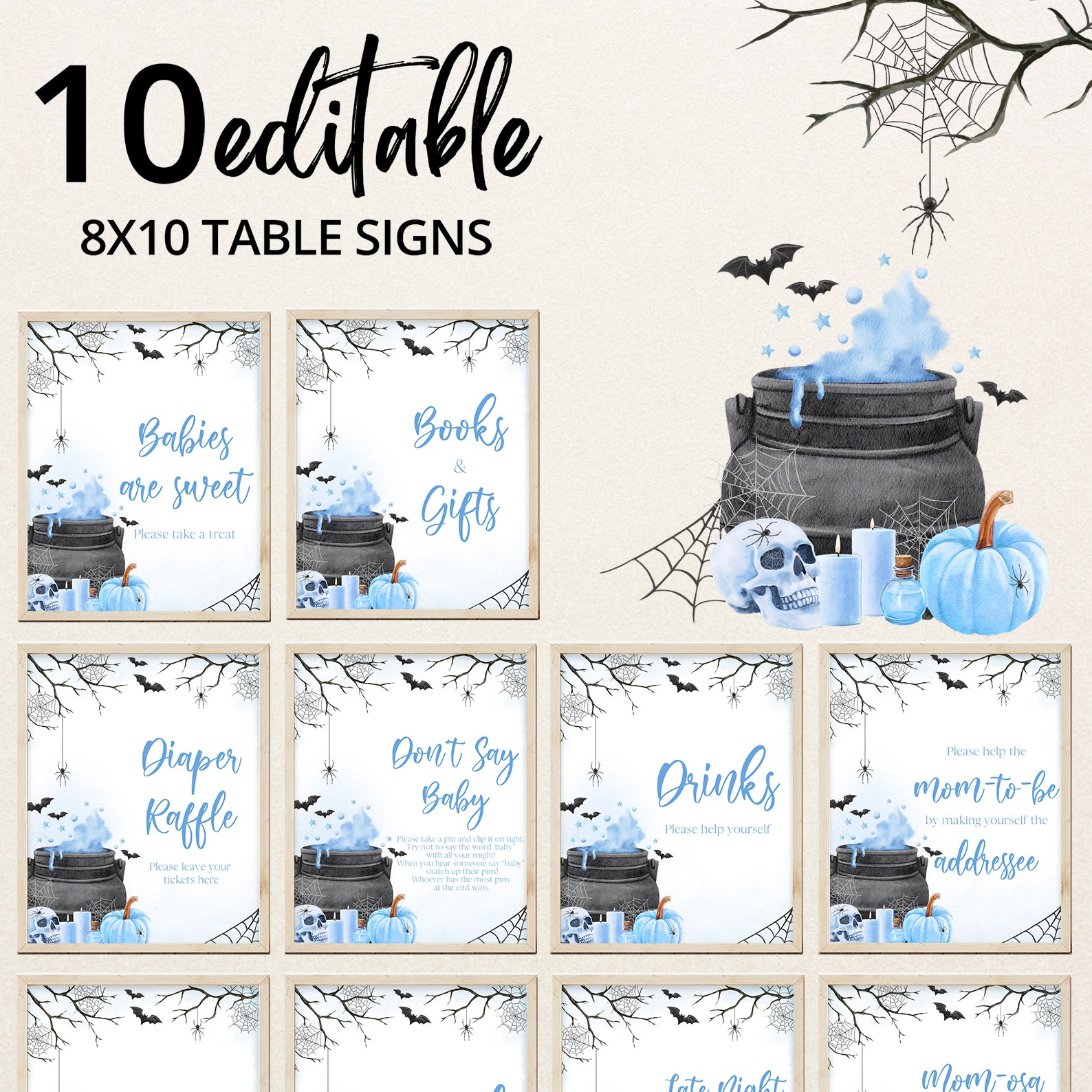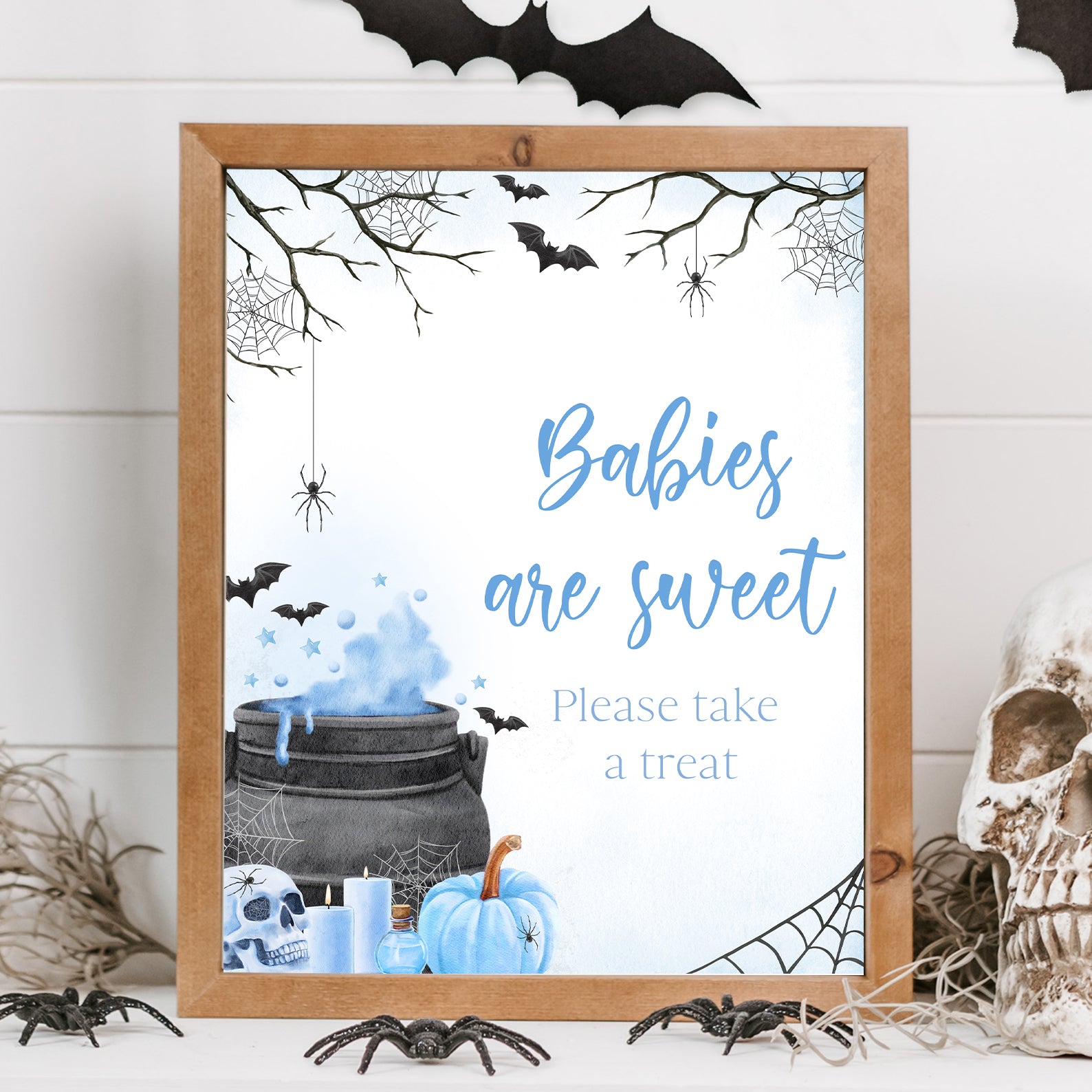 - Purchase this Blue Baby Potion Brewing Table Sign: Spooky Bats, Webs, & Pumpkins template