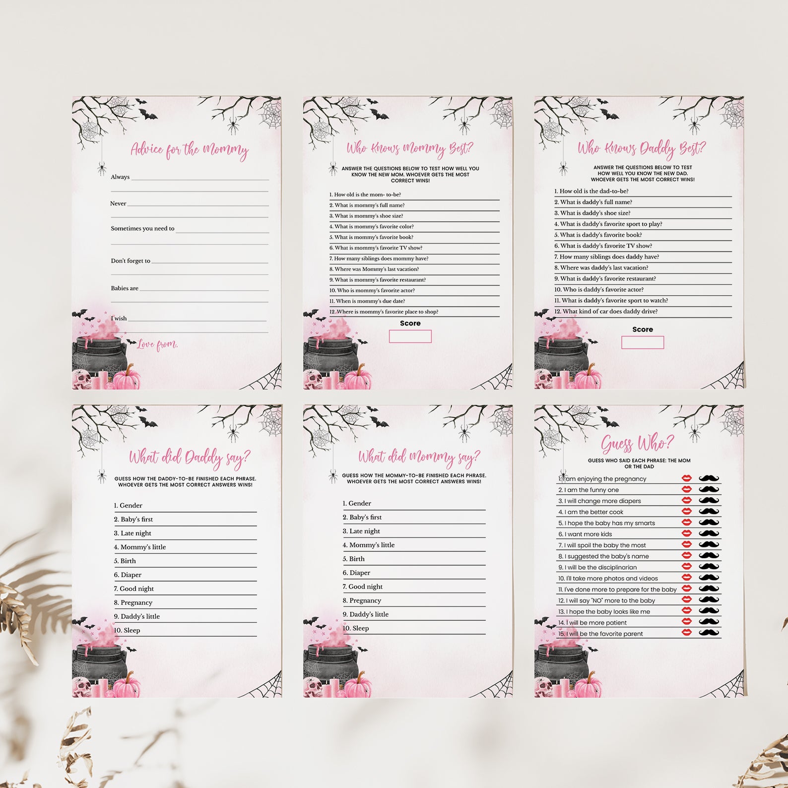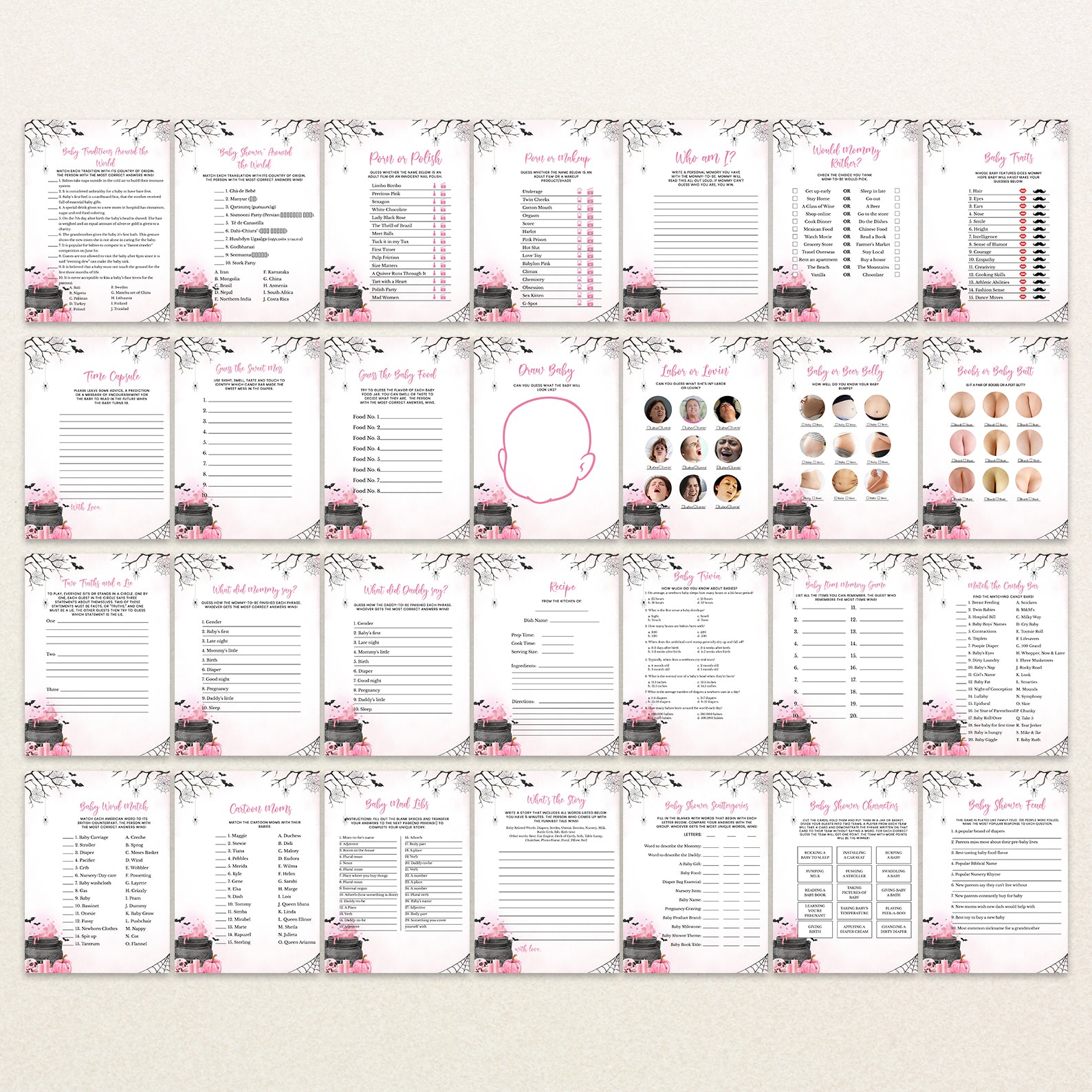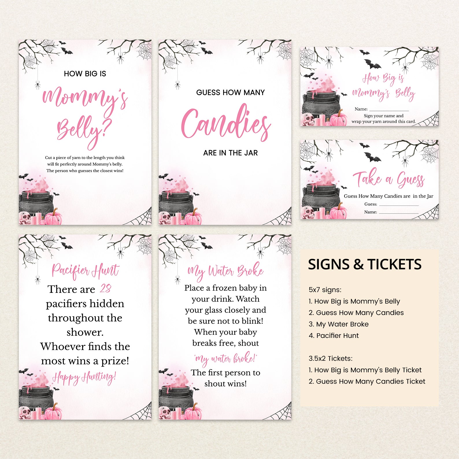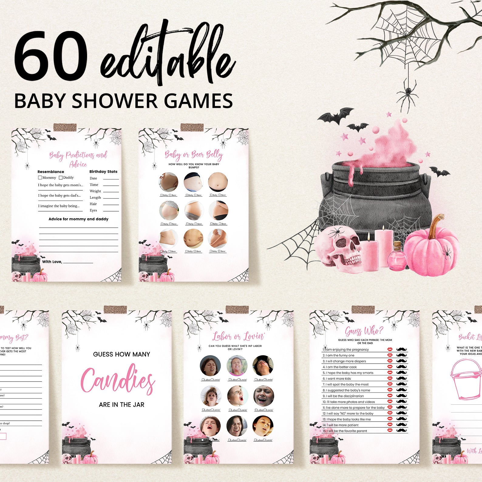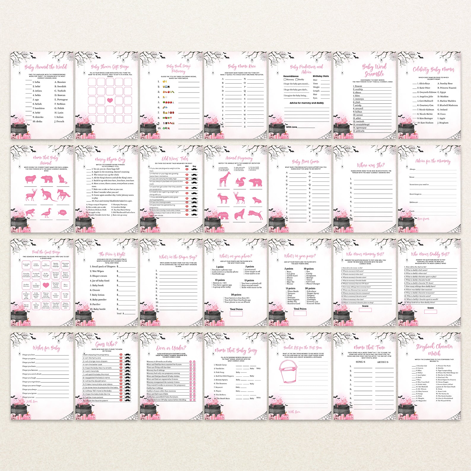 1. Purchase this Pink Baby Potion Brewing Game Bundle: Spooky Bats, Webs, & Pumpkins template