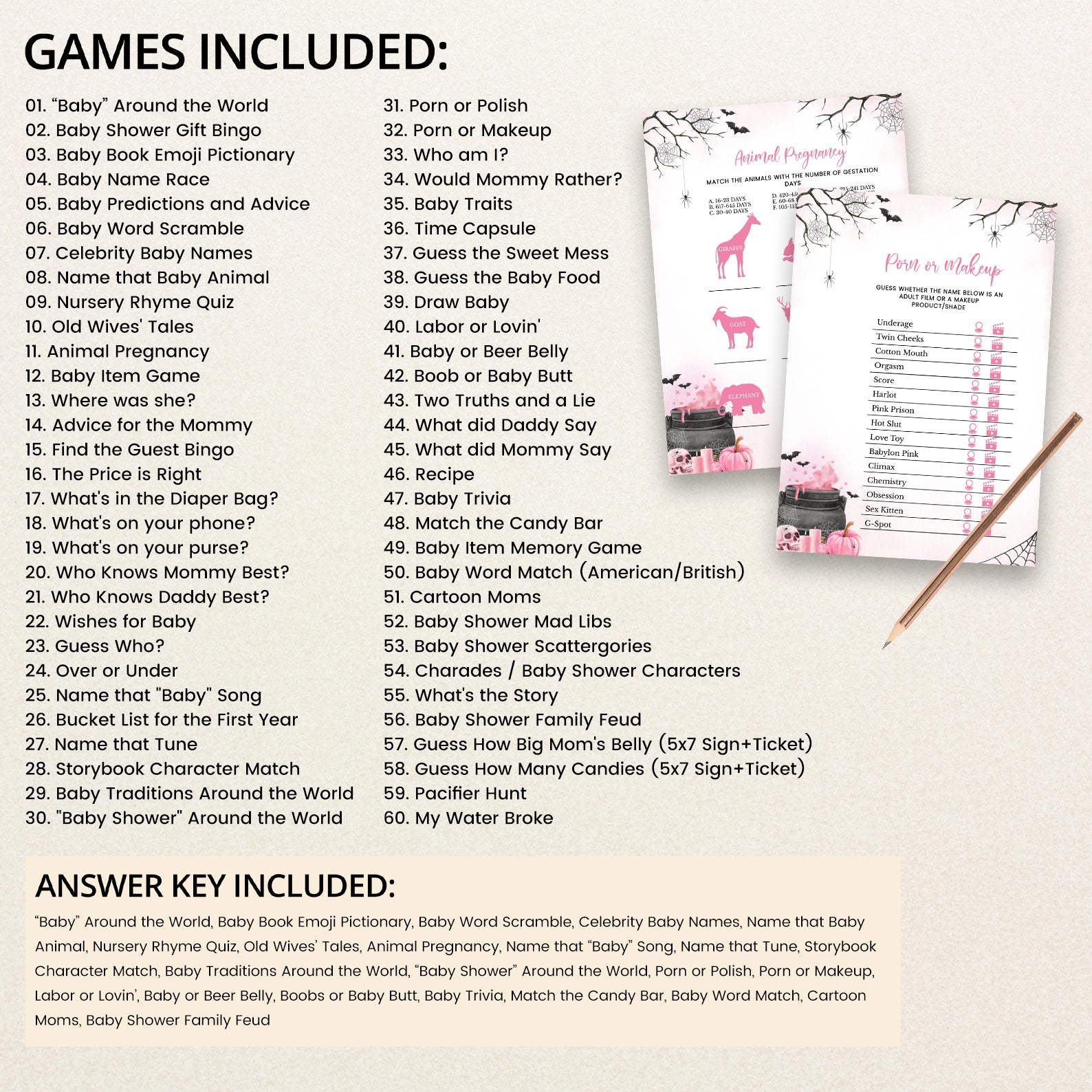 • 60 Editable Baby Shower Games Included