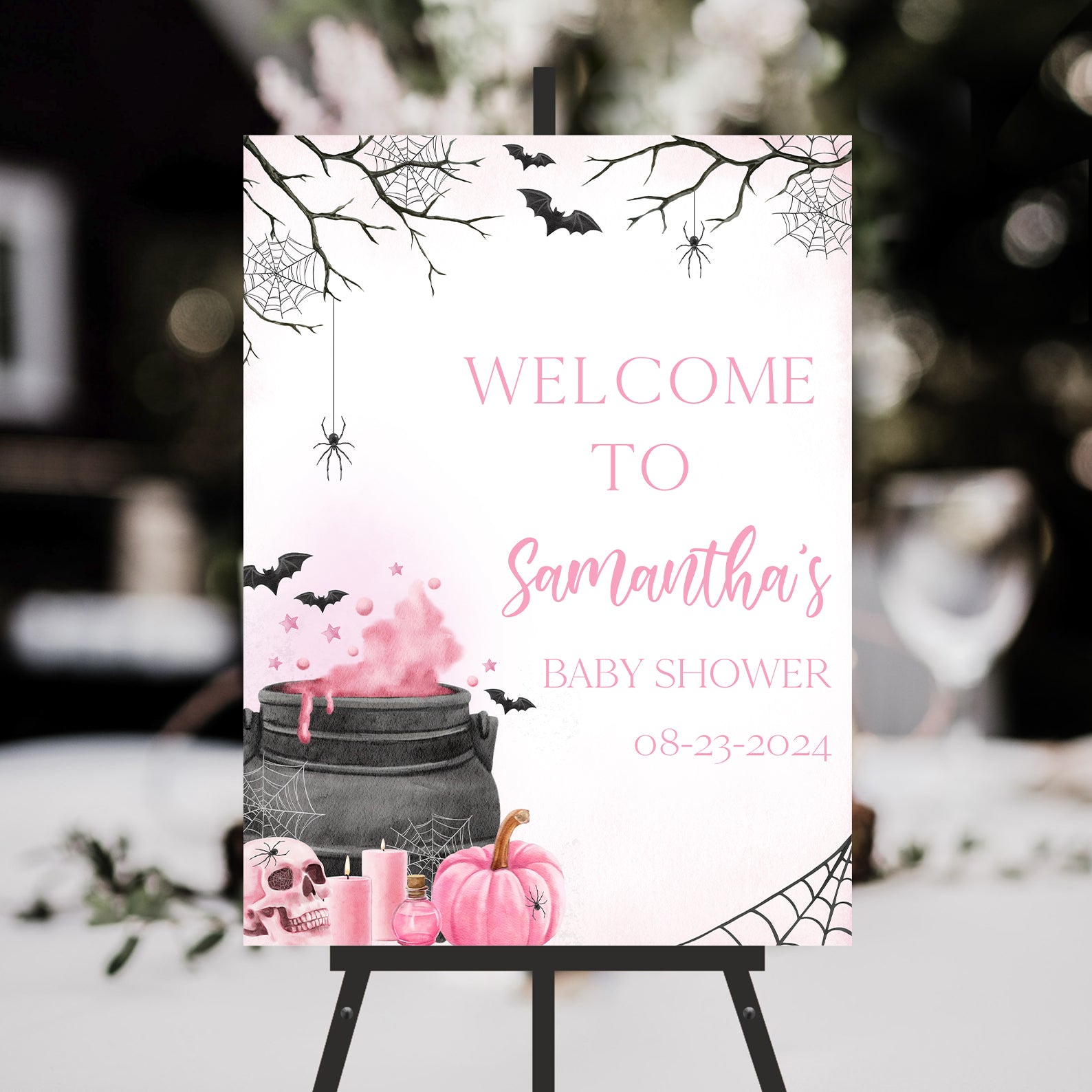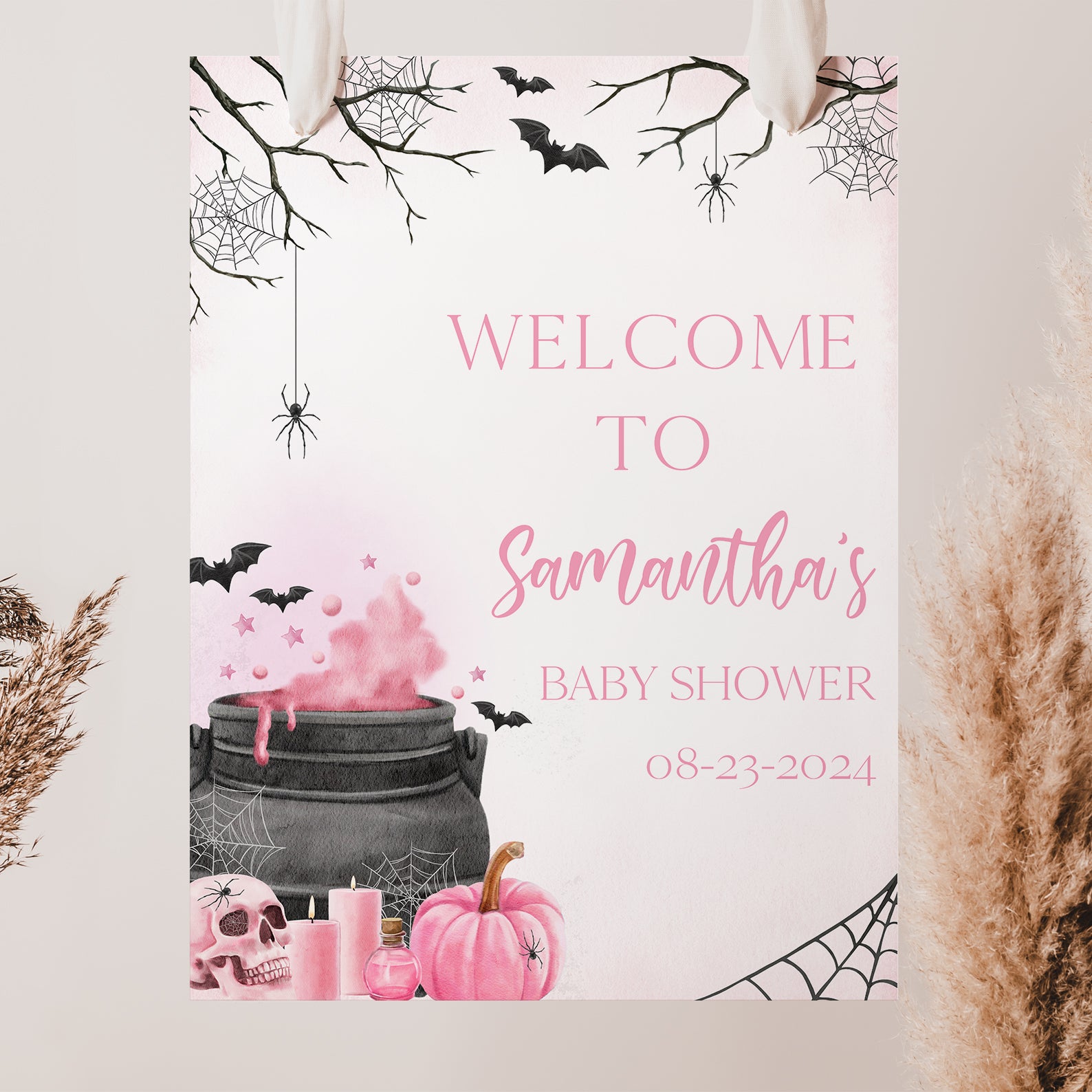 - Purchase this Pink Baby Potion Brewing Welcome Sign: Spooky Bats, Webs, & Pumpkins template