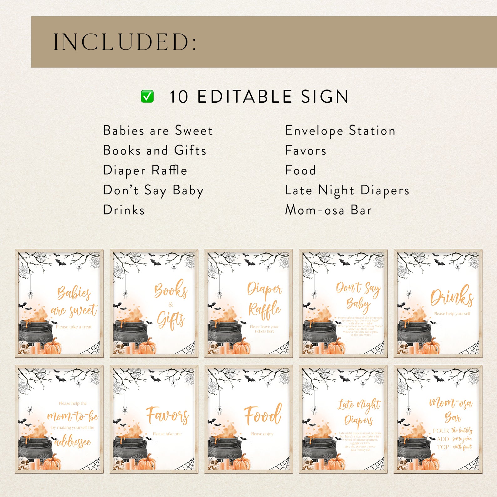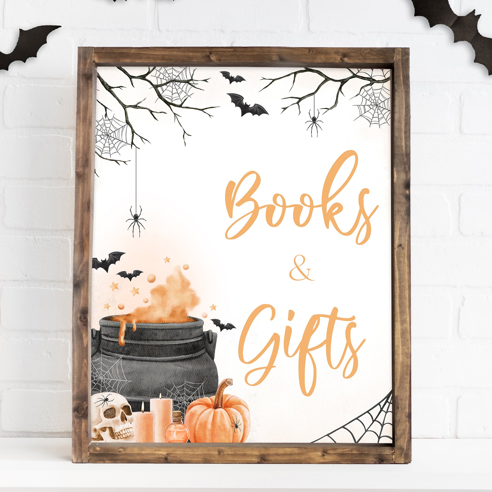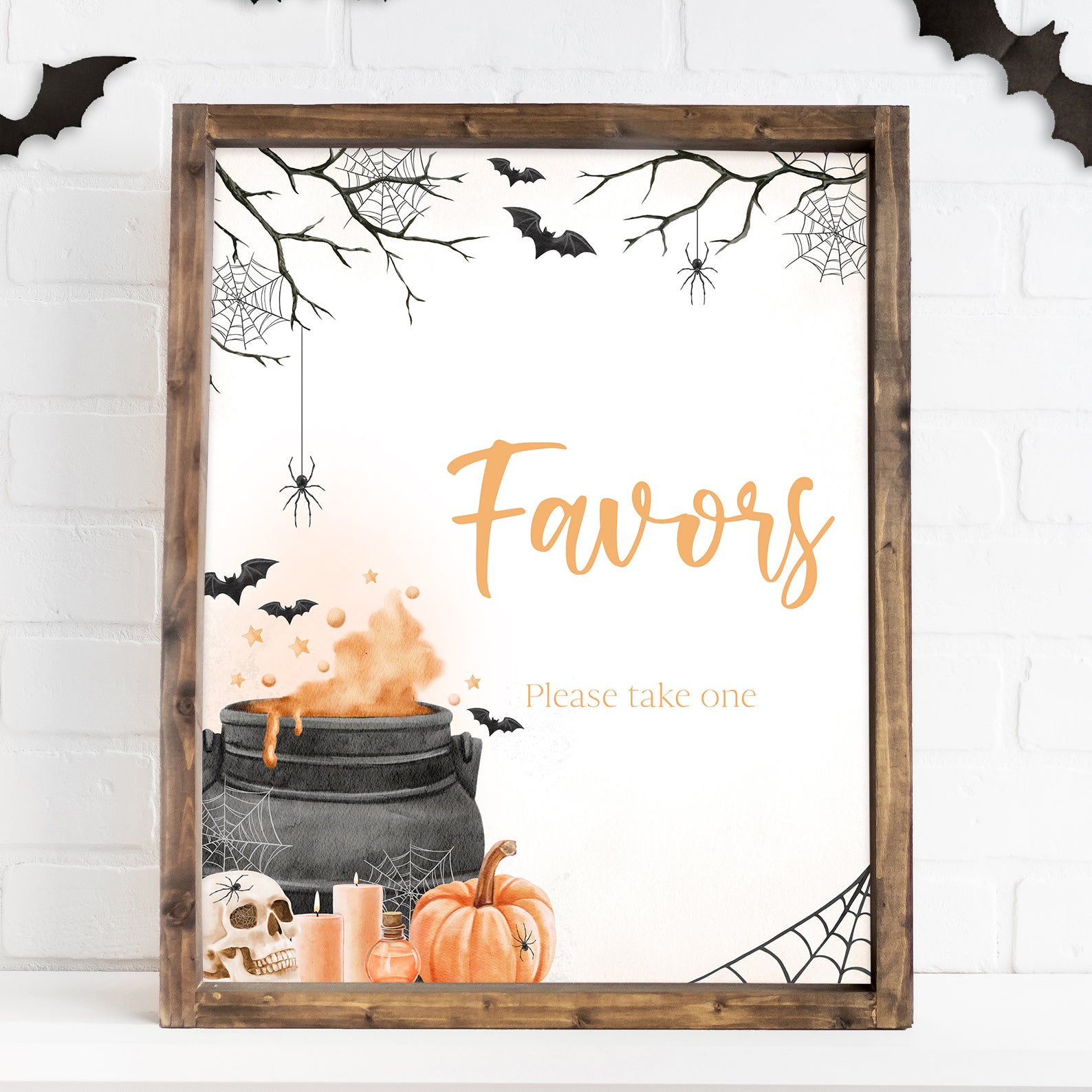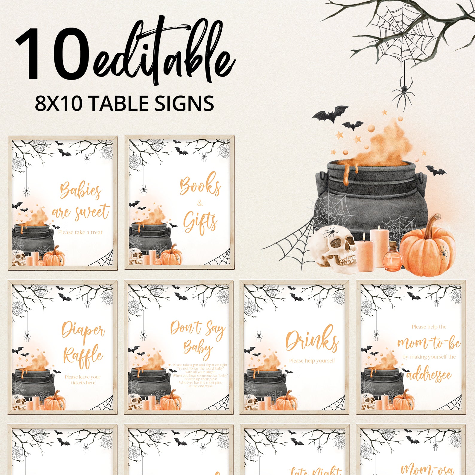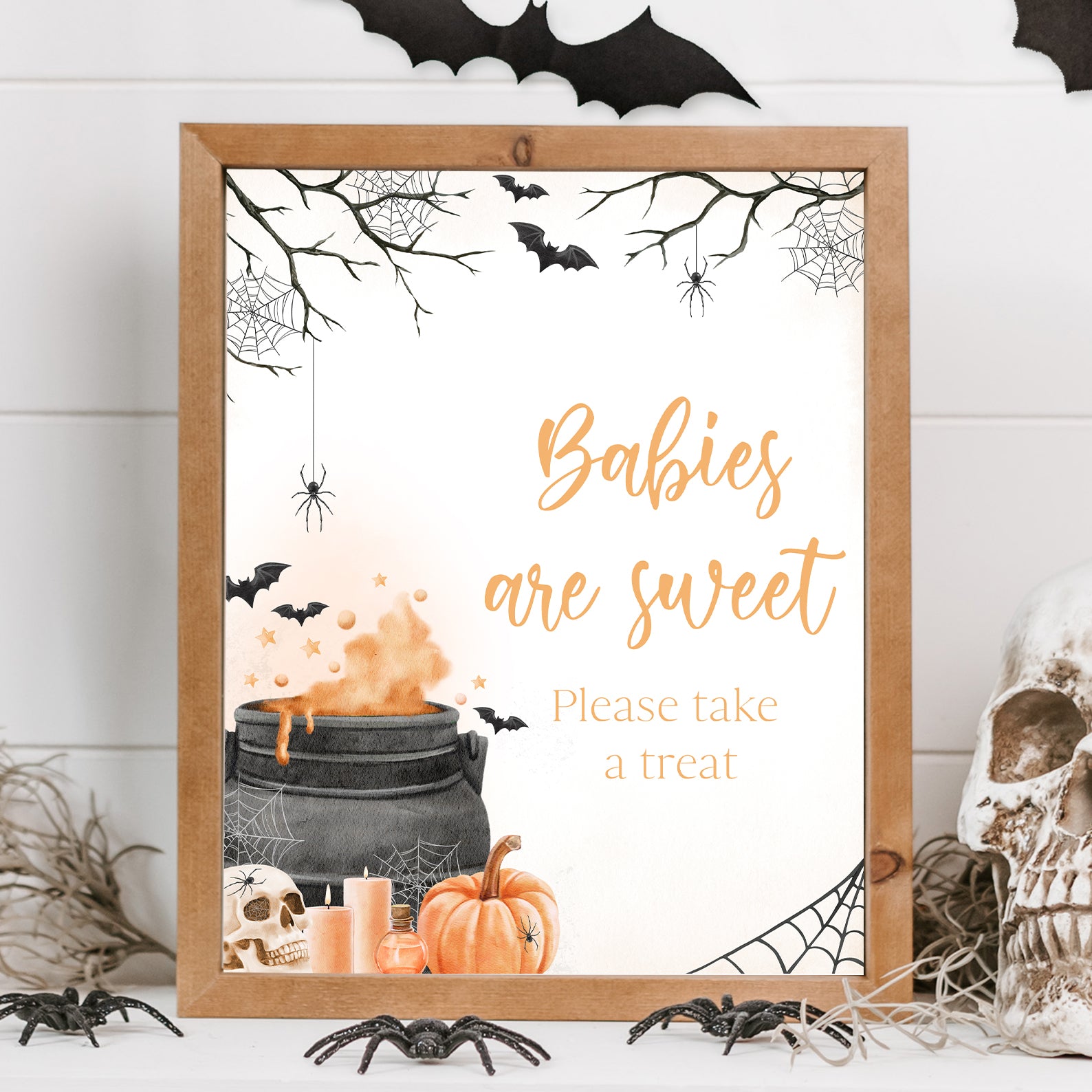 - Purchase this Orange Baby Potion Brewing Table Sign: Spooky Bats, Webs, & Pumpkins template