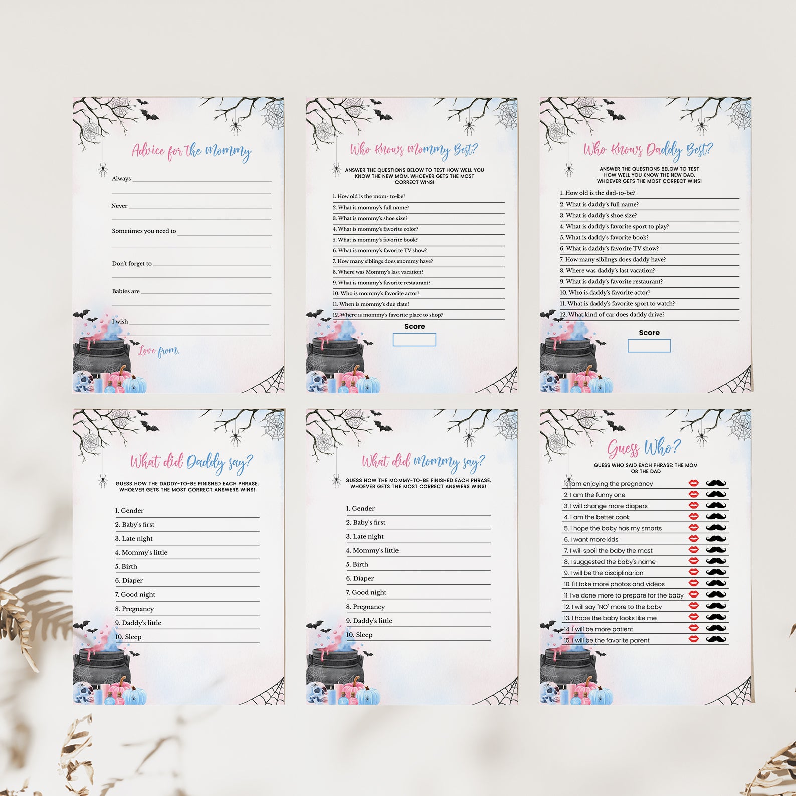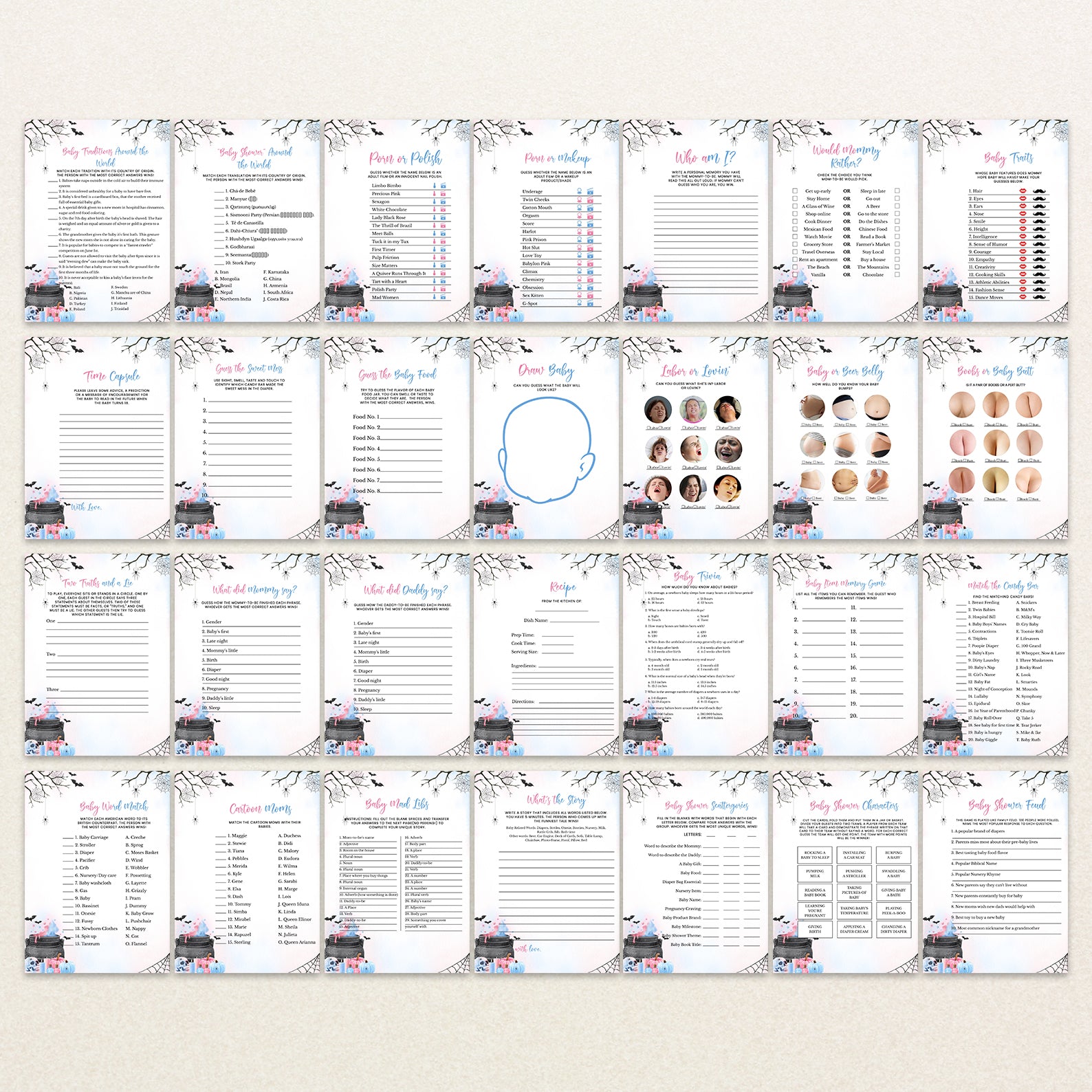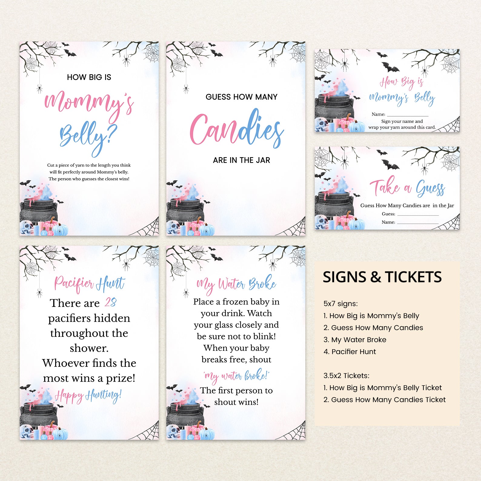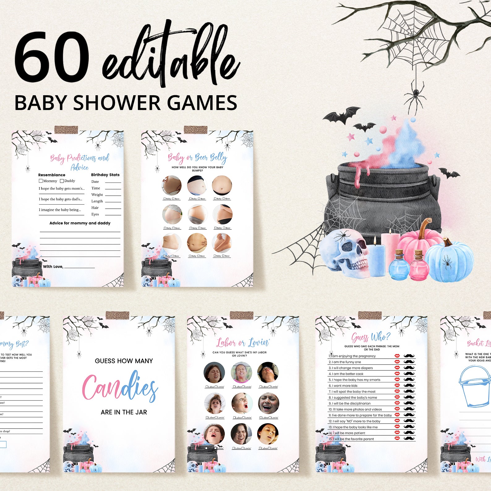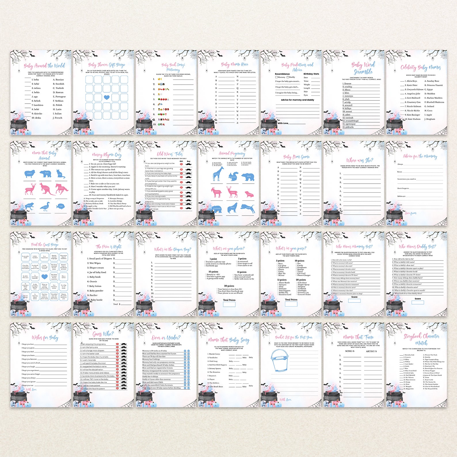 - Purchase this Baby Potion Brewing Game Bundle: Spooky Bats, Webs, & Pumpkins template