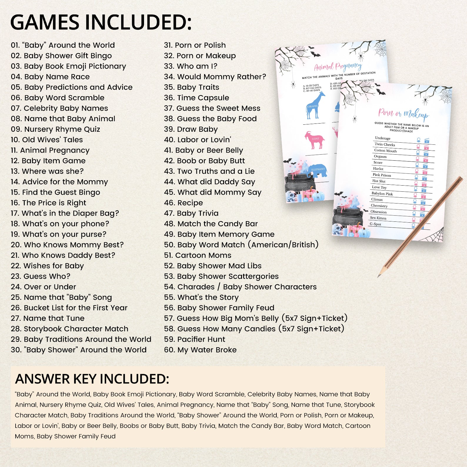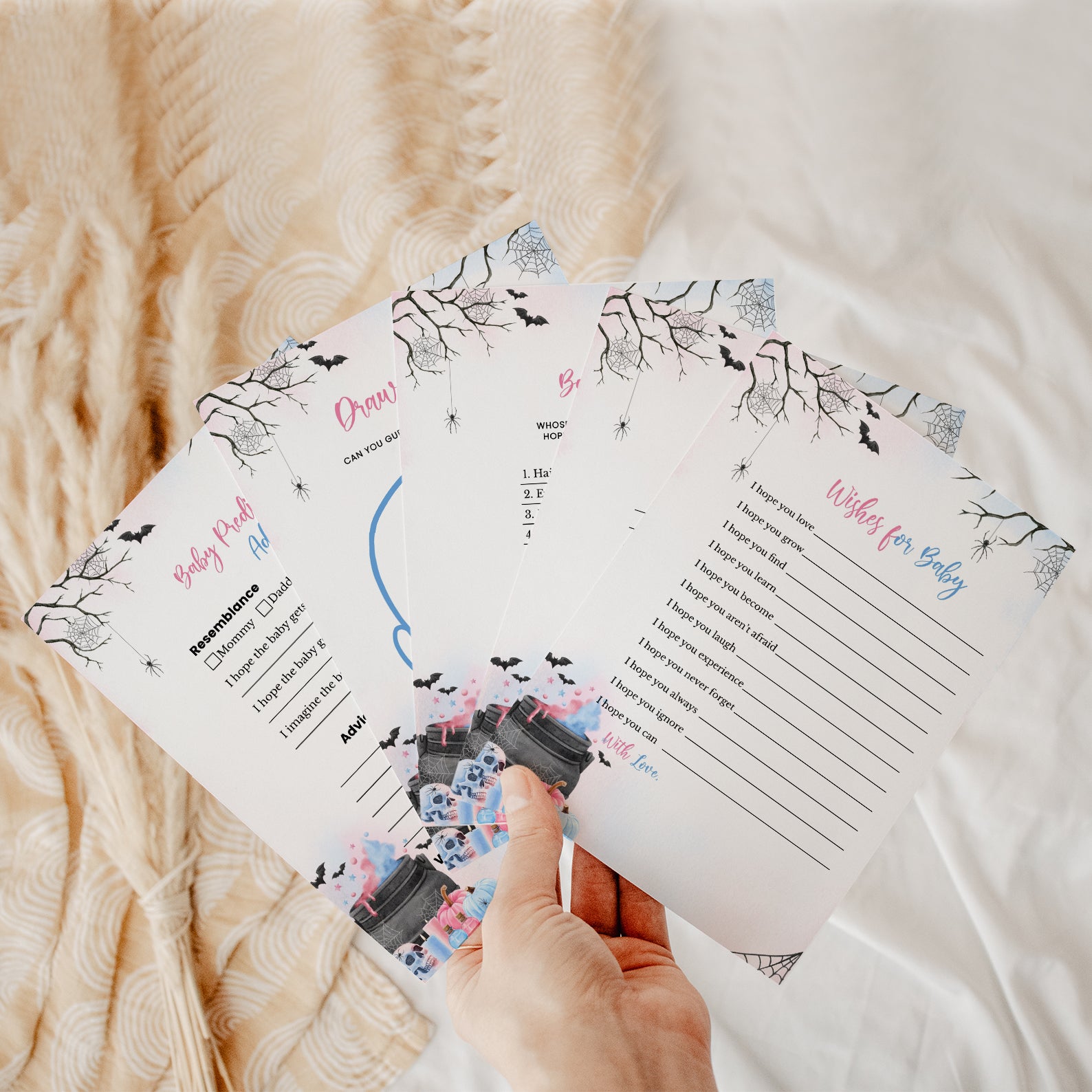 Get ready to brew up some fun with our “Baby is Brewing Game Bundle!” This enchanting set features editable games designed to bring a touch of Halloween magic to your baby shower. With playful elements like a baby brewing in a potion within a cauldron, surrounded by festive bats, pumpkins, and spider webs, each game adds a delightful, spooky charm to your celebration. Choose from gender-neutral colors or customize with variations of pink, blue, purple, or orange to perfectly match your event’s theme. This bundle ensures your gathering will be filled with engaging activities and memorable moments. Celebrate your little pumpkin with a hauntingly fun game collection that’s sure to delight your guests!